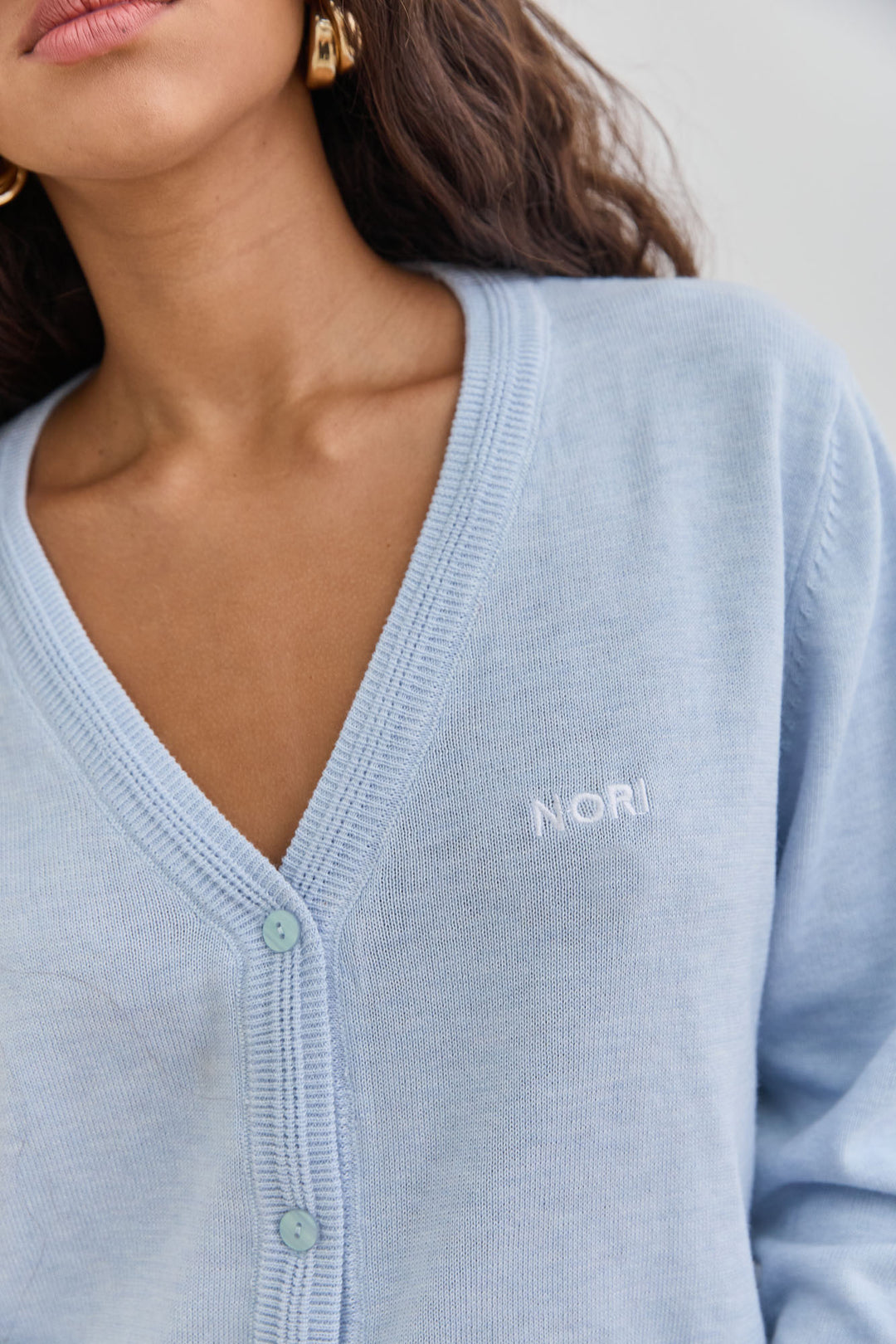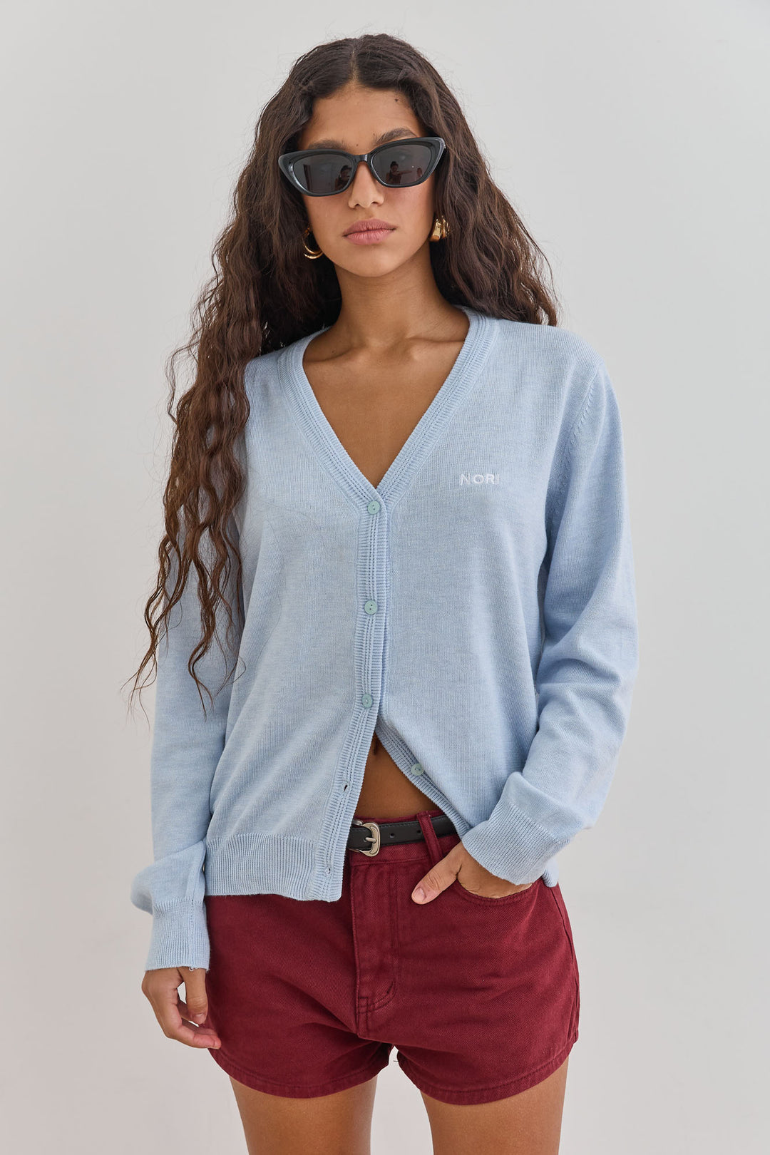 אפודה סרוגה קרולינה בשילוב כפתורים | כחול
