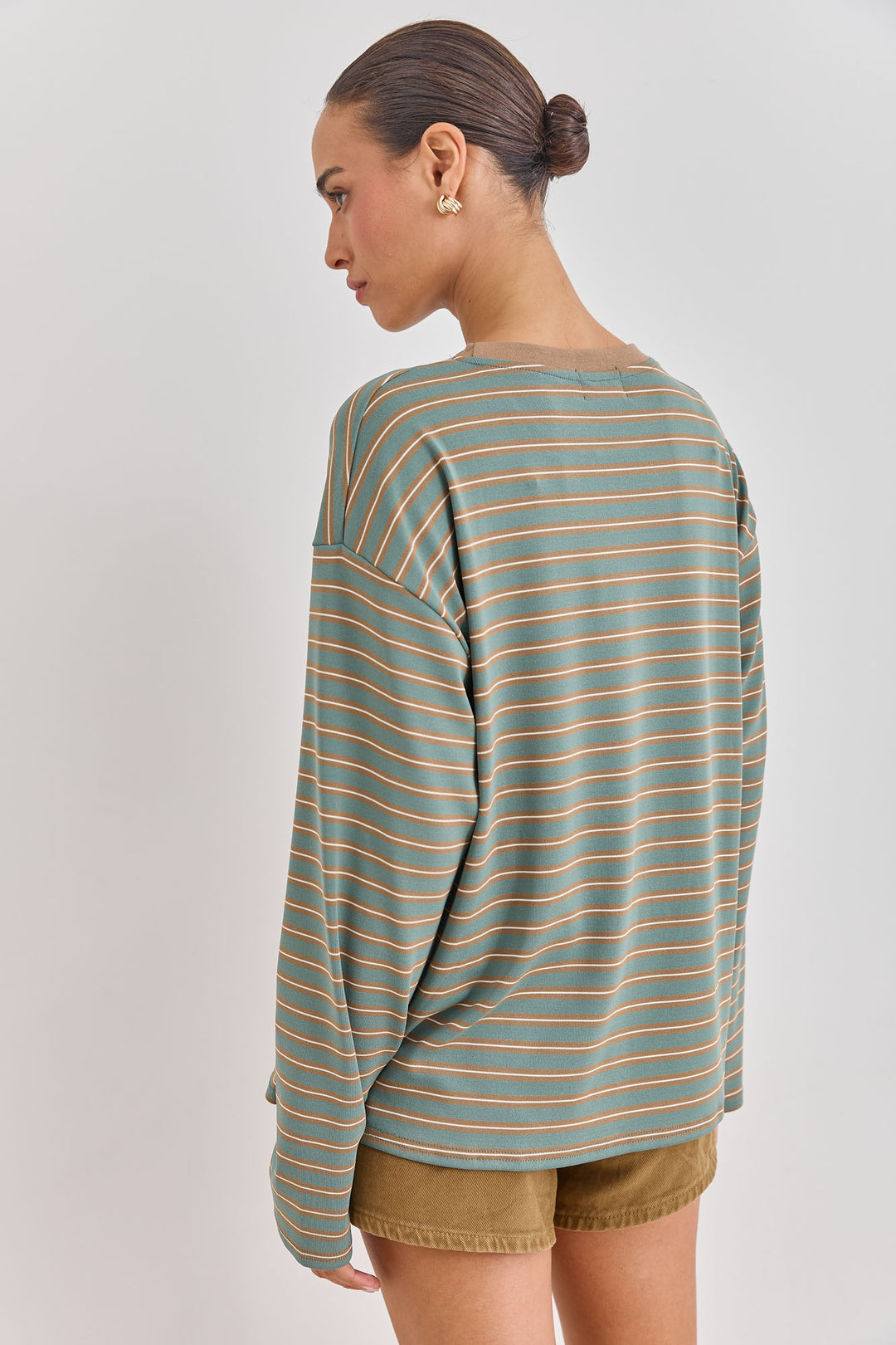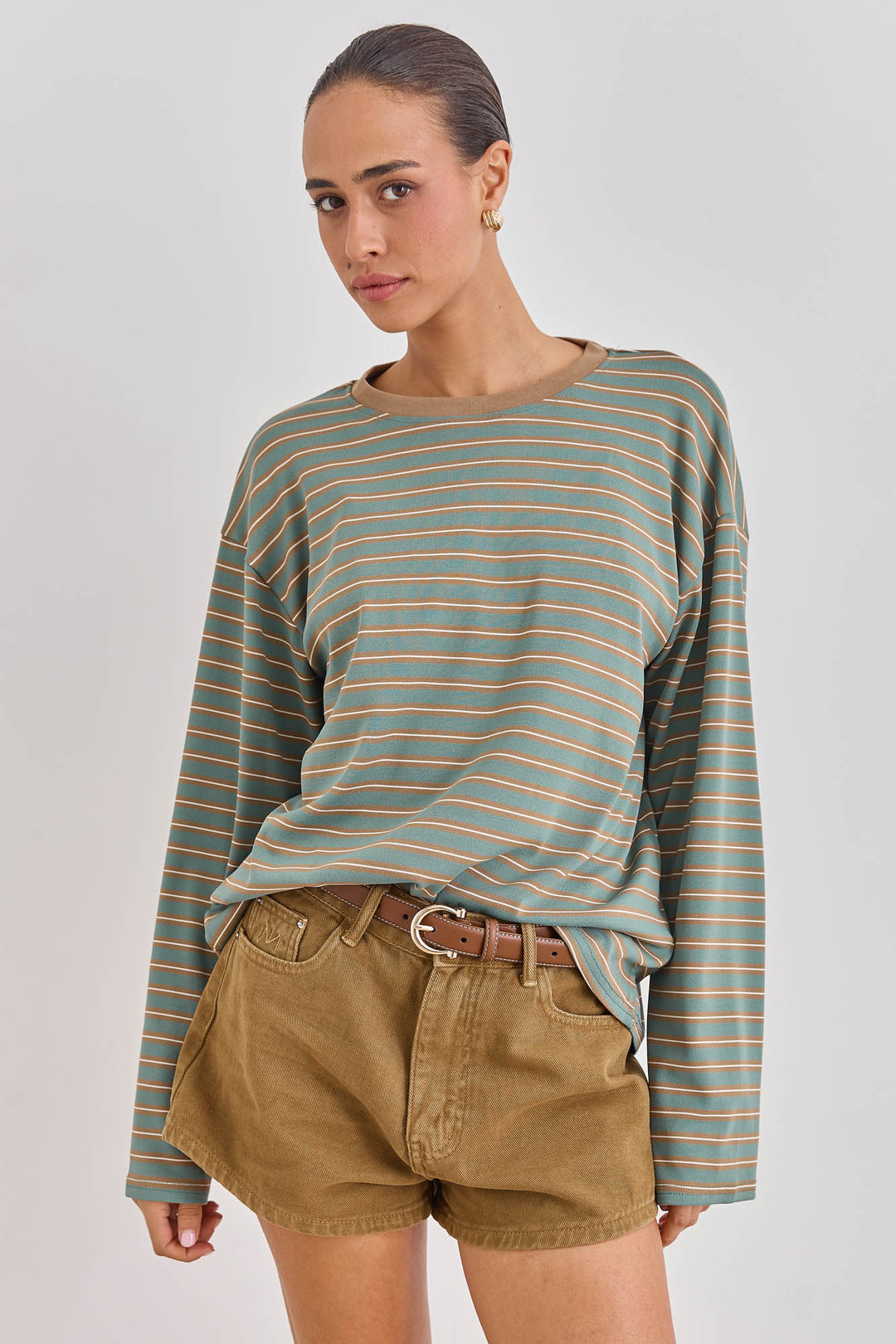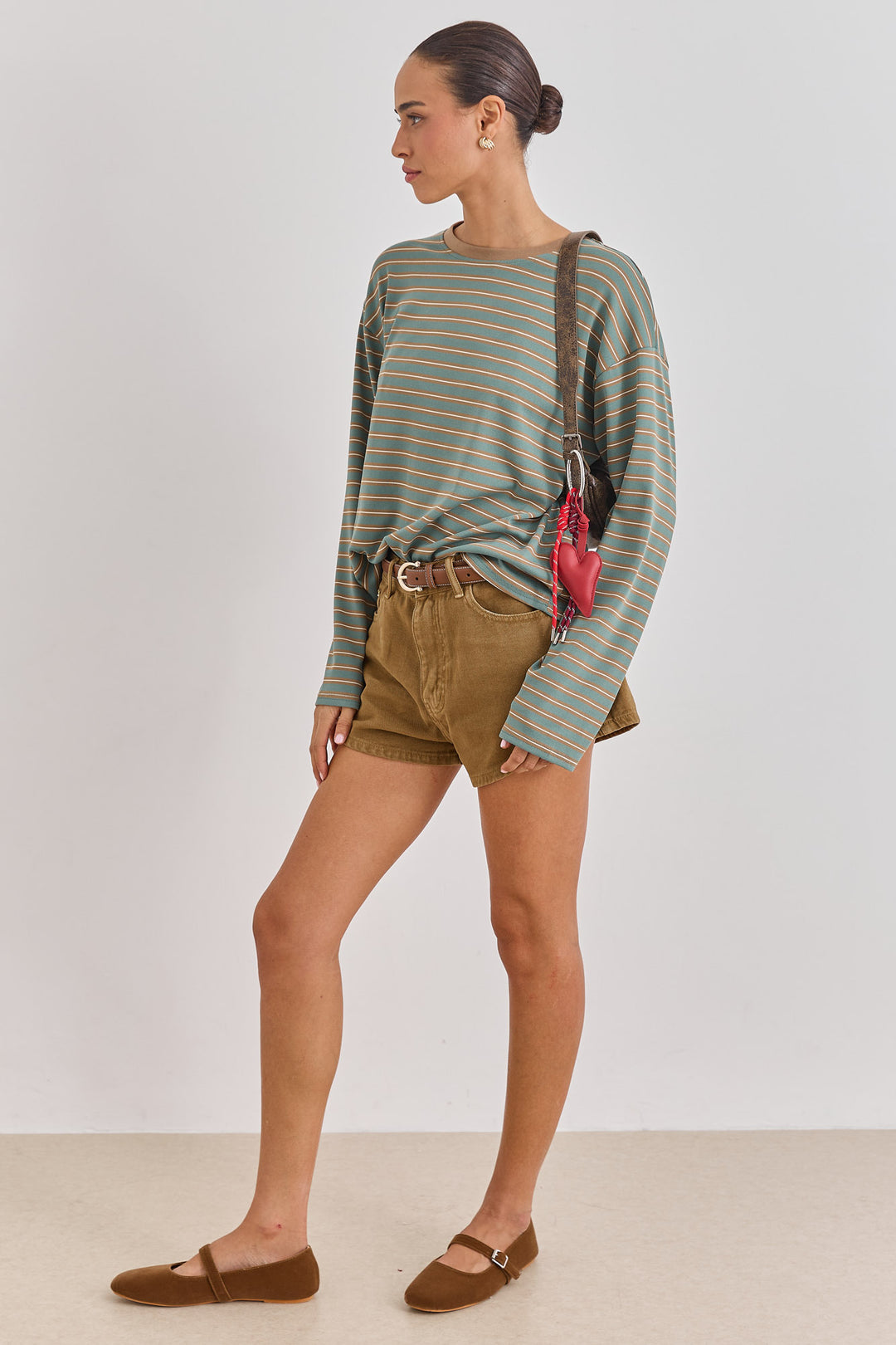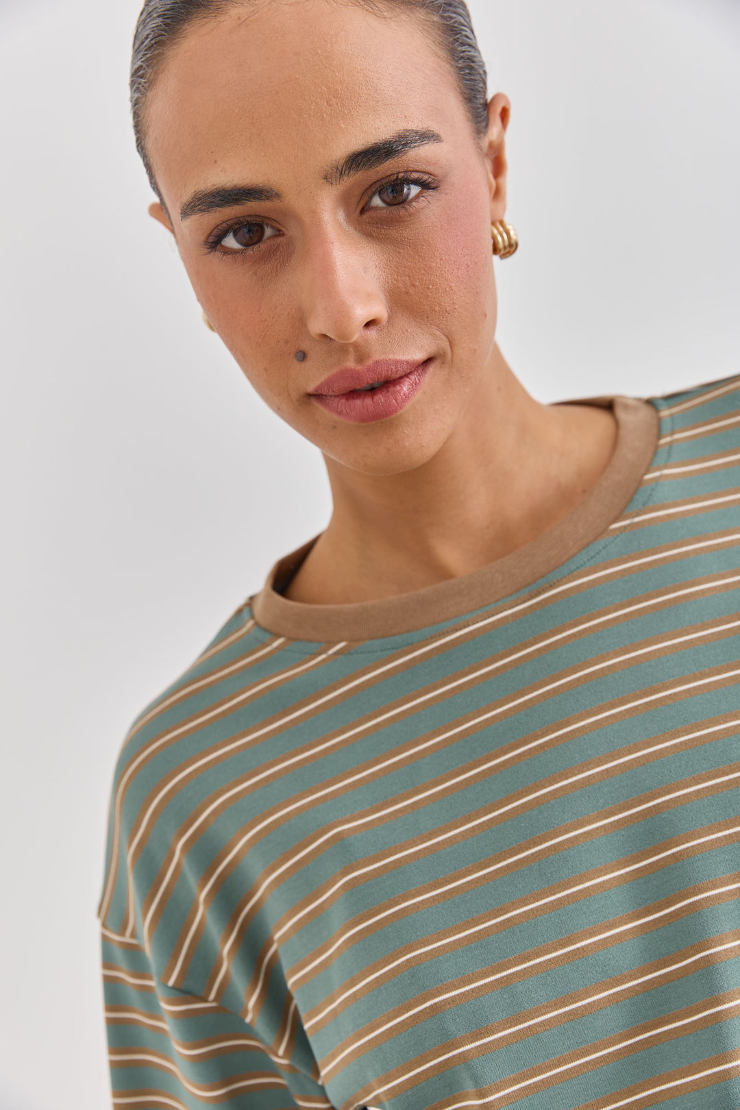 חולצת טי שיילה סטרייפס | ירוק/חום