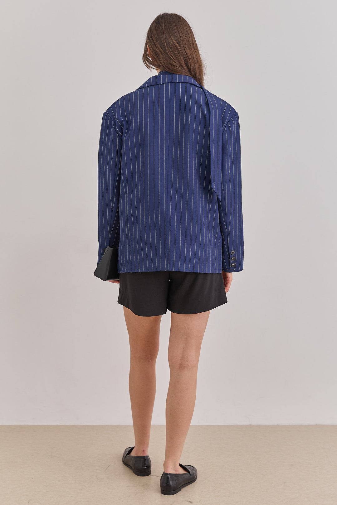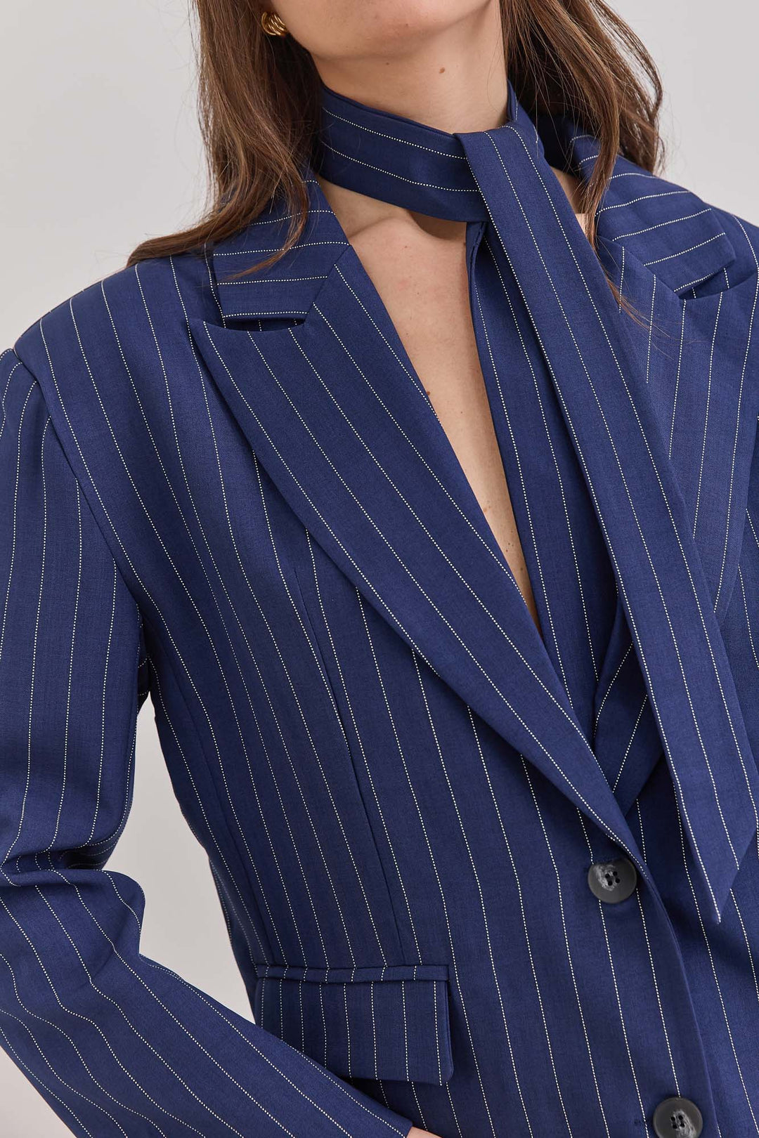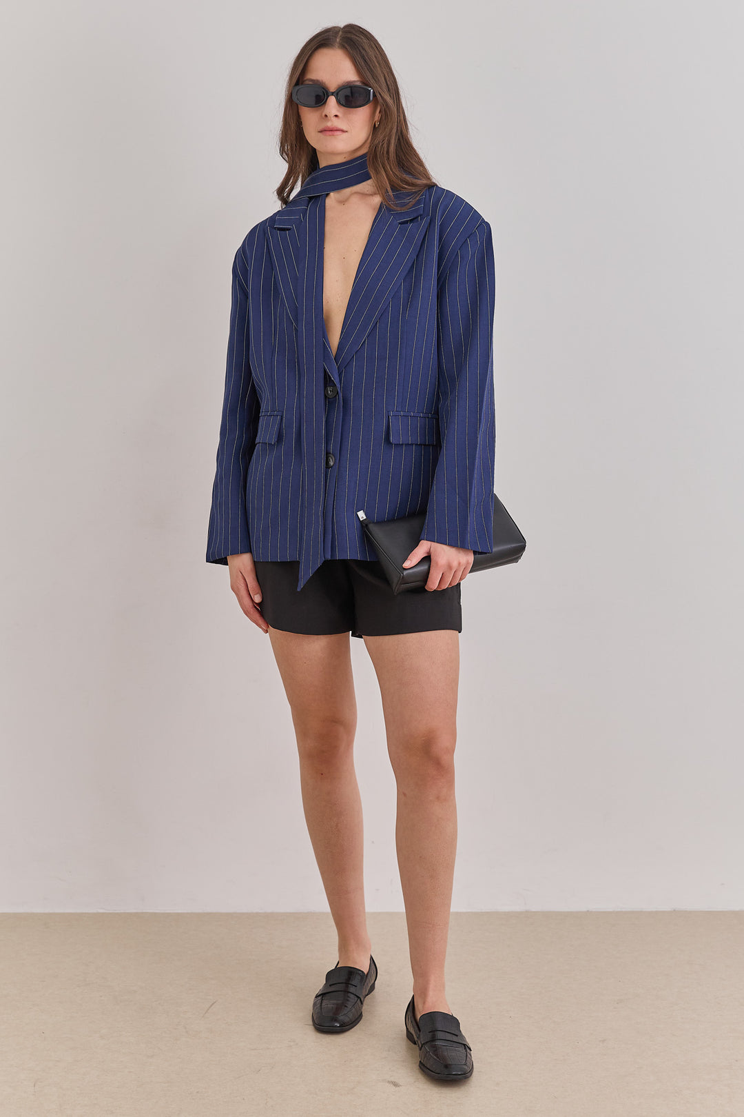 בלייזר מינדי סטרייפס בשילוב צעיף | כחול נייבי