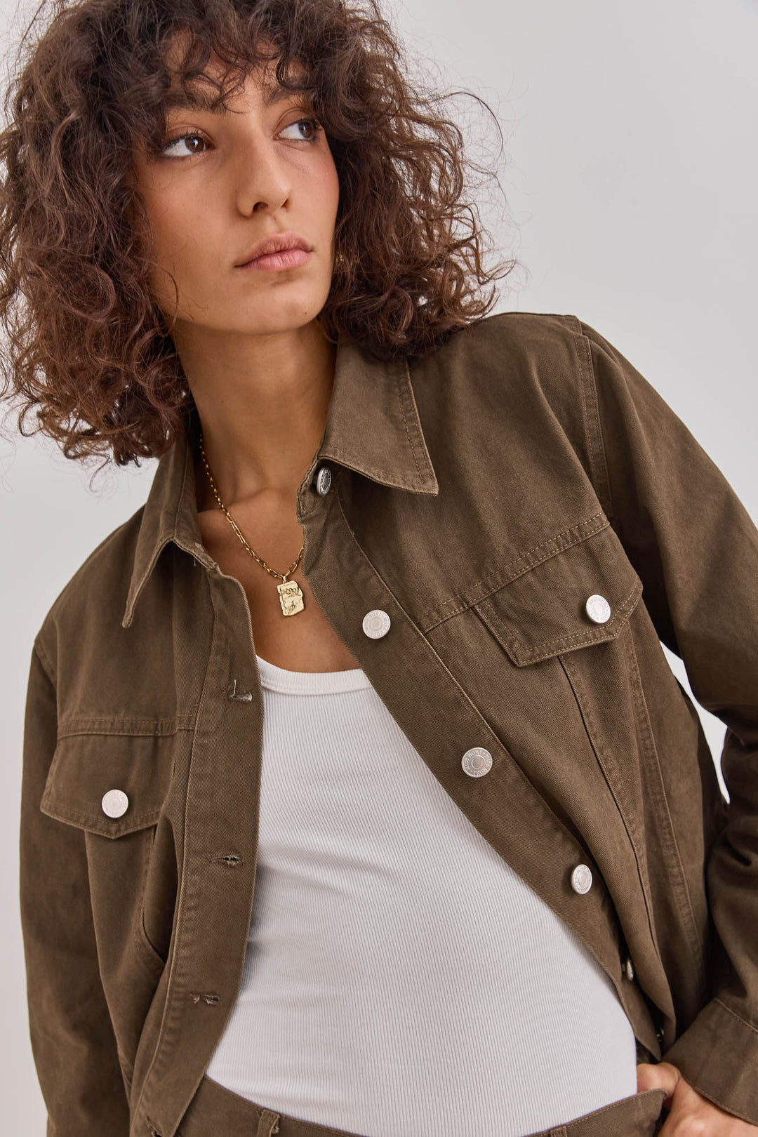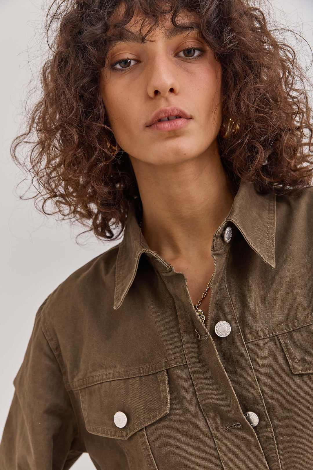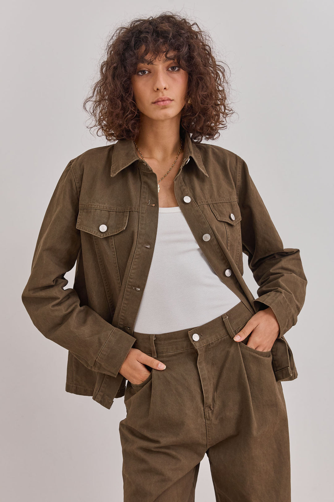 ג'קט דנים ברי גזרת אוברסייז | חום