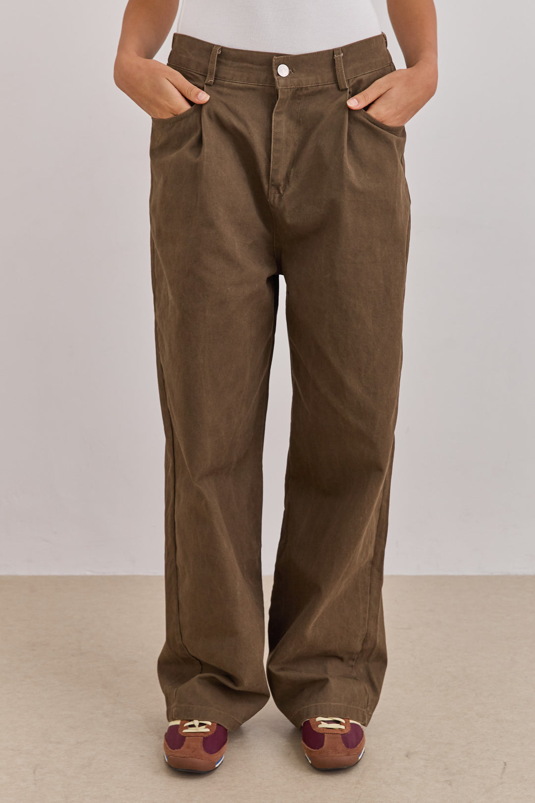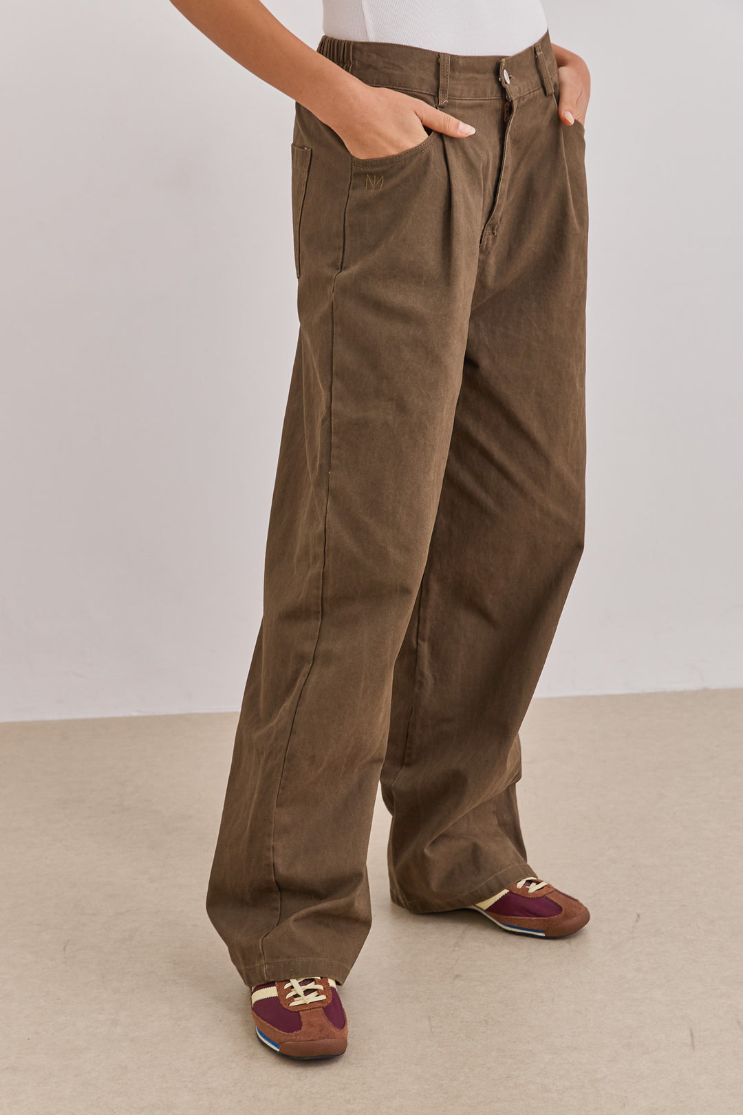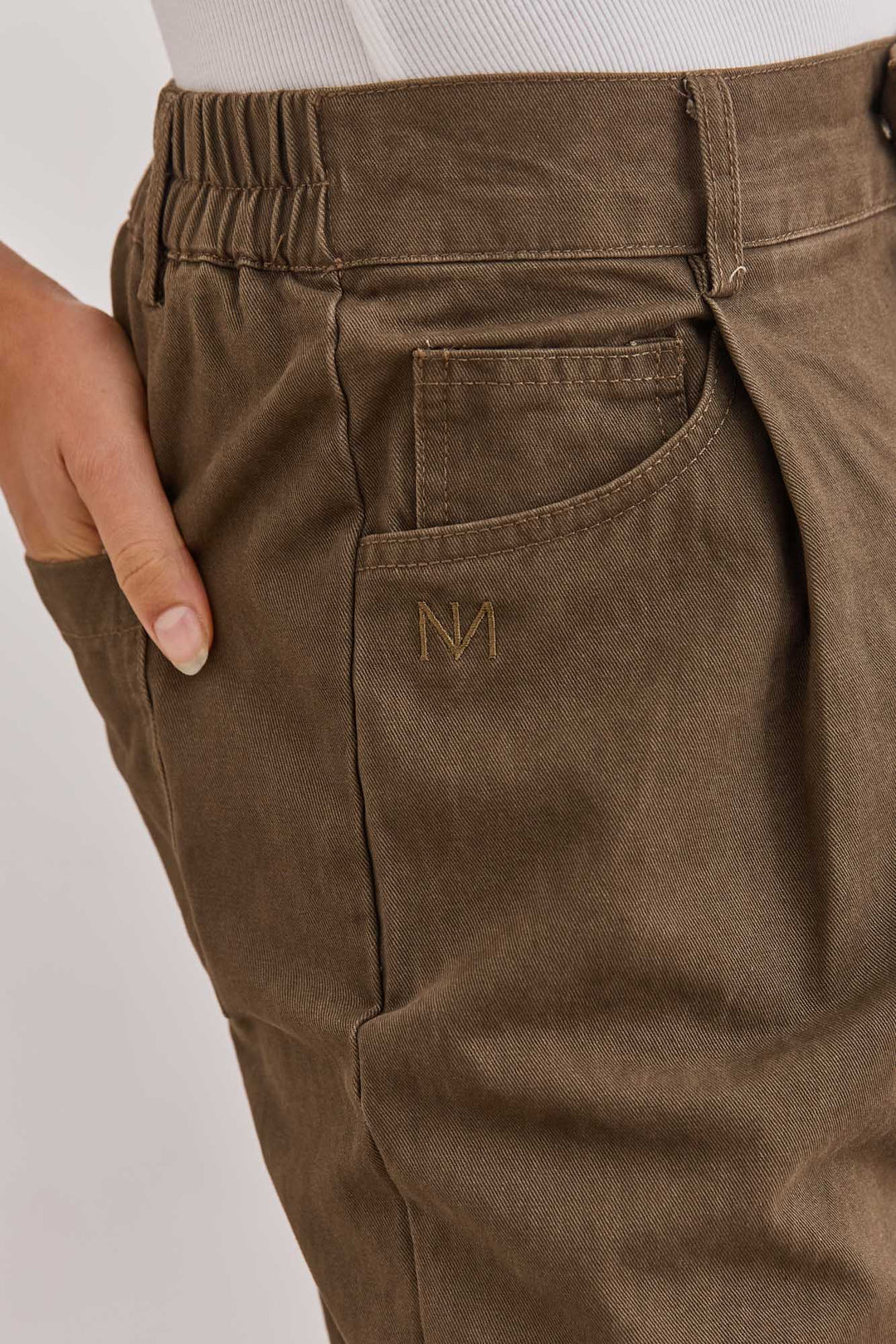 מכנסי סריג נואל בשילוב גומי | ירוק זית