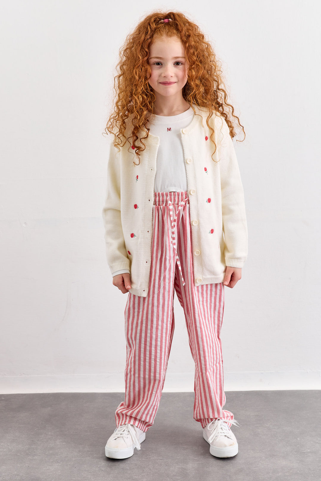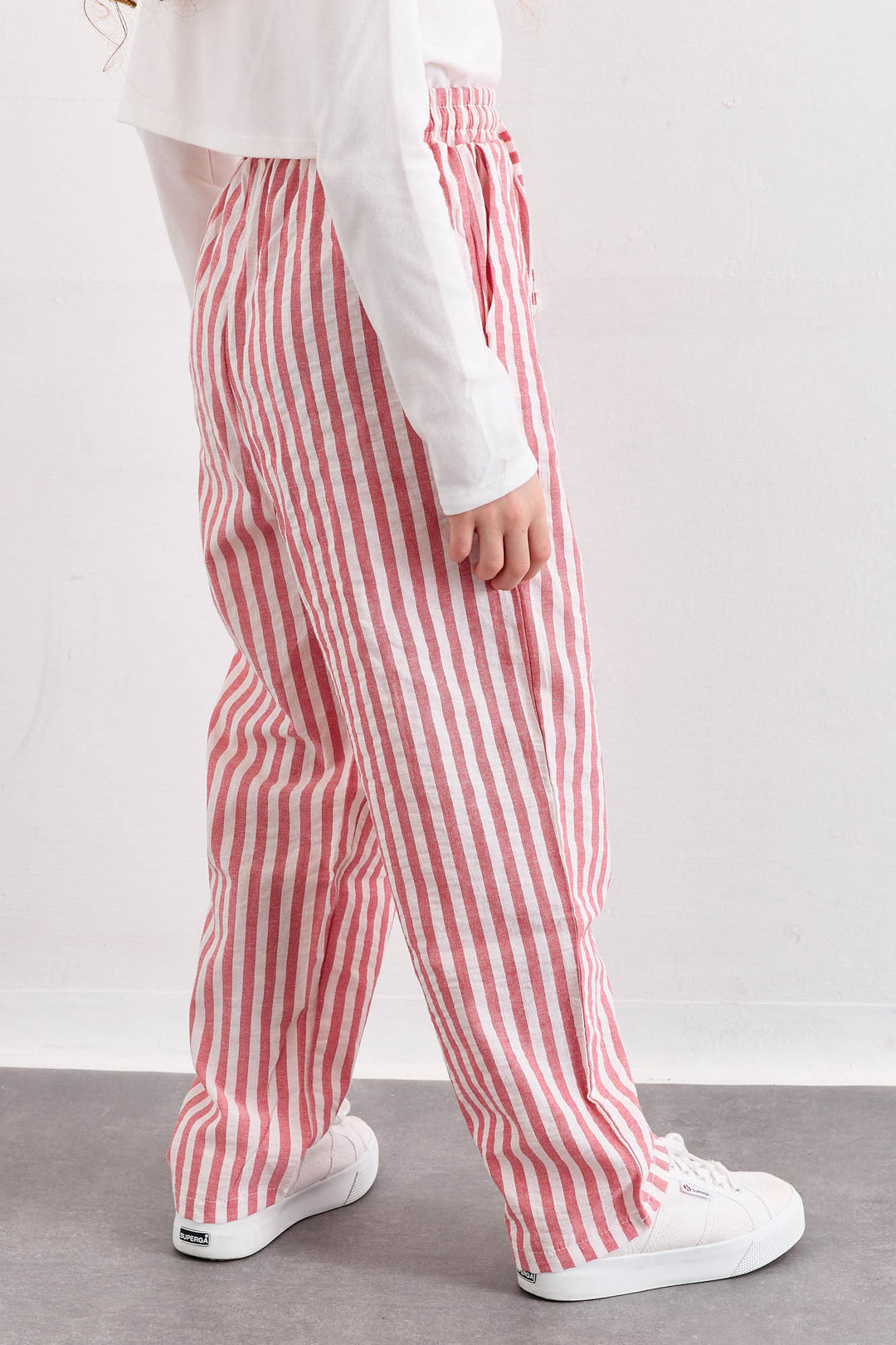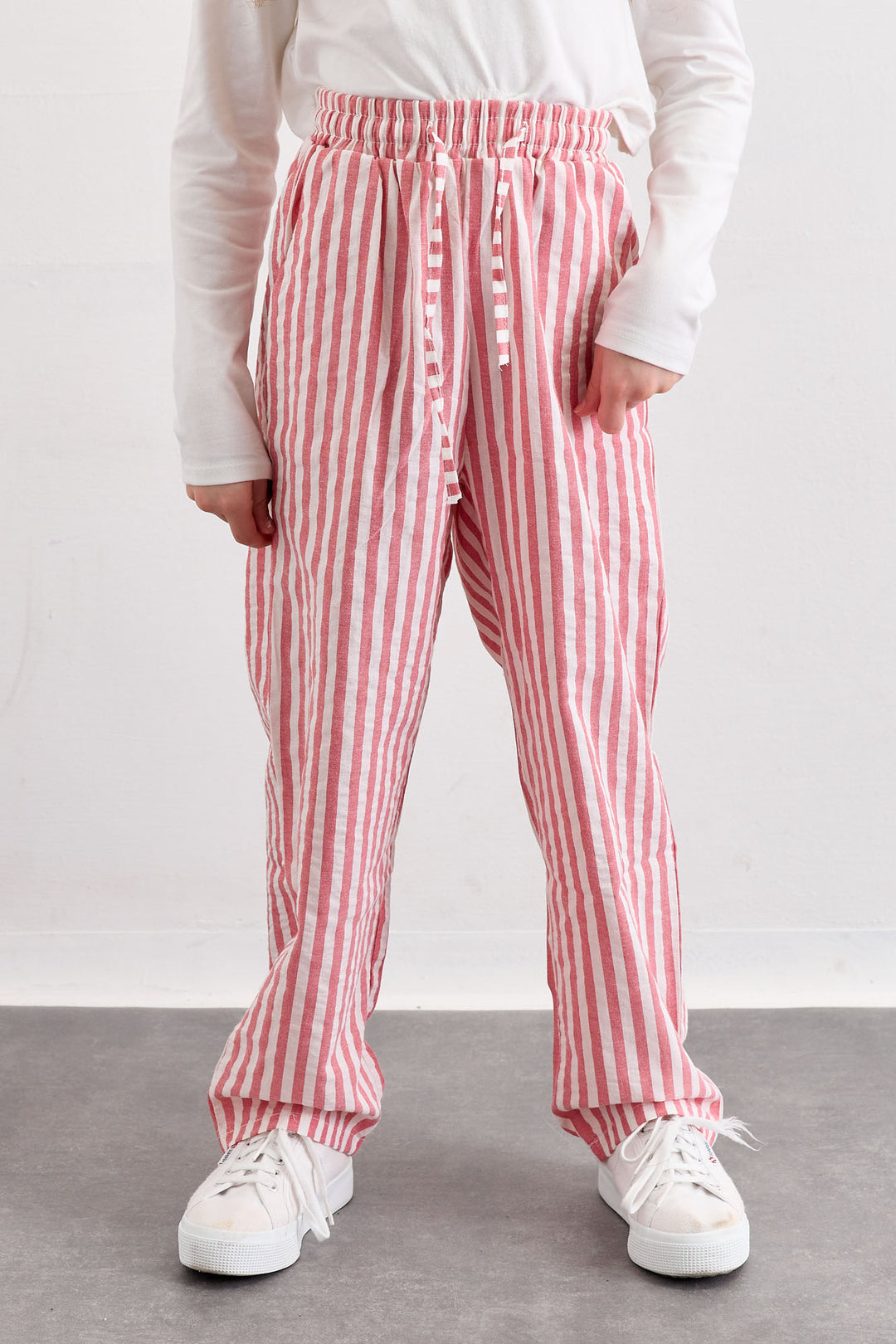 מכנסי קרלי סטרייפס בגזרה ישרה | אדום/לבן