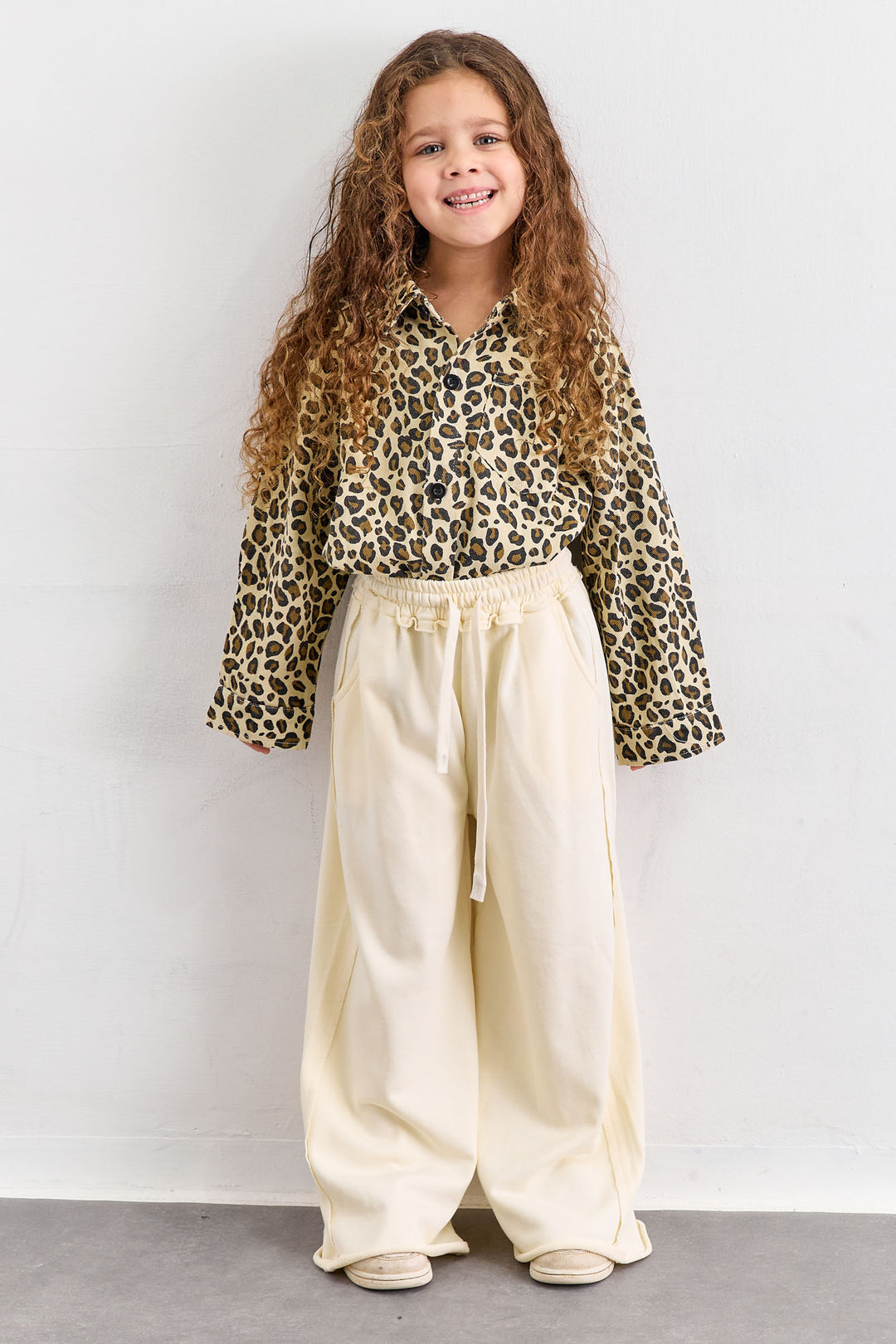מכנסי ג'ינס בגזרת אוברסייז עם שרוך בהדפס מנומר | ג'ינס בהיר