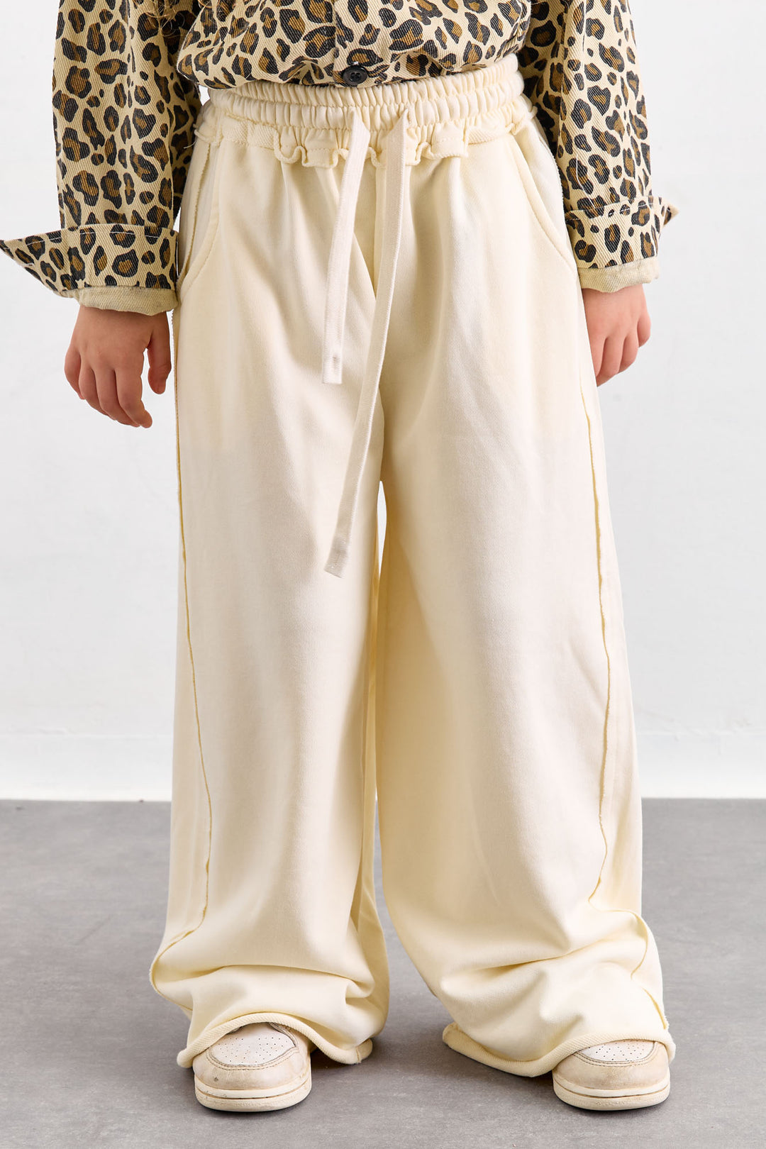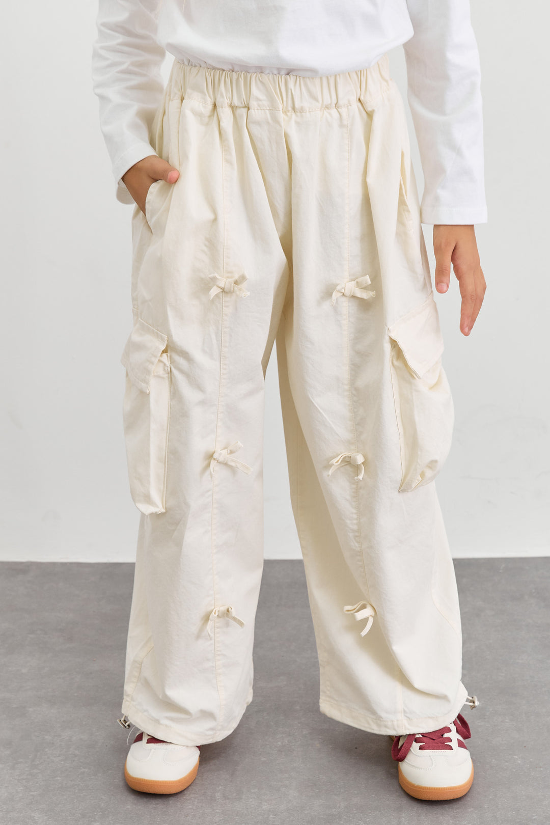 מכנסי דגמ"ח דיטיילז פפיונים וסיומת גומי | קרם