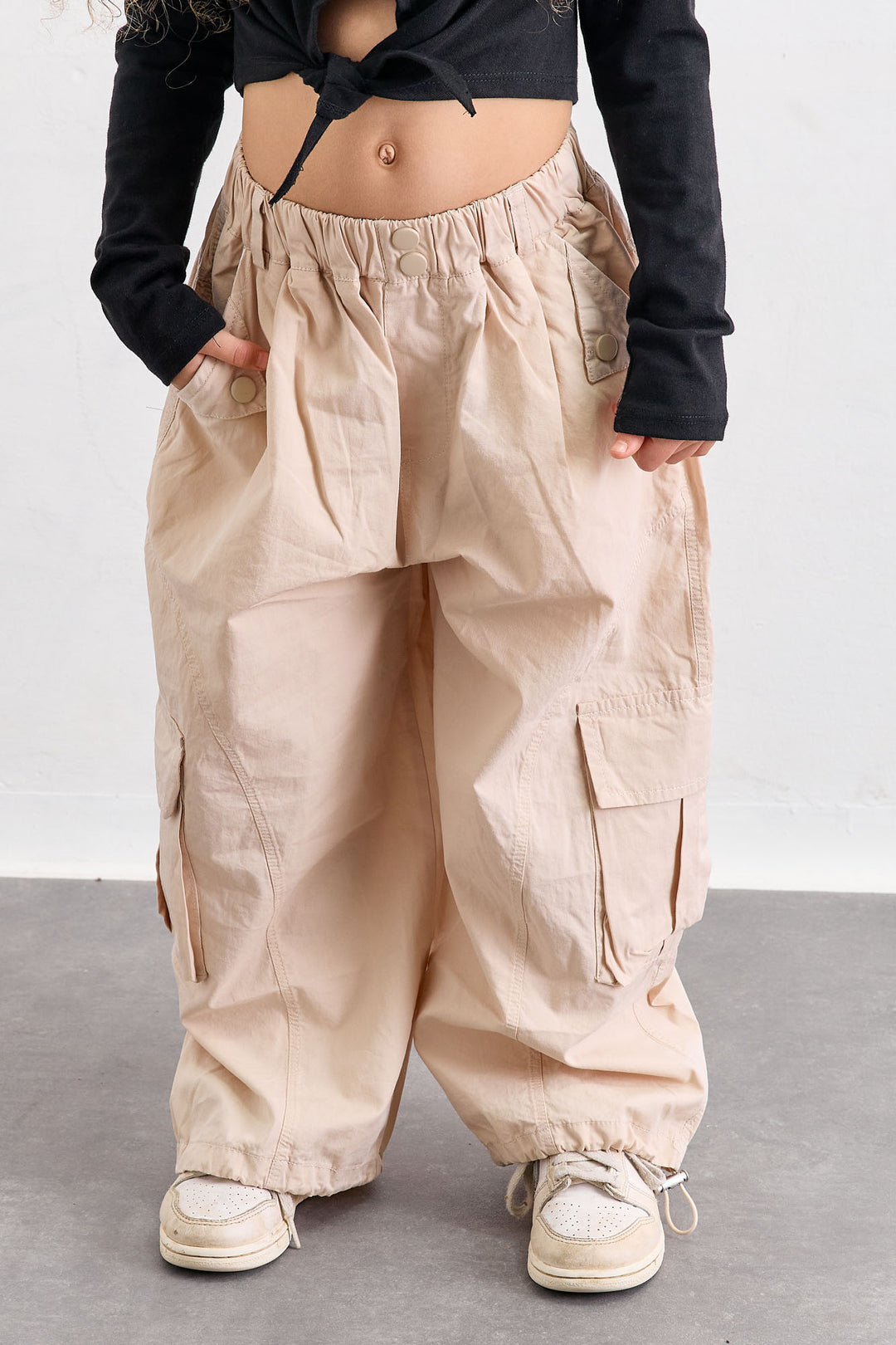 מכנסי דגמ"ח גומי במותן וסיומת מתכווננת | בז'