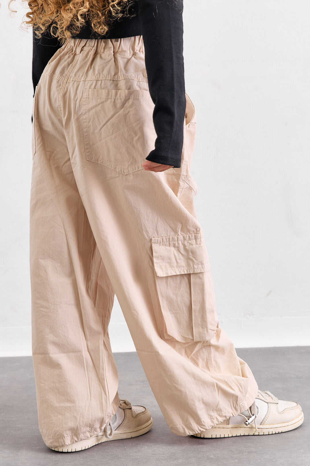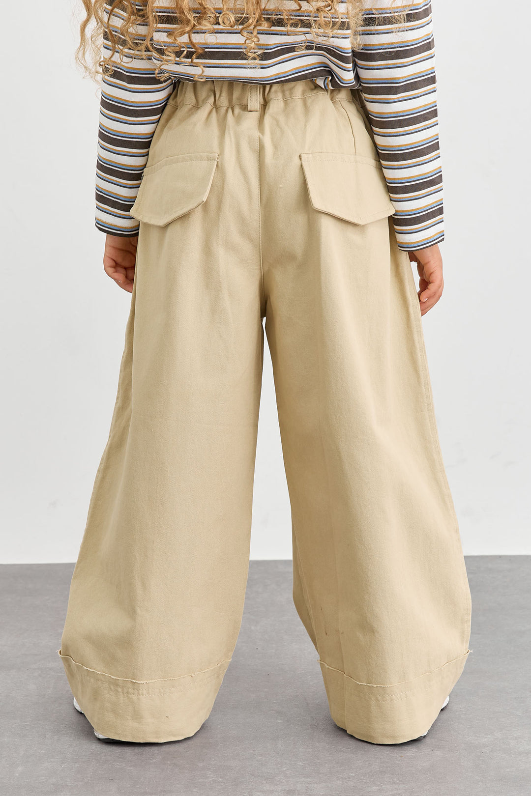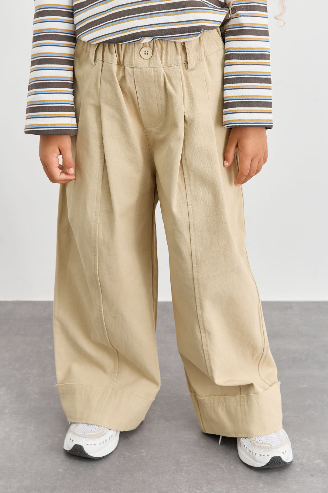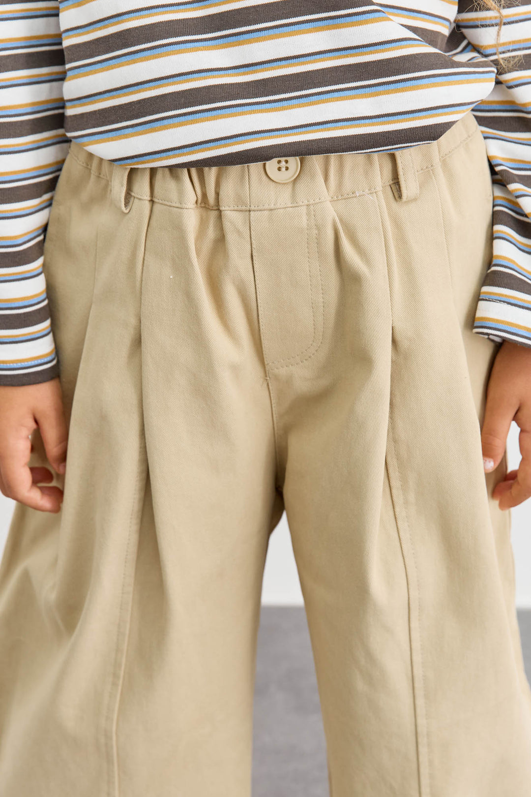 מכנסי דריל בגזרה ישרה וגומי במותן | בז'