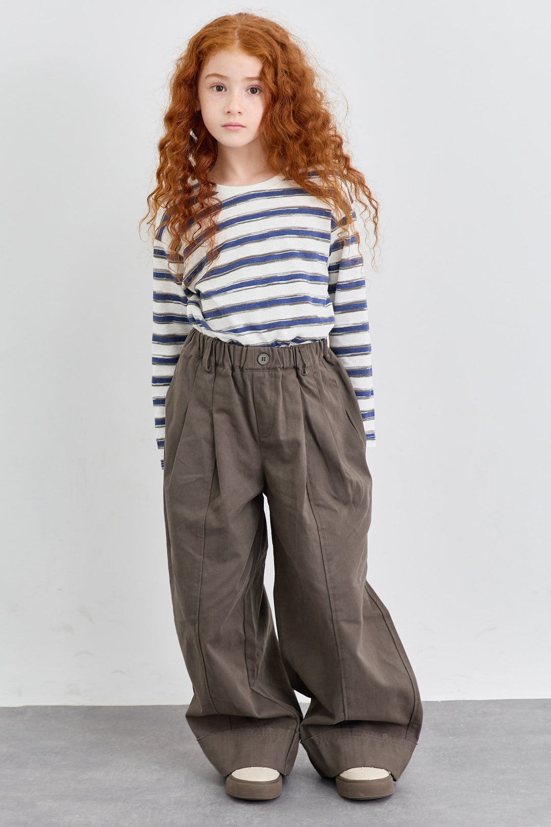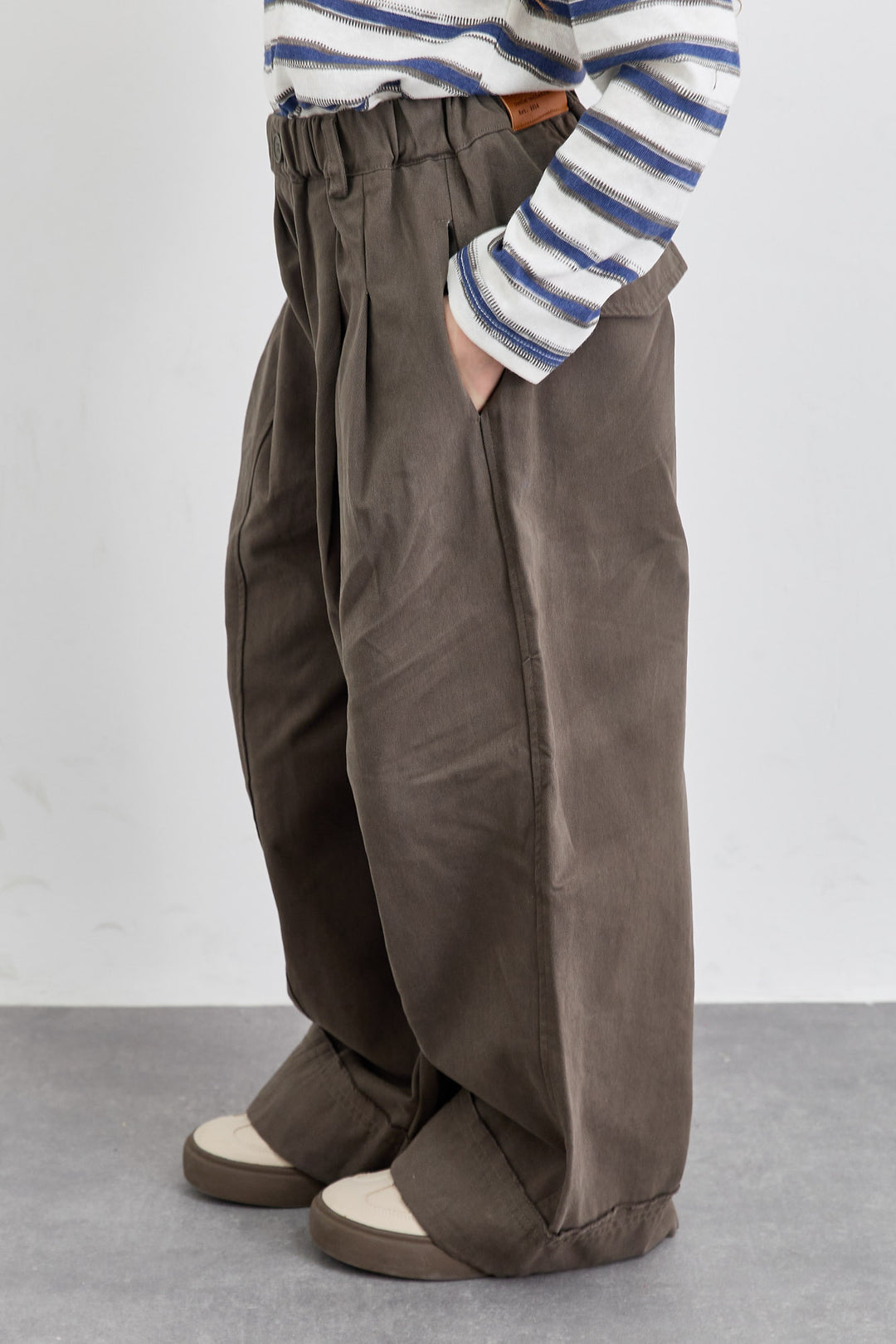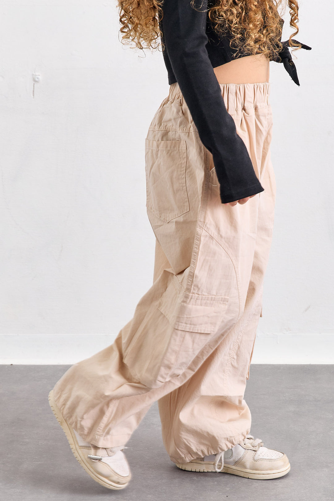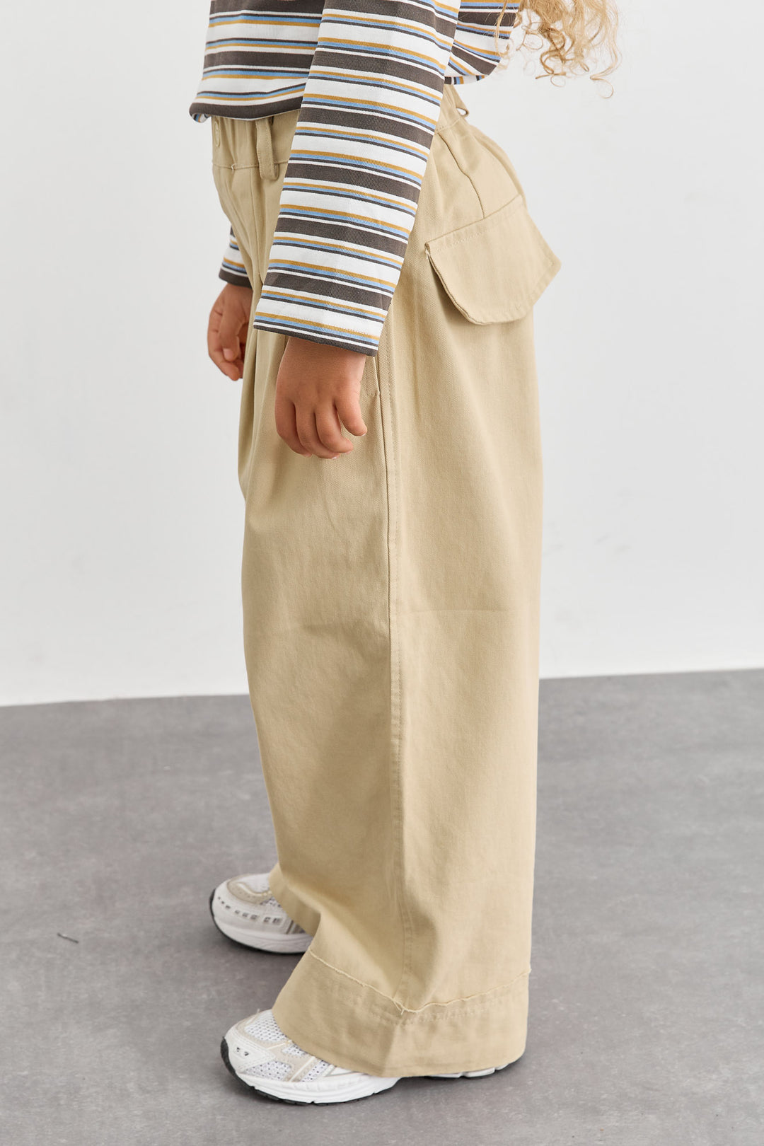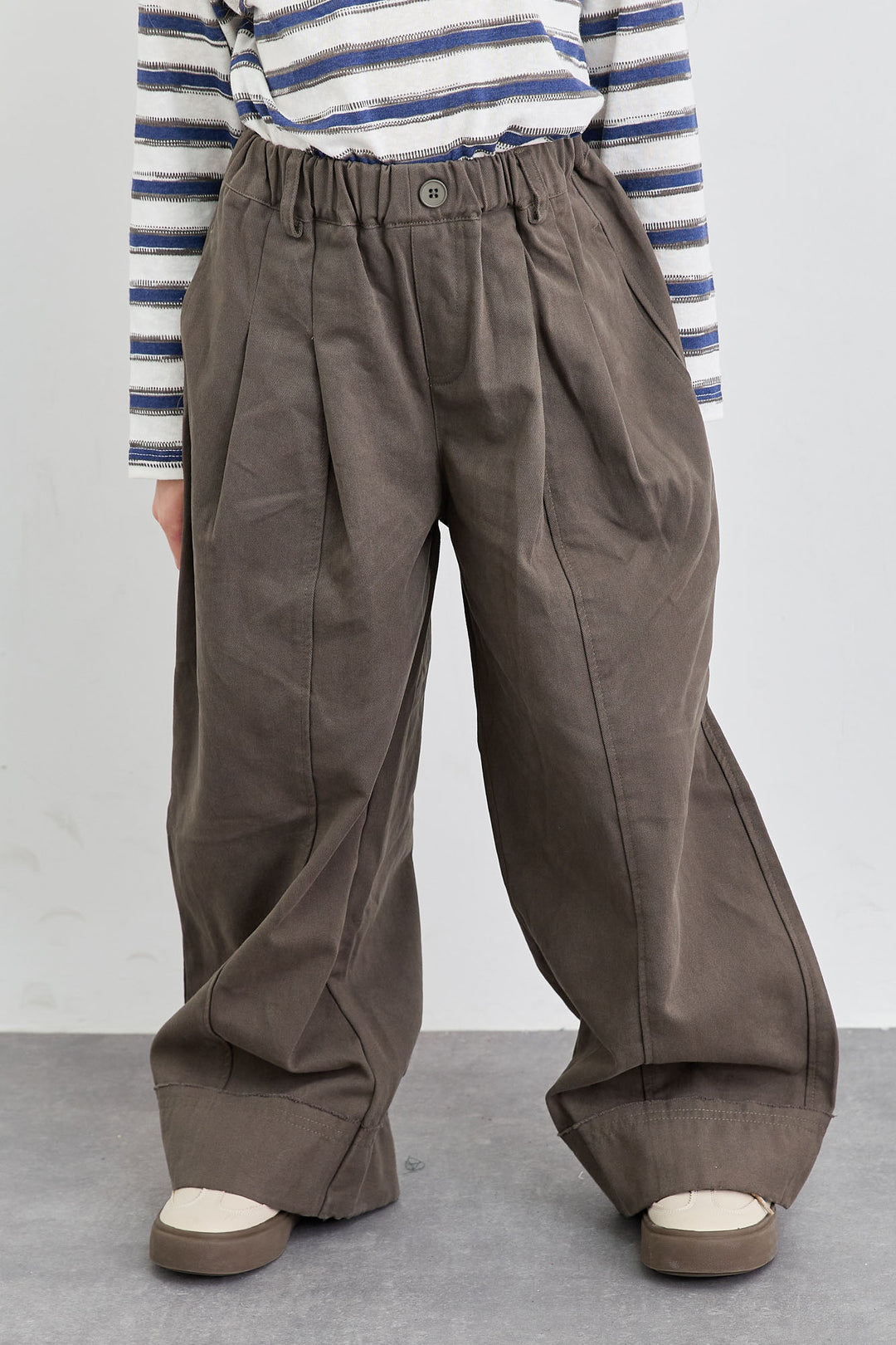 מכנסי דריל בגזרה ישרה וגומי במותן | בז'