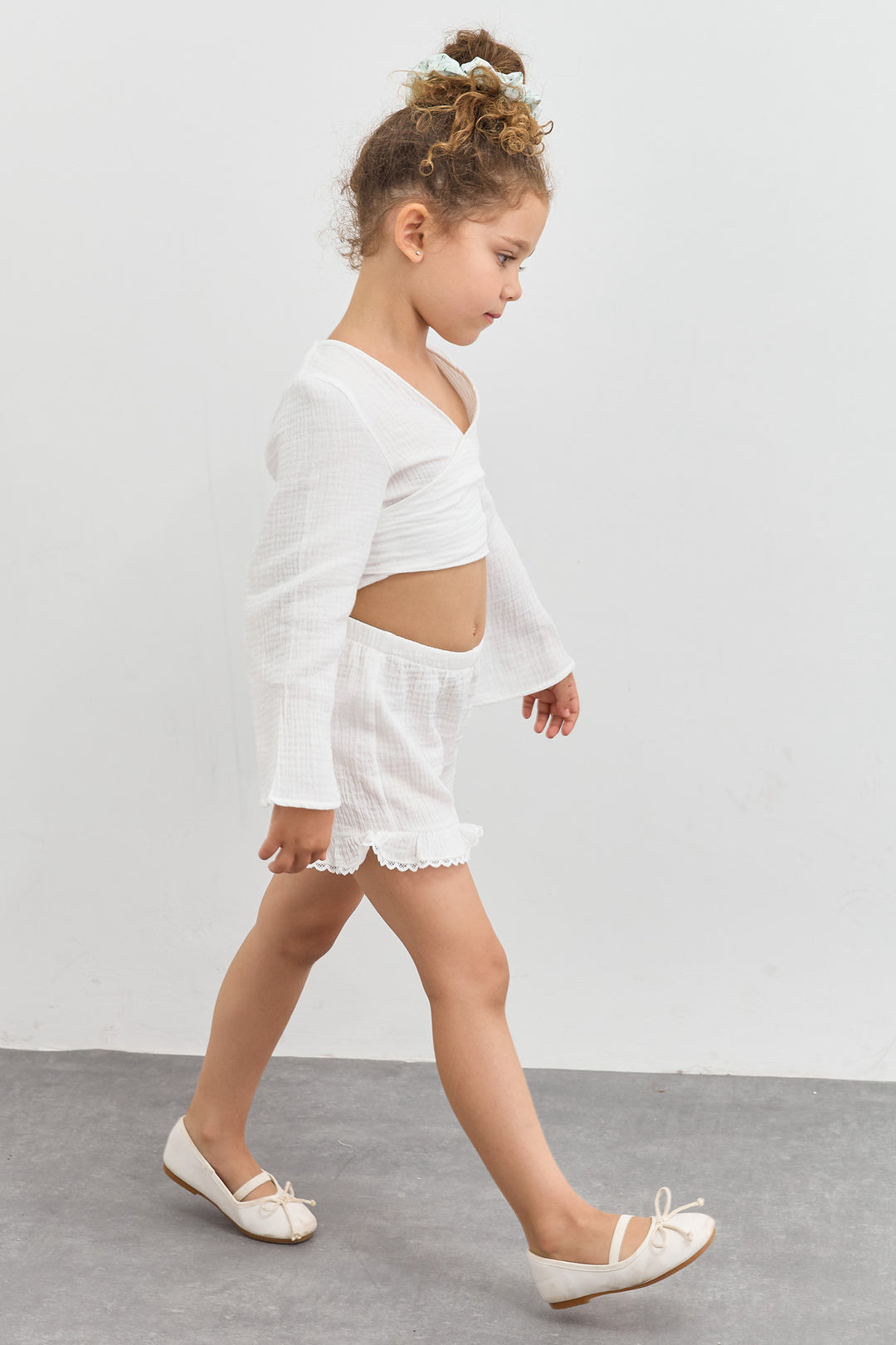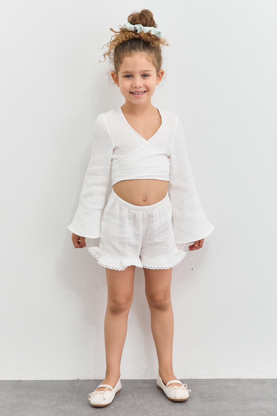 מכנסי טטרה פלאוורס עם כיווצים | לבן