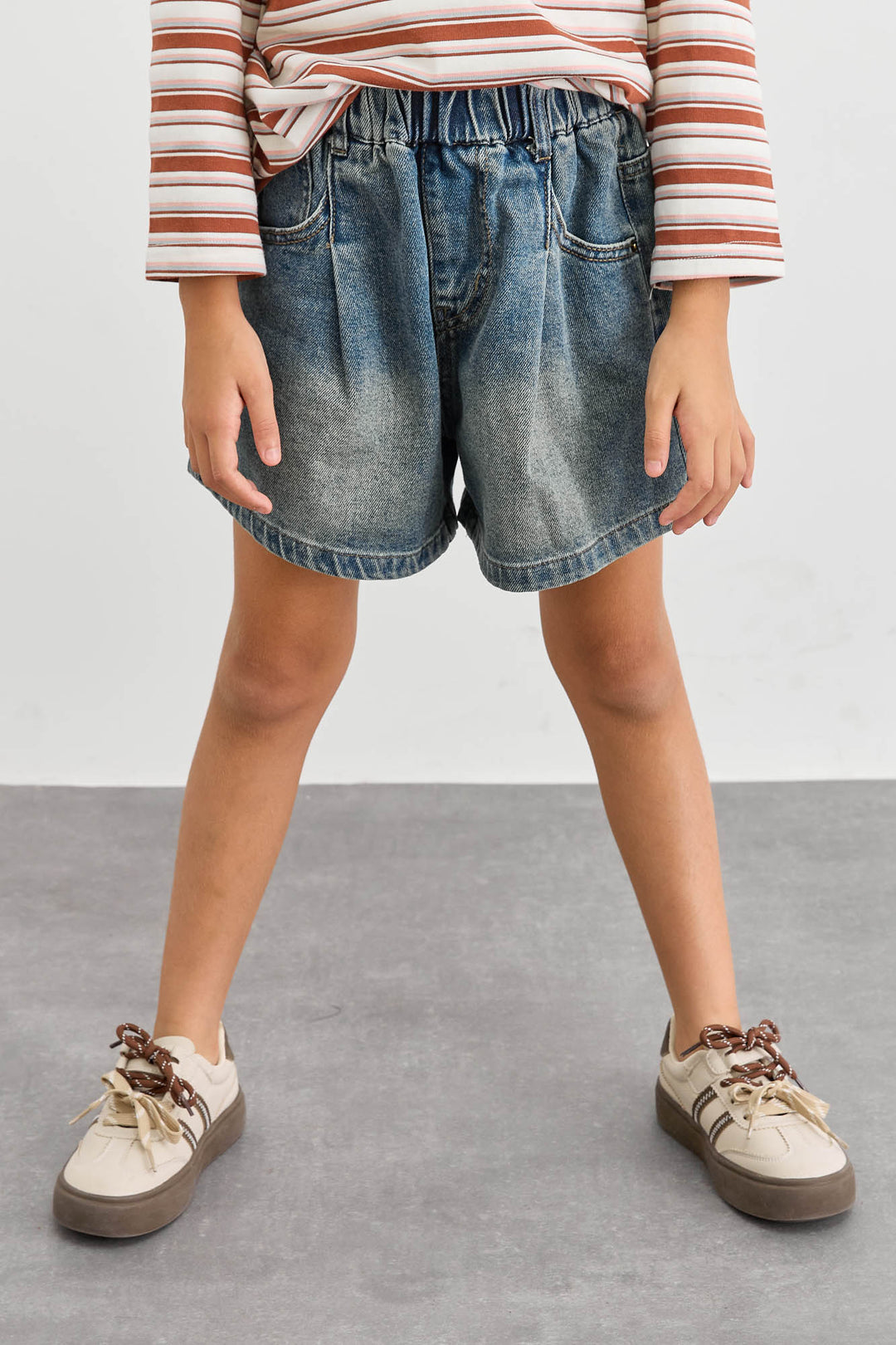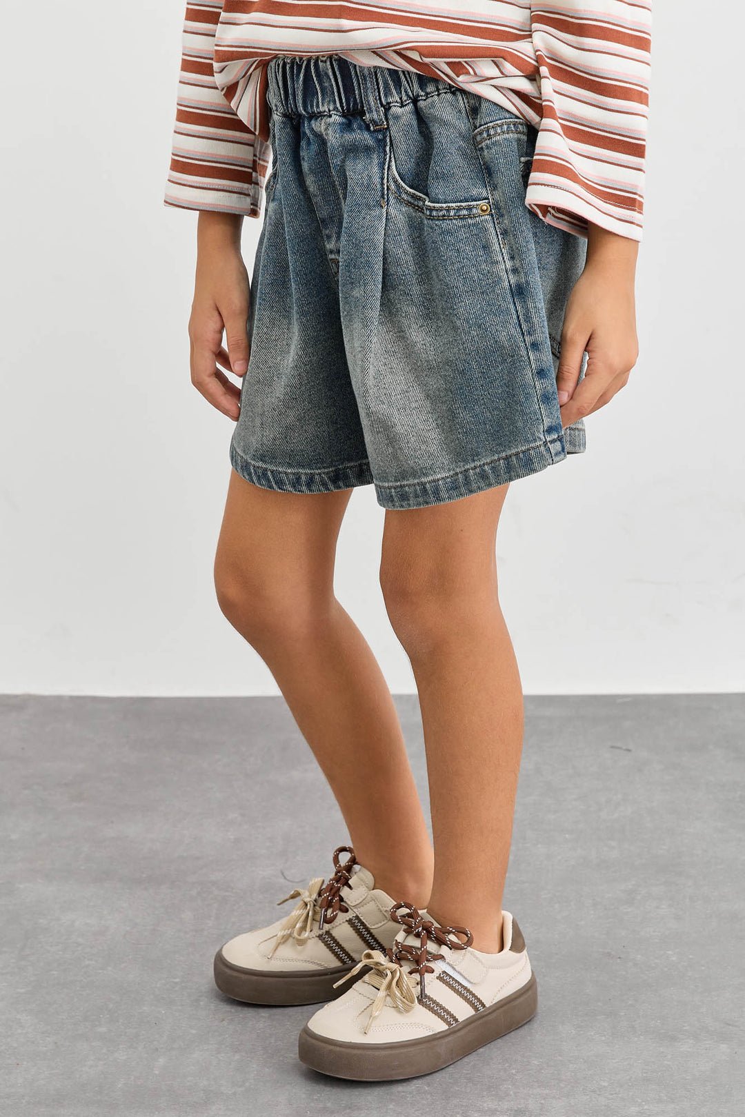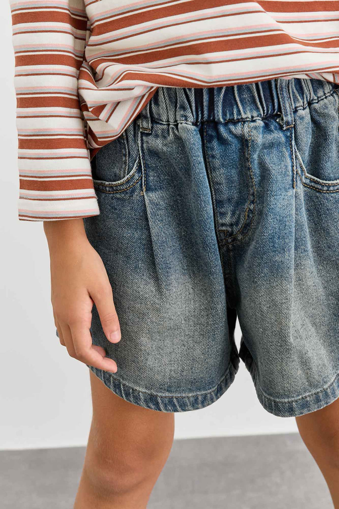 מכנסי ג'ינס קצרים בשילוב תיפורים | ג'ינס