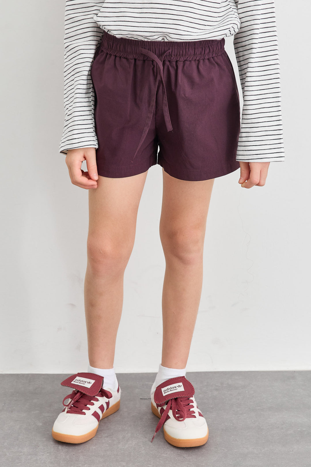 שורטס ניילון עם גומי במותן ובשילוב רקמה | סגול