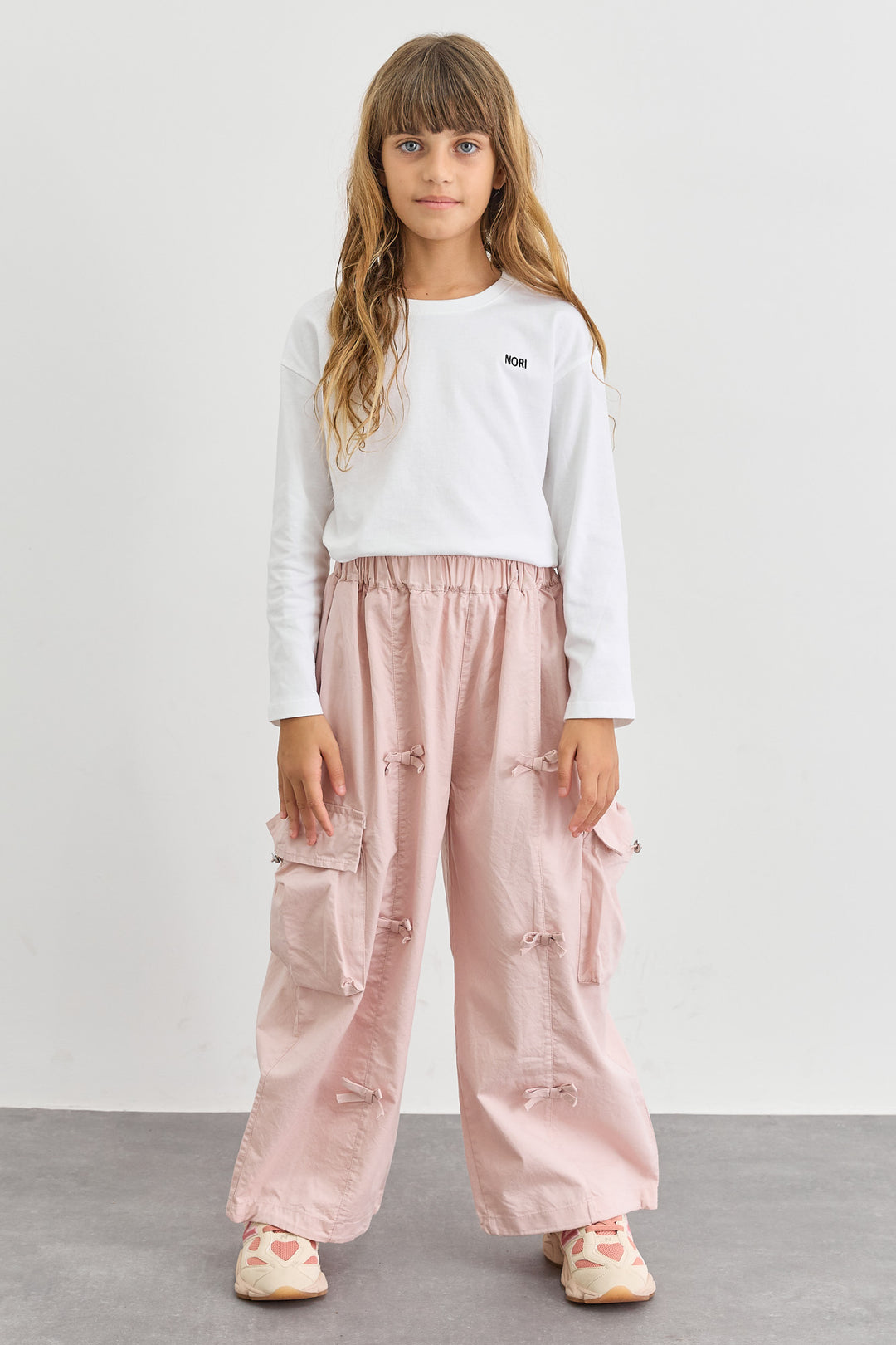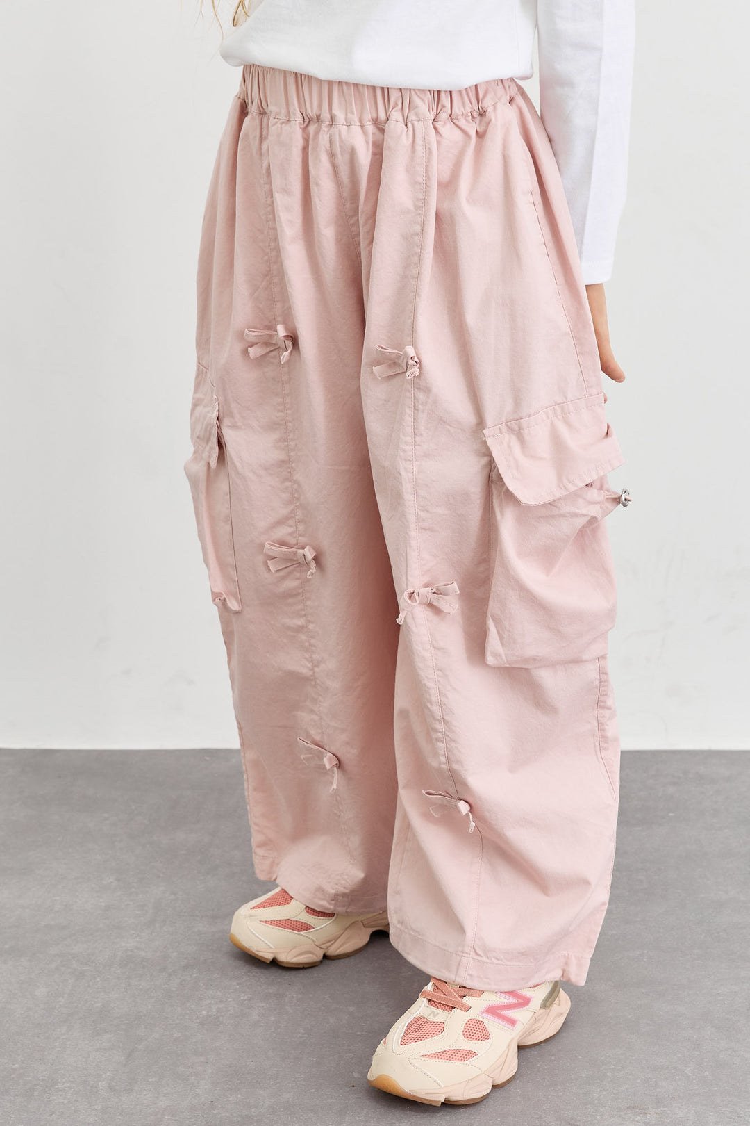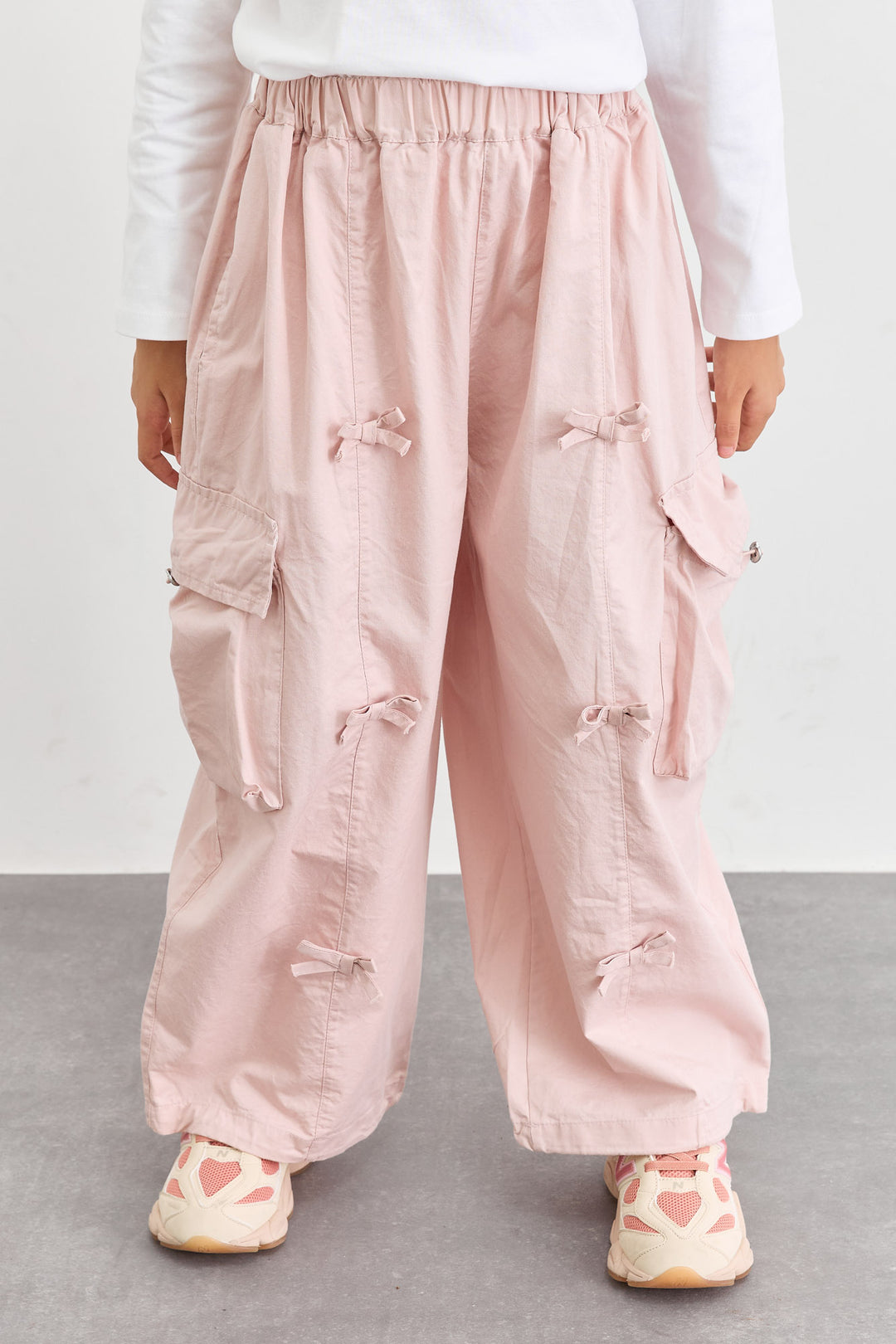 מכנסי דגמ"ח דיטיילז פפיונים וסיומת גומי | ורוד