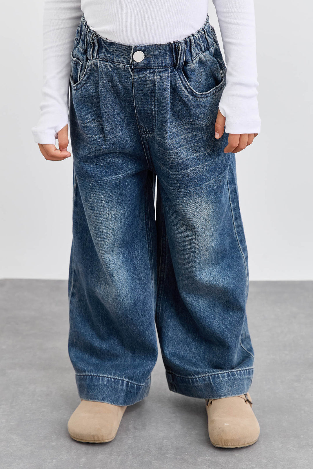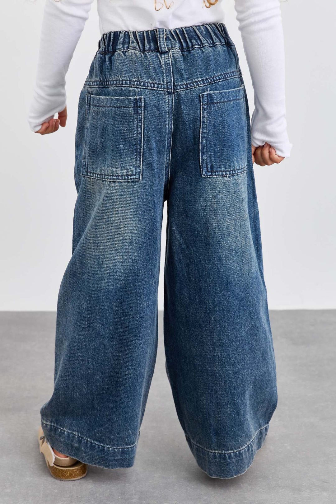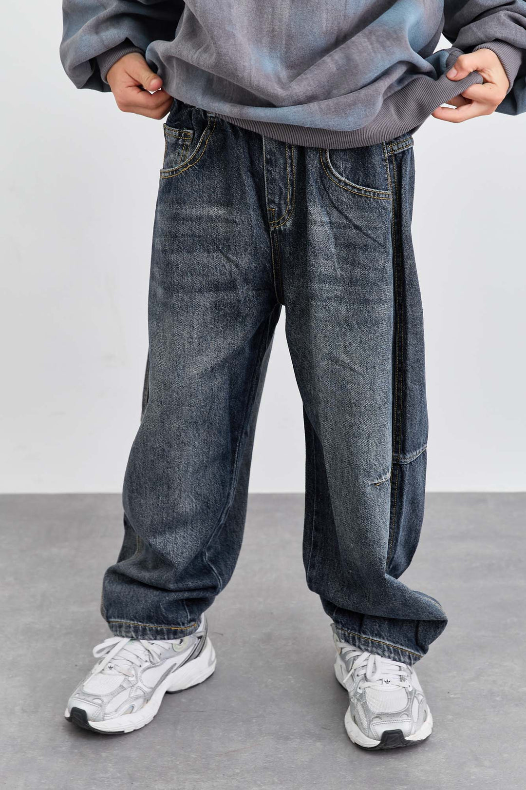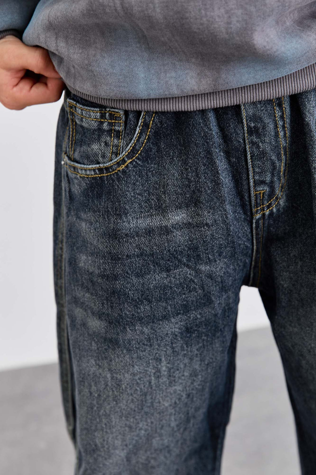 ג'ינס משופשף בגזרה ישרה וגומי במותן | ג'ינס