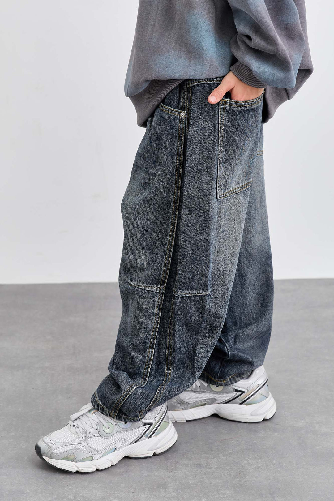 ג'ינס בגזרת בלון במראה משופשף | ג'ינס