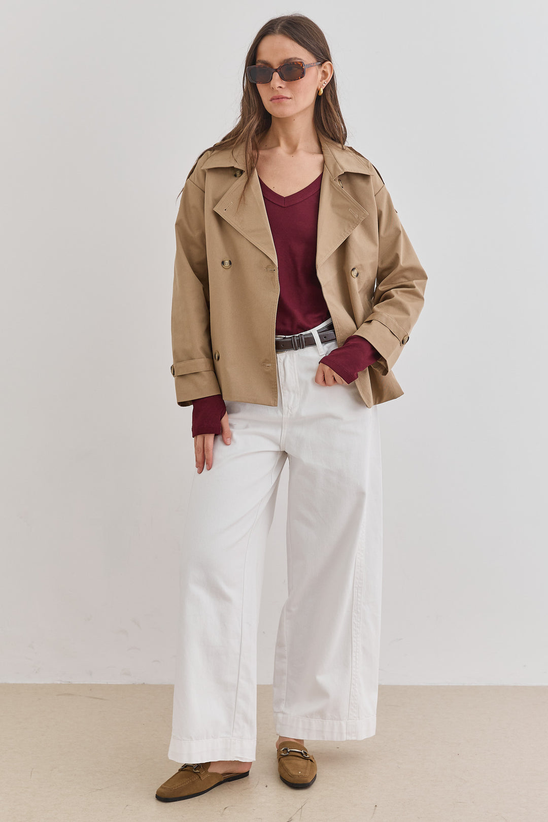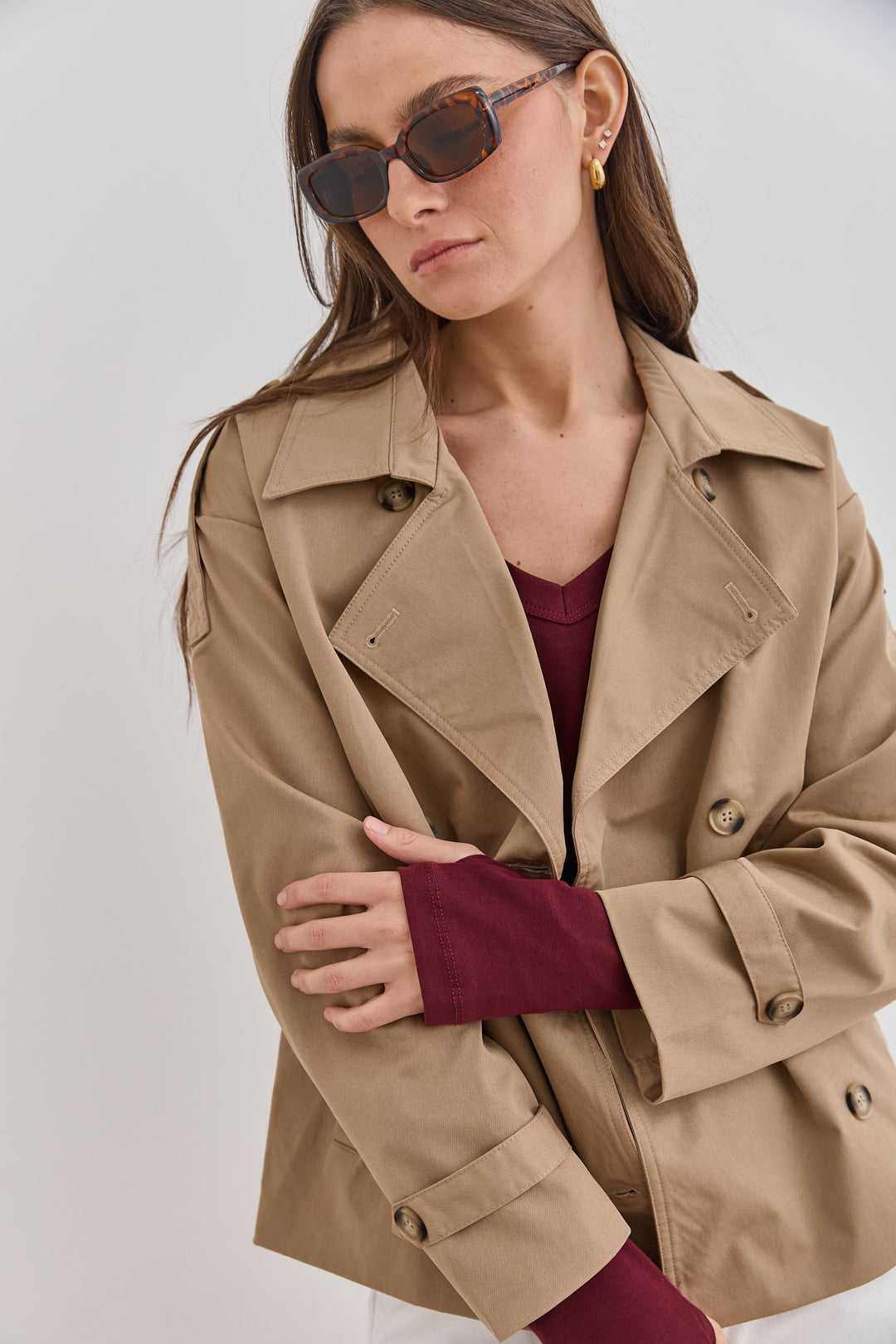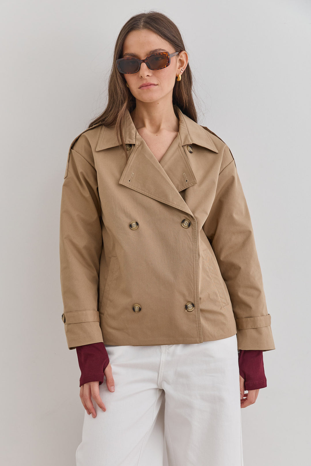 מעיל טראנץ' אלסקה כפתורים מנומרים | קאמל