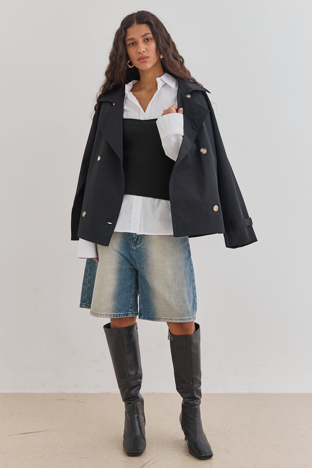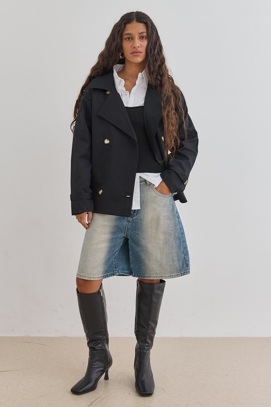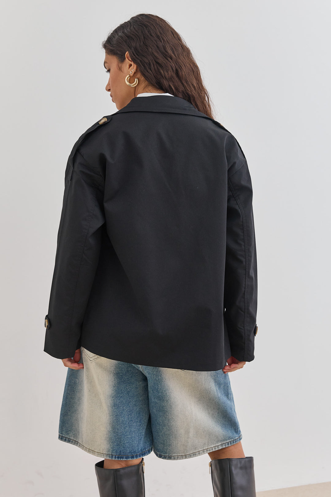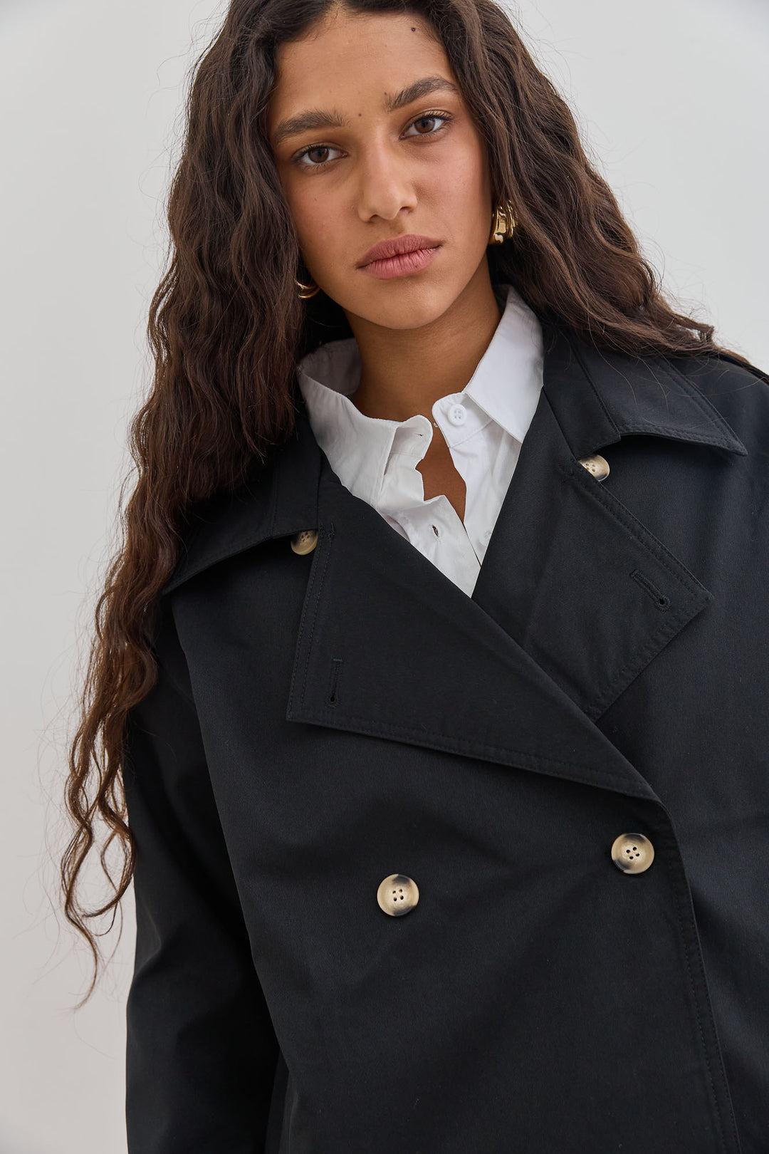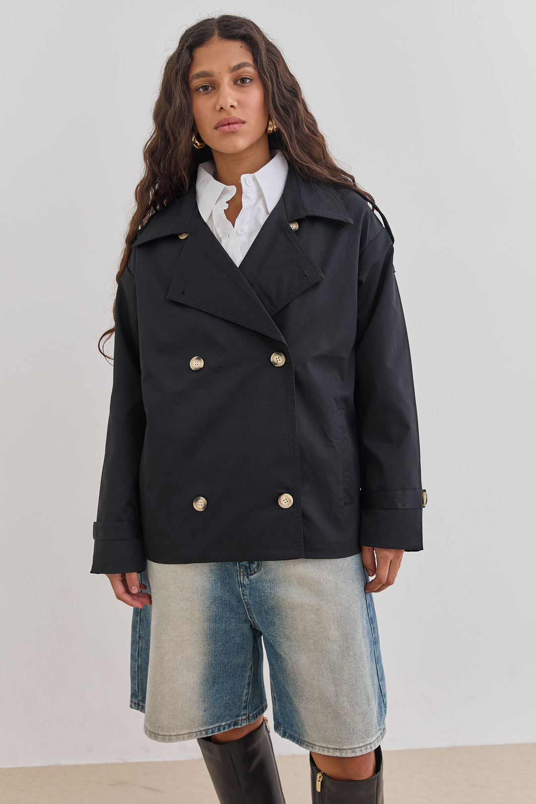 מעיל טראנץ' אלסקה כפתורים מנומרים | שחור
