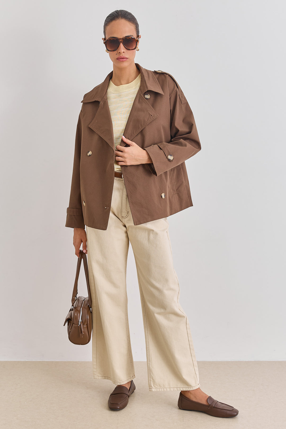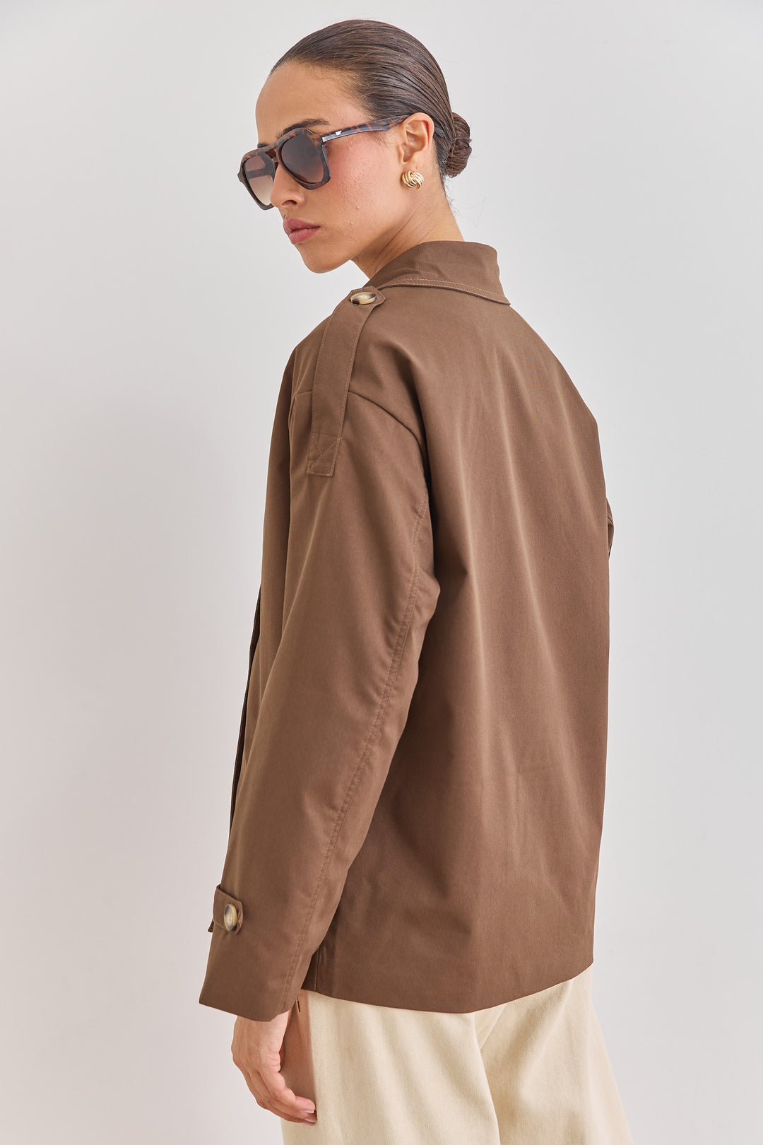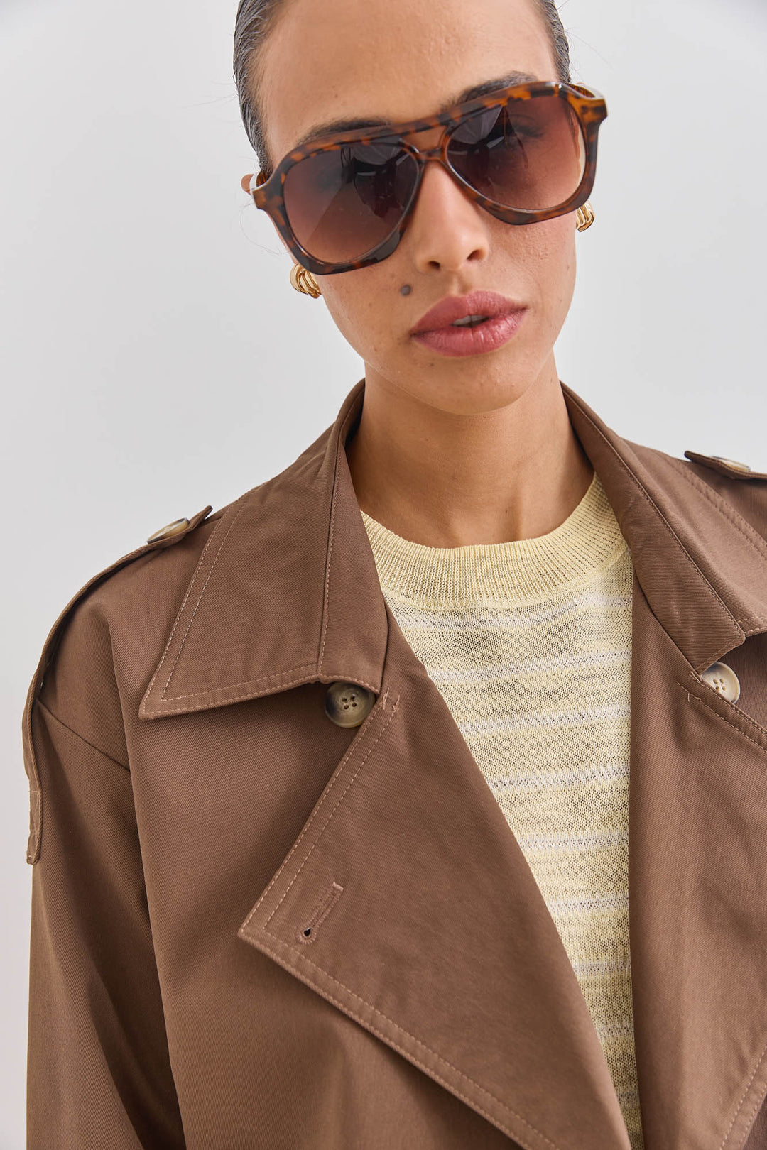 מעיל טראנץ' אלסקה כפתורים מנומרים | חום כהה