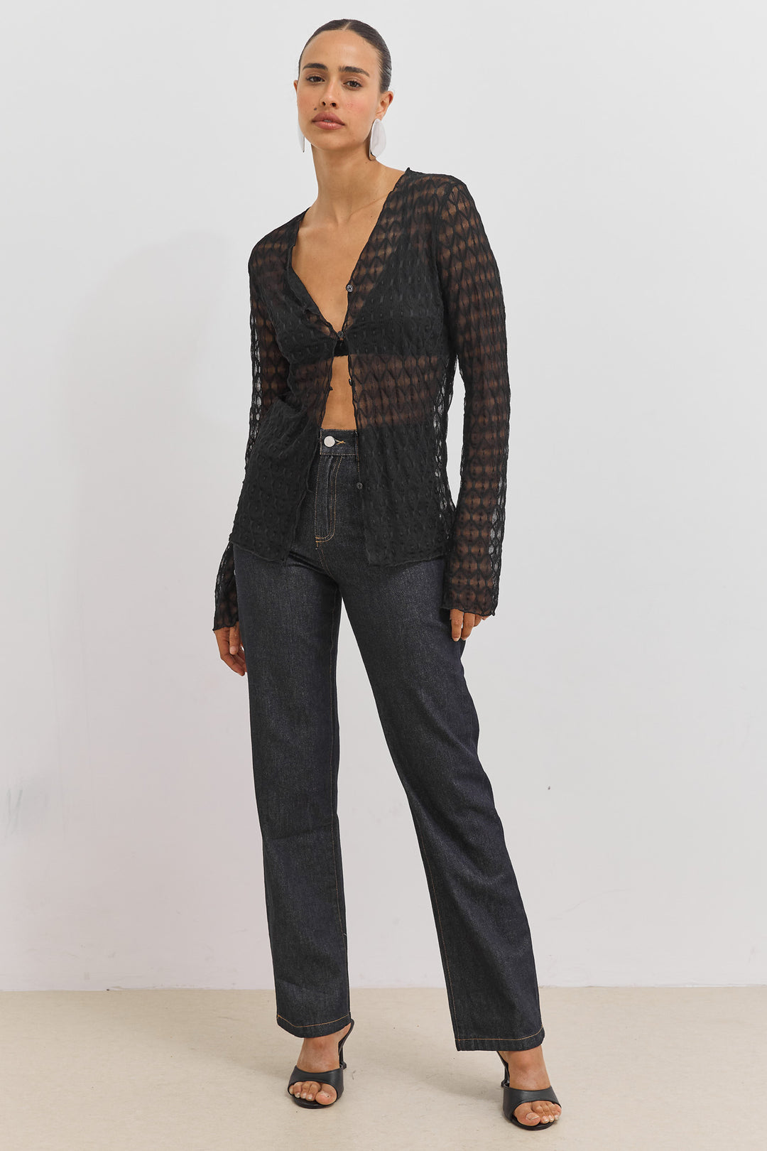 מכנסי ג'ינס בראד תיפורים בולטים | ג'ינס כהה