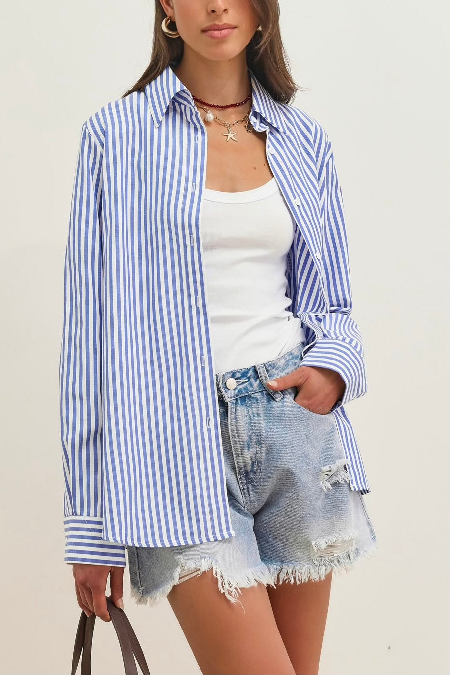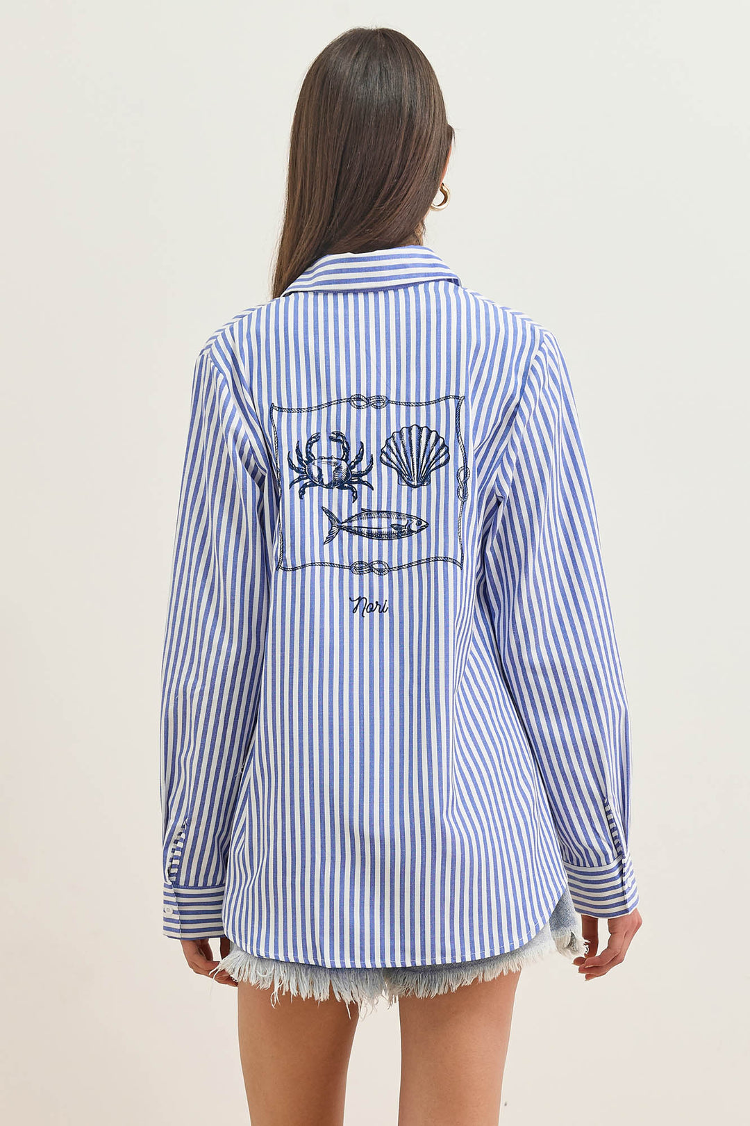 מכופתרת ריצ'י סטרייפס רקמה בגב | כחול/לבן