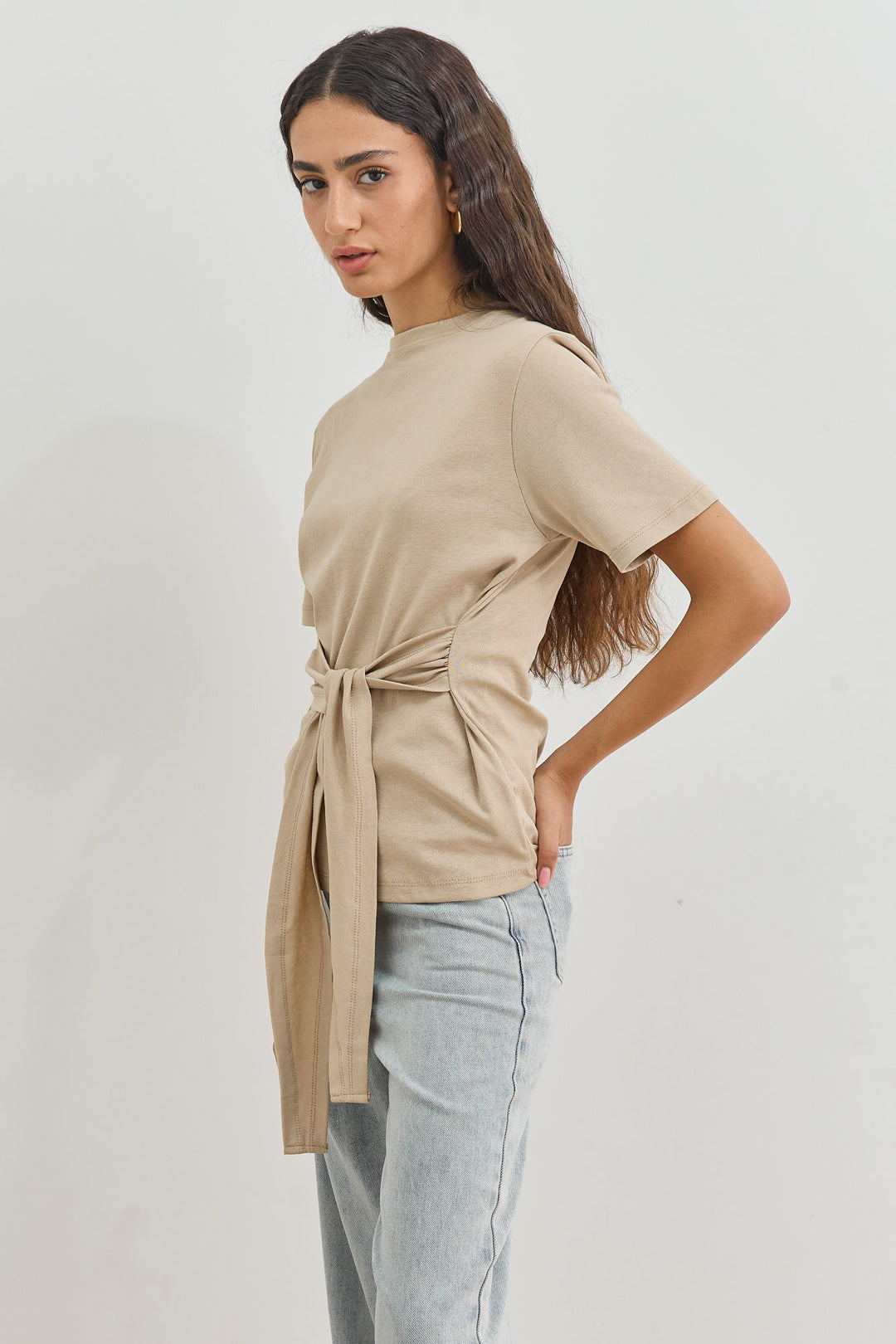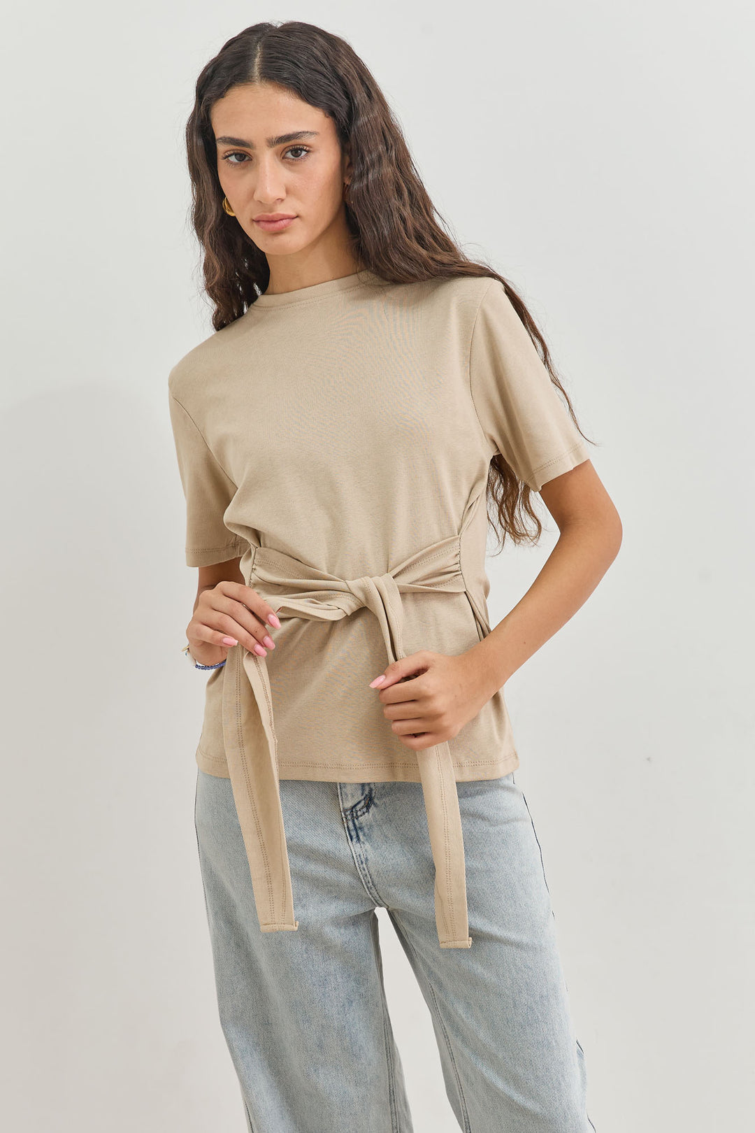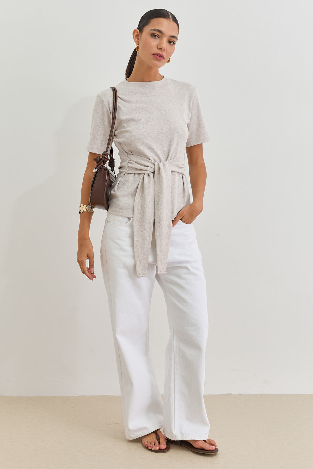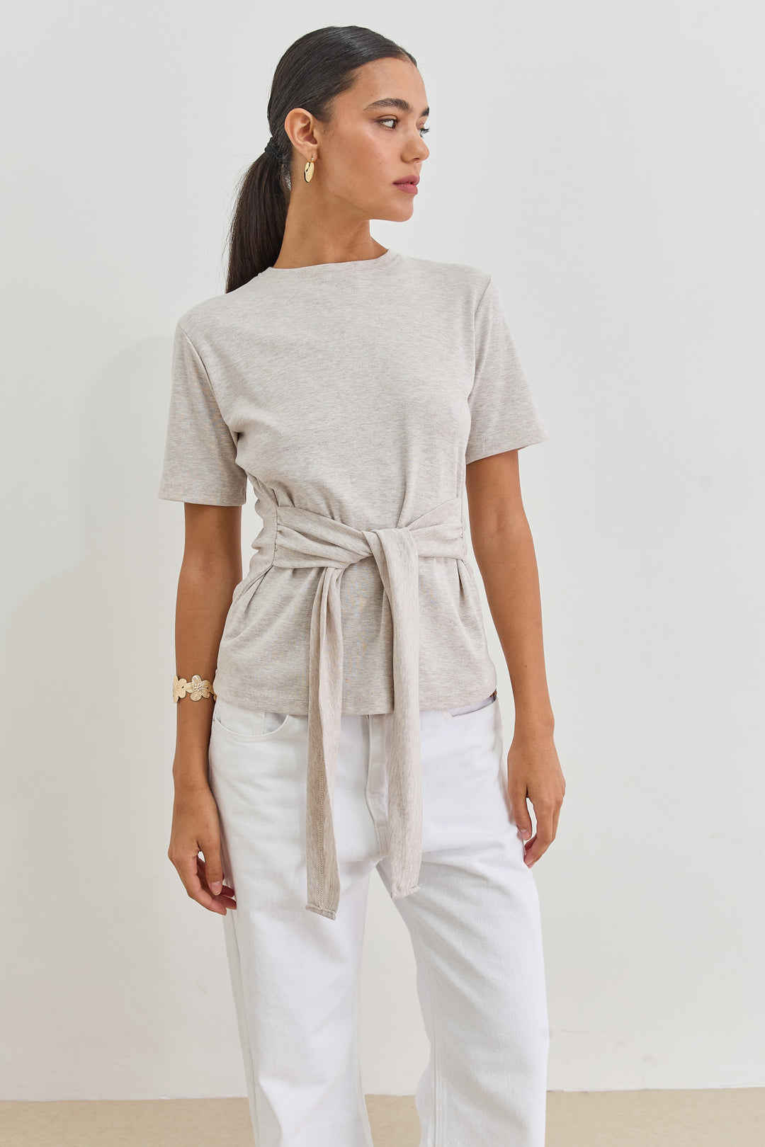 חולצת אנני רצועות קשירה | בז' מלאנז'