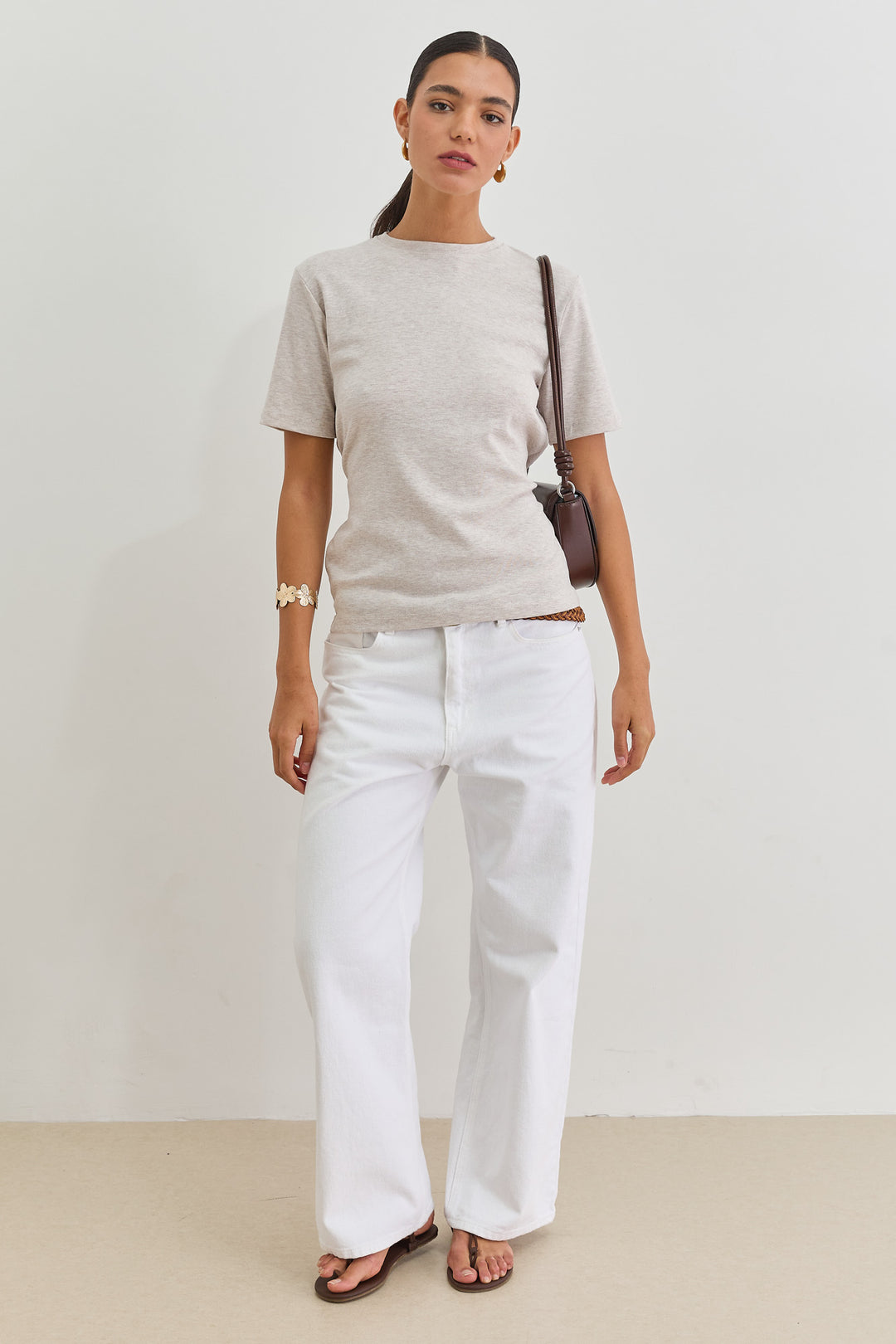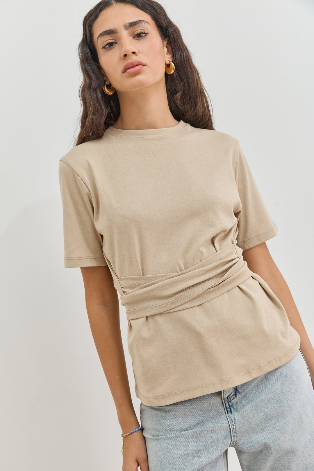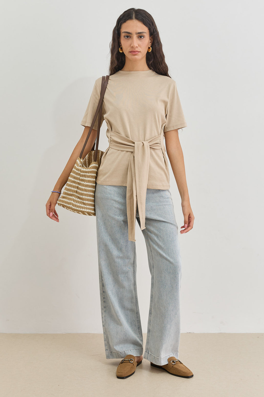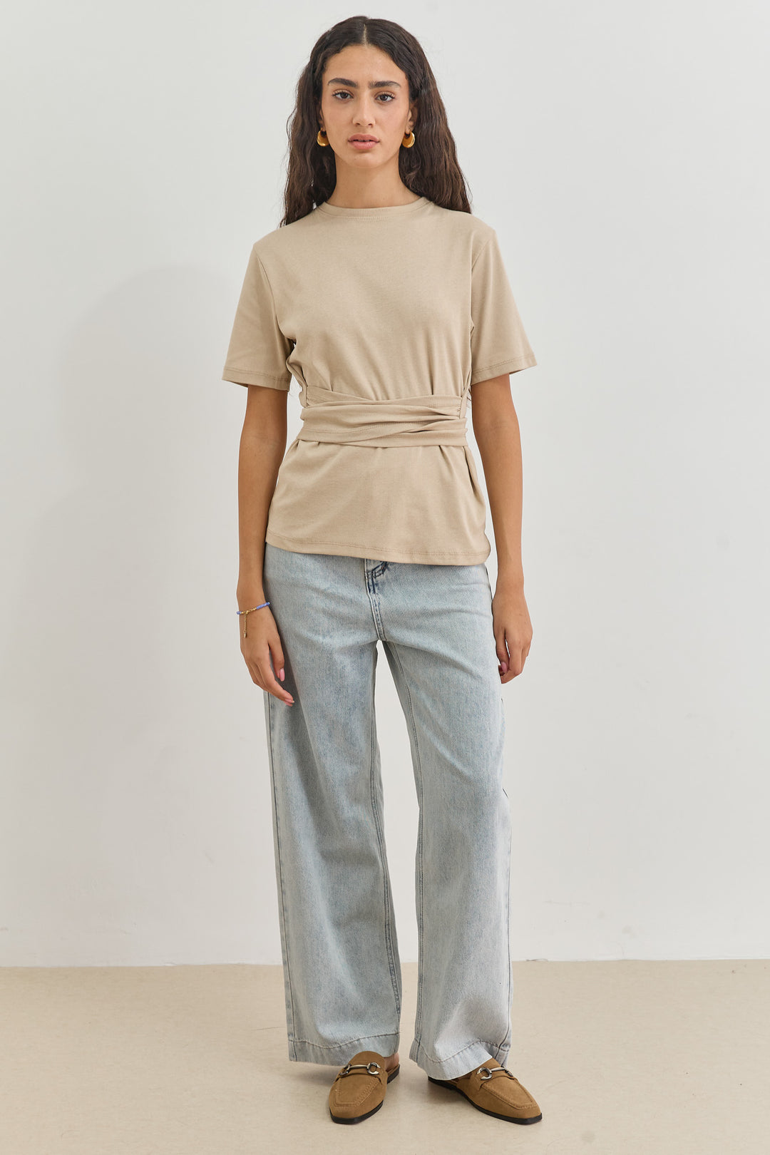 חולצת אנני רצועות קשירה | בז' מלאנז'