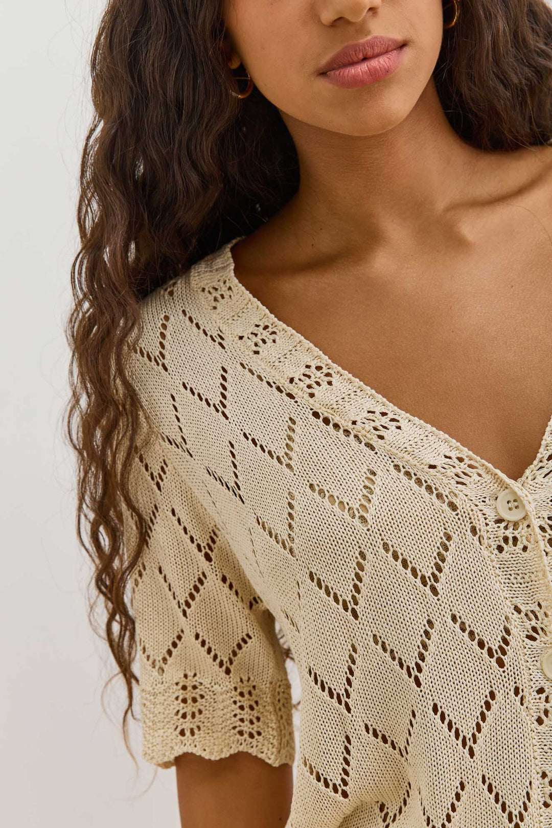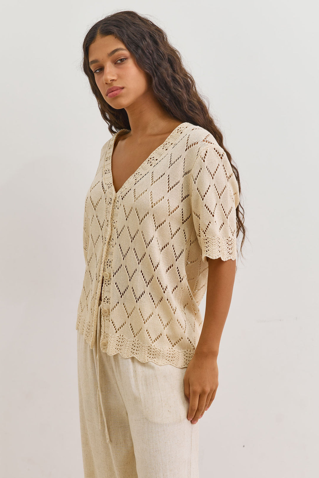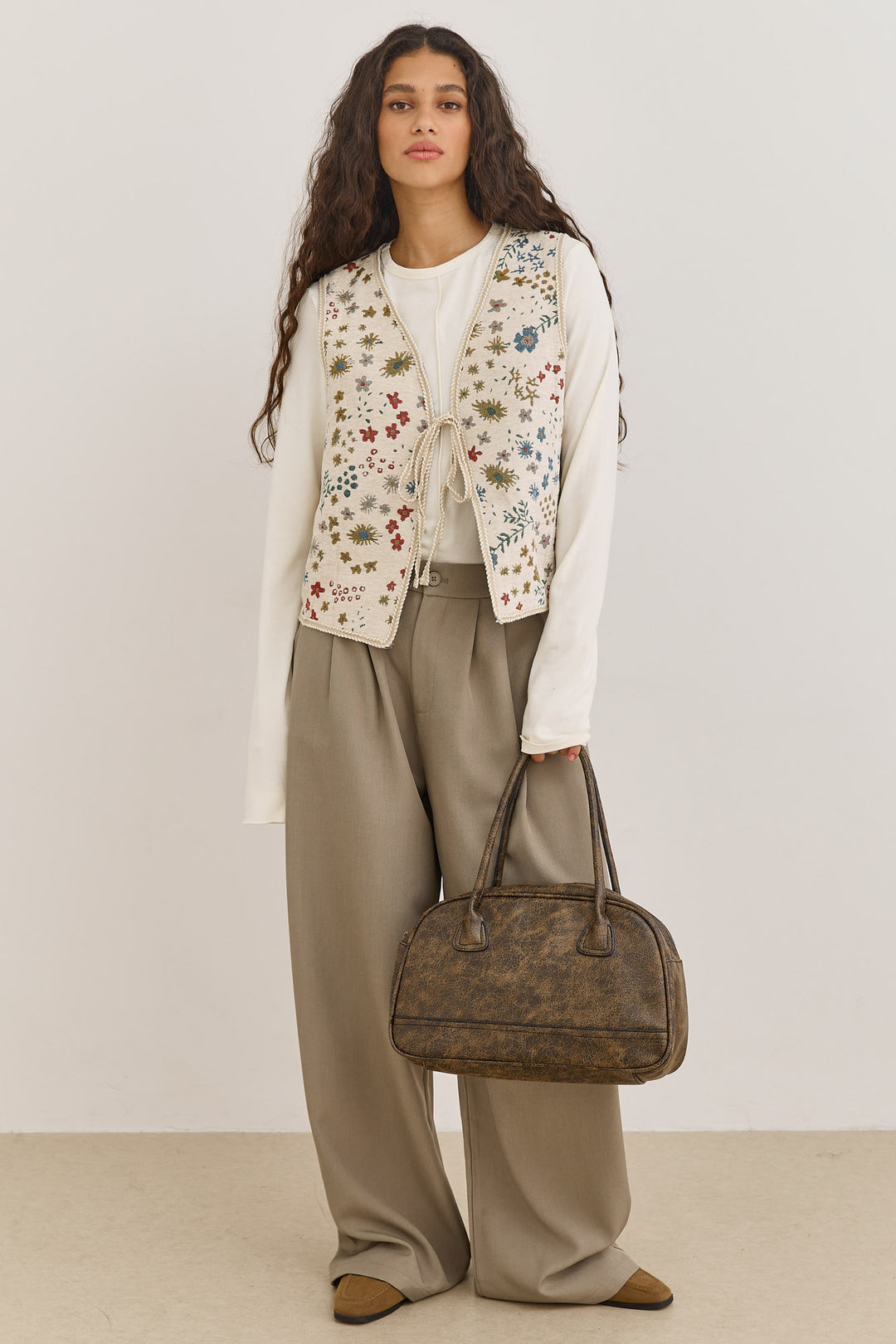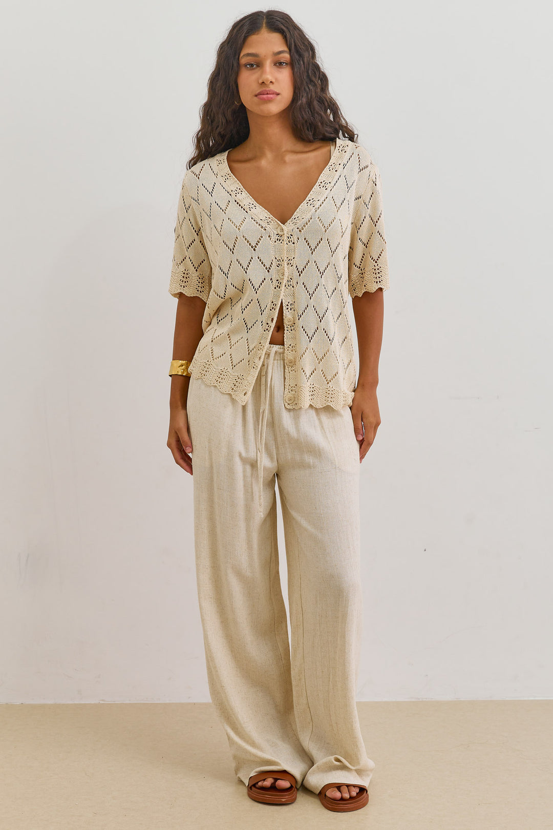 חולצת אנני רצועות קשירה | בז' מלאנז'