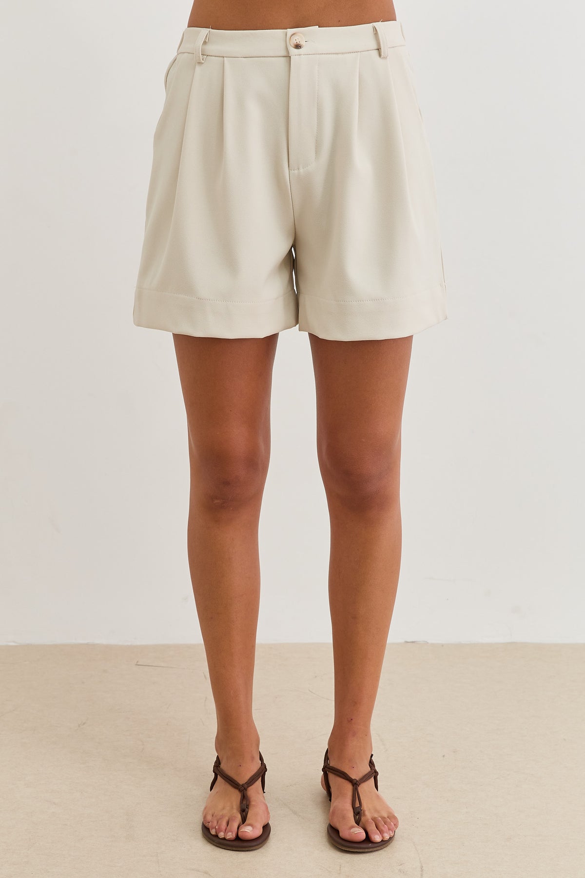 מכנסיים קצרים קרול גזרה מחויטת | שמנת