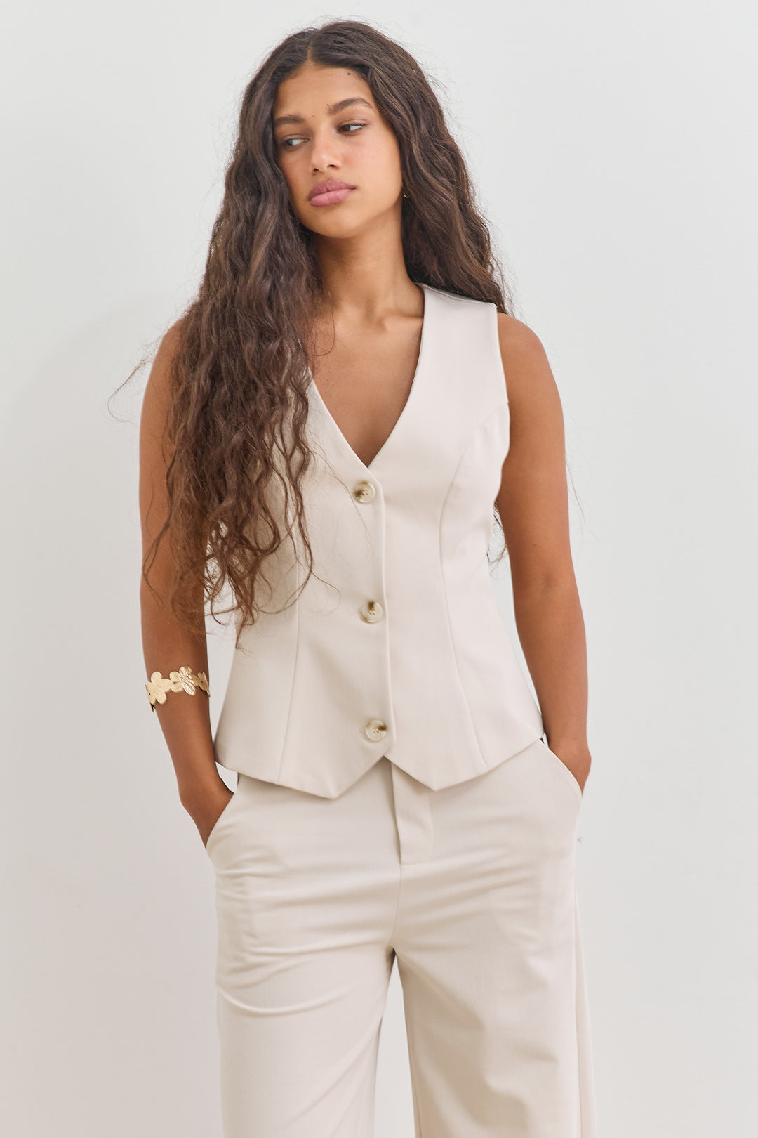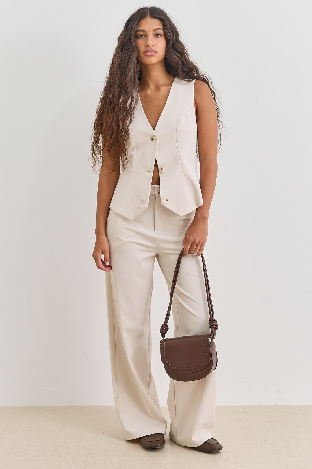 מכנסיים מחויטים מונה גזרה ישרה | אבן