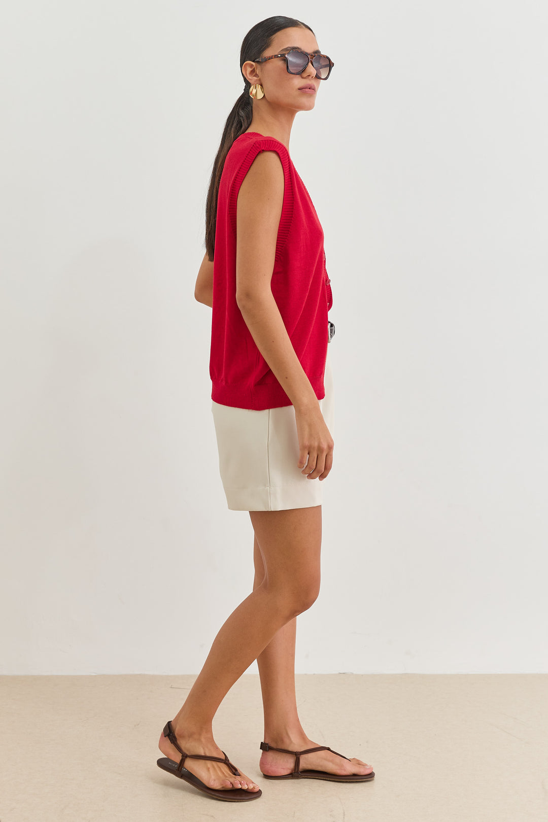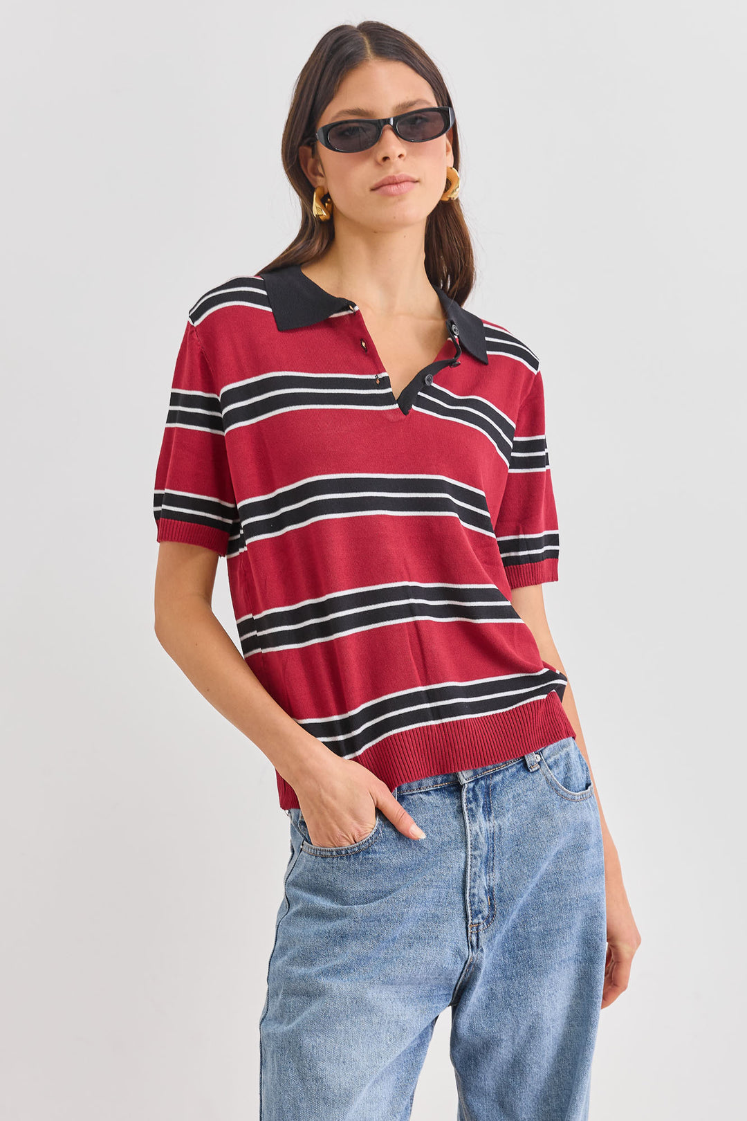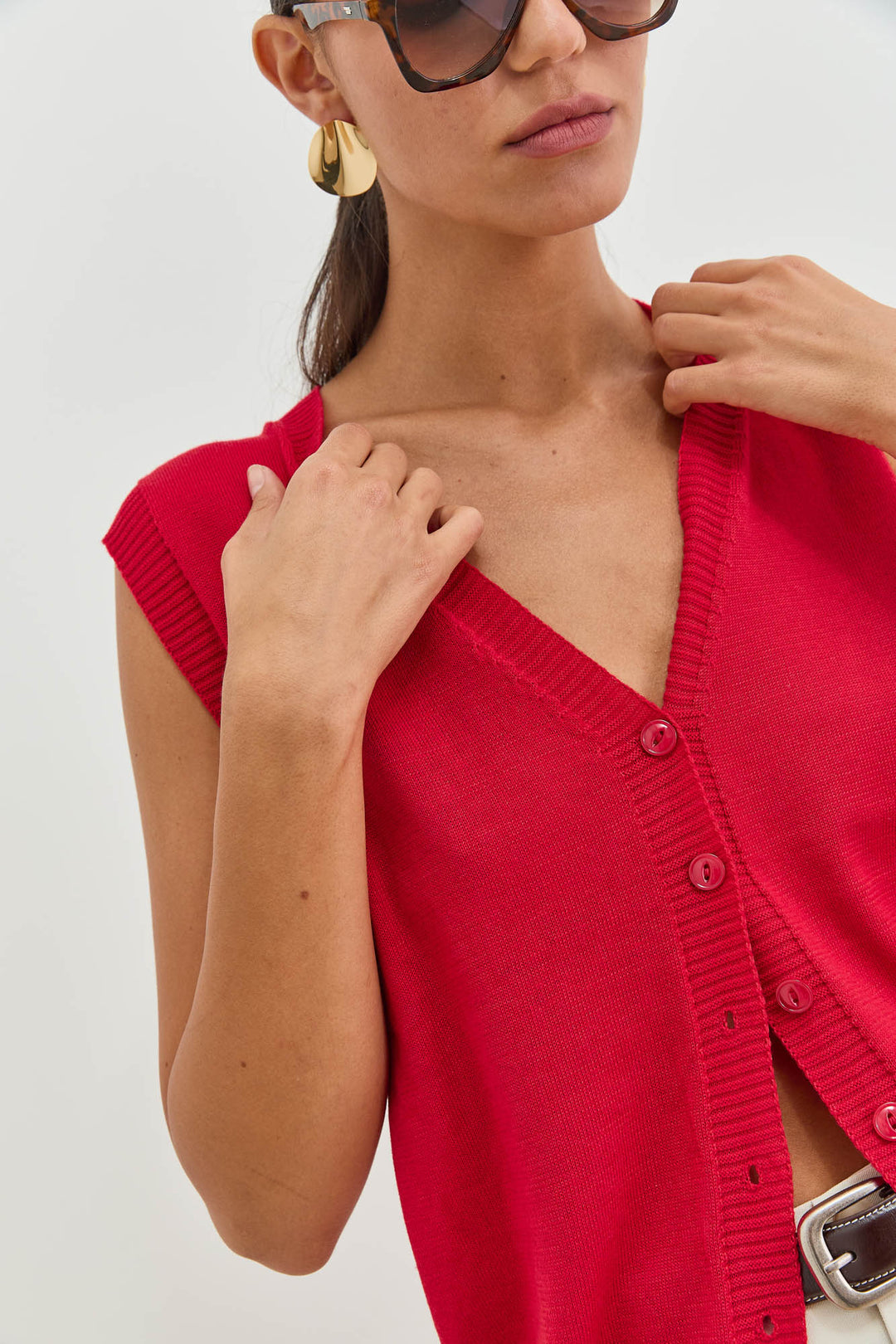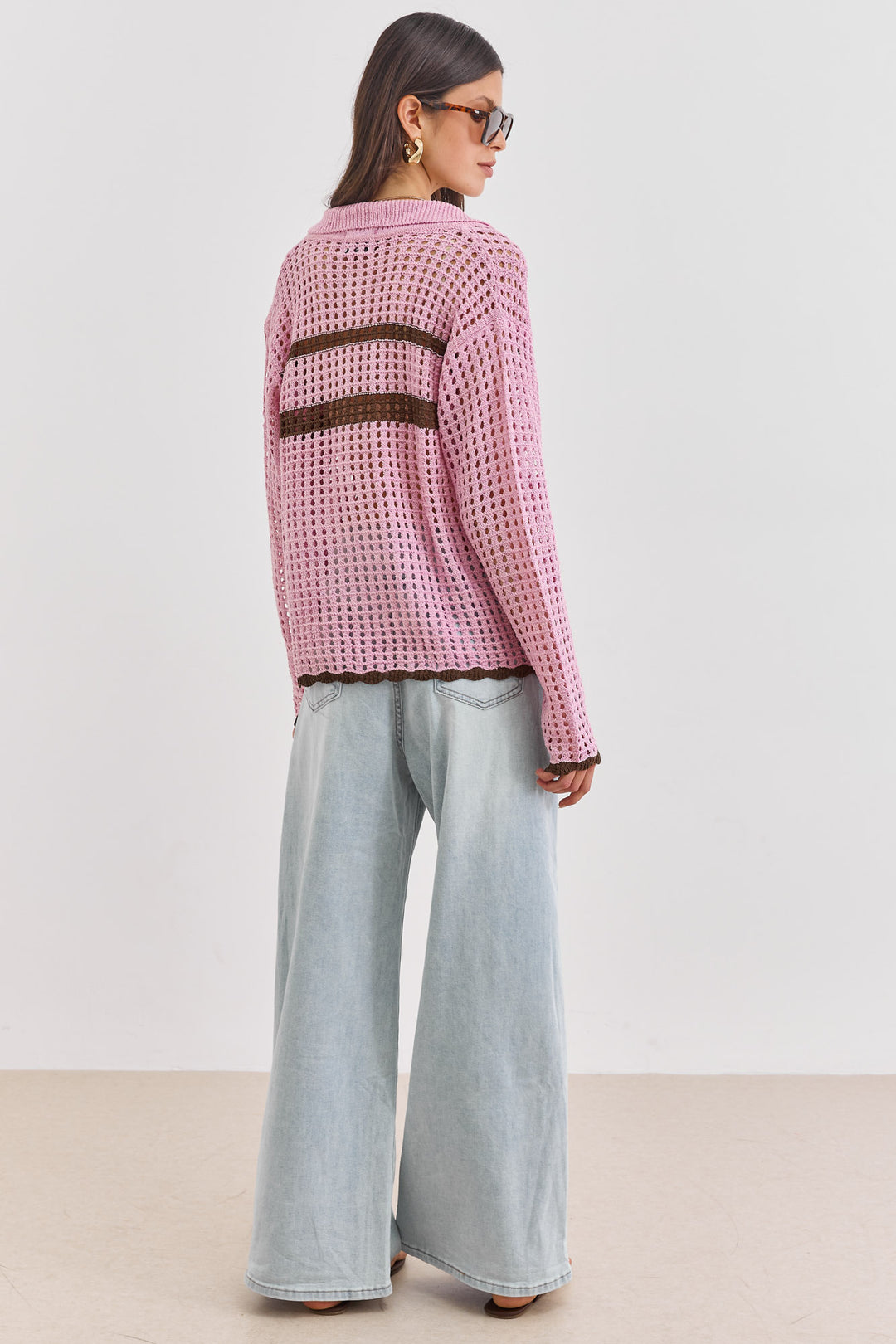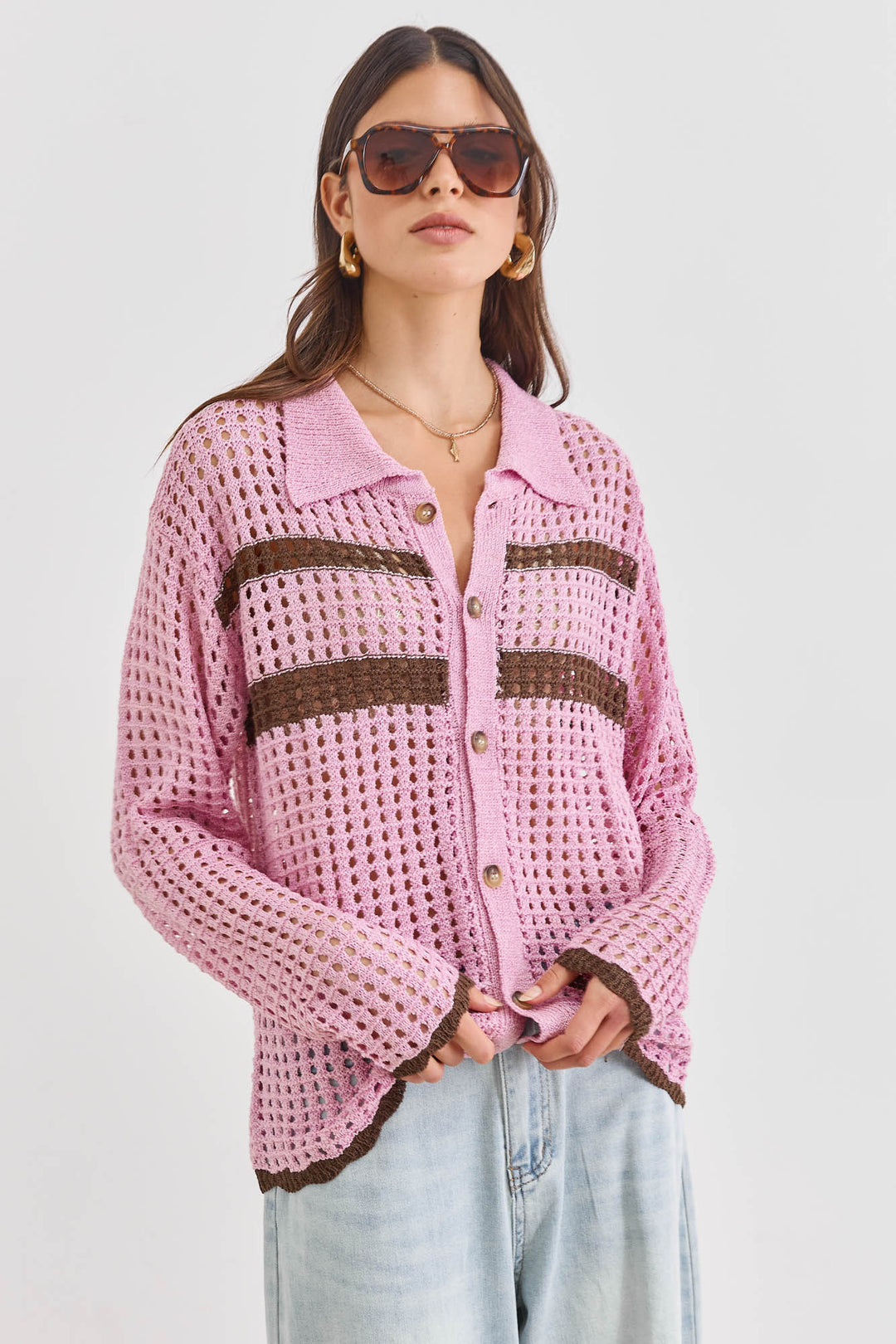 חולצת כפתורים אריאל בד סריג מחורר | ורוד/חום