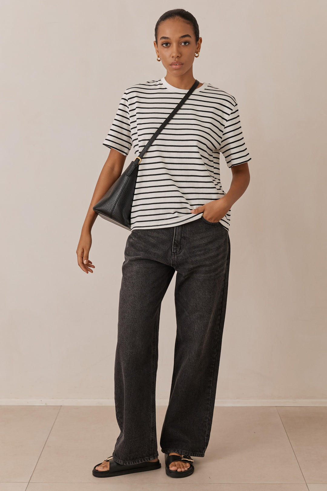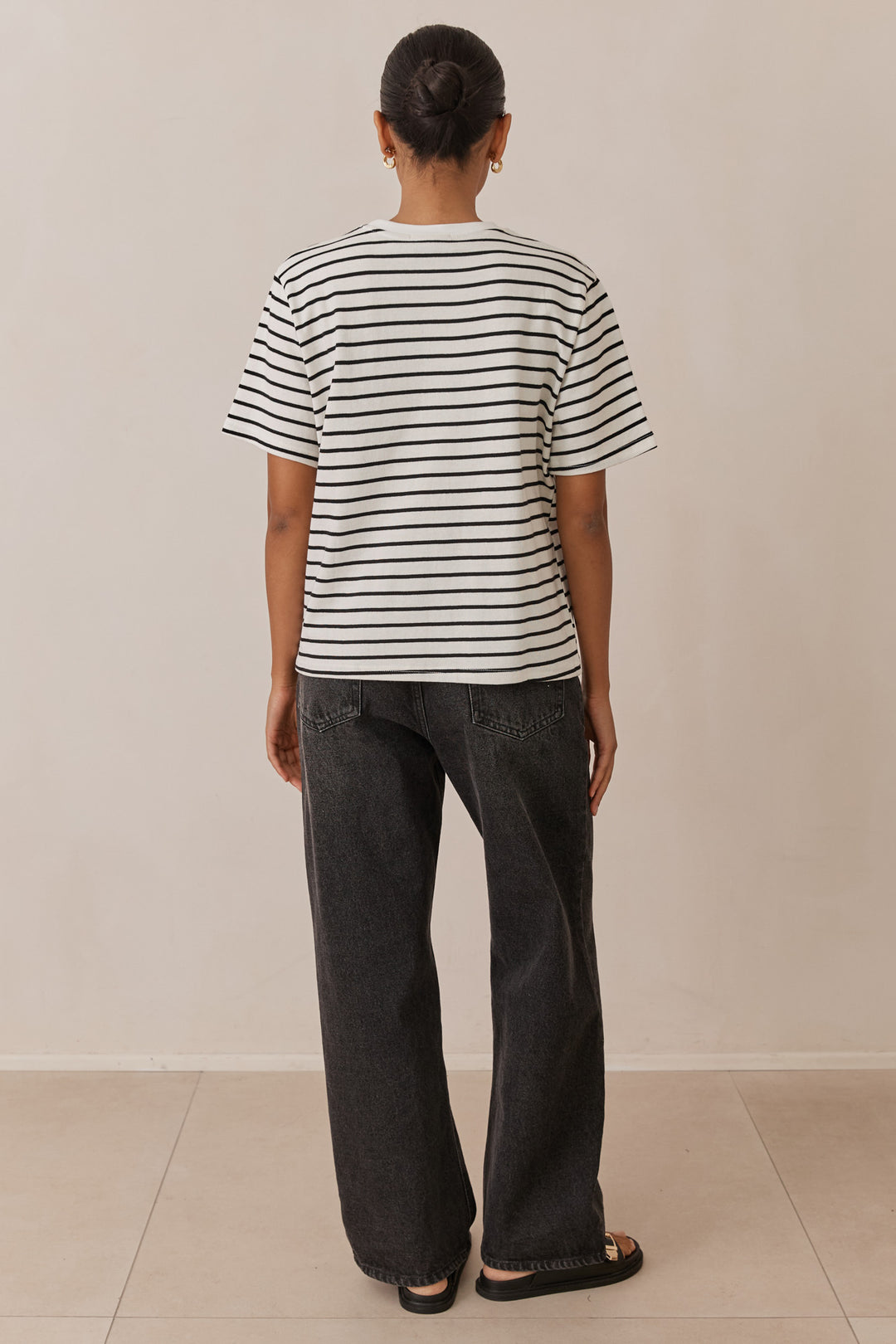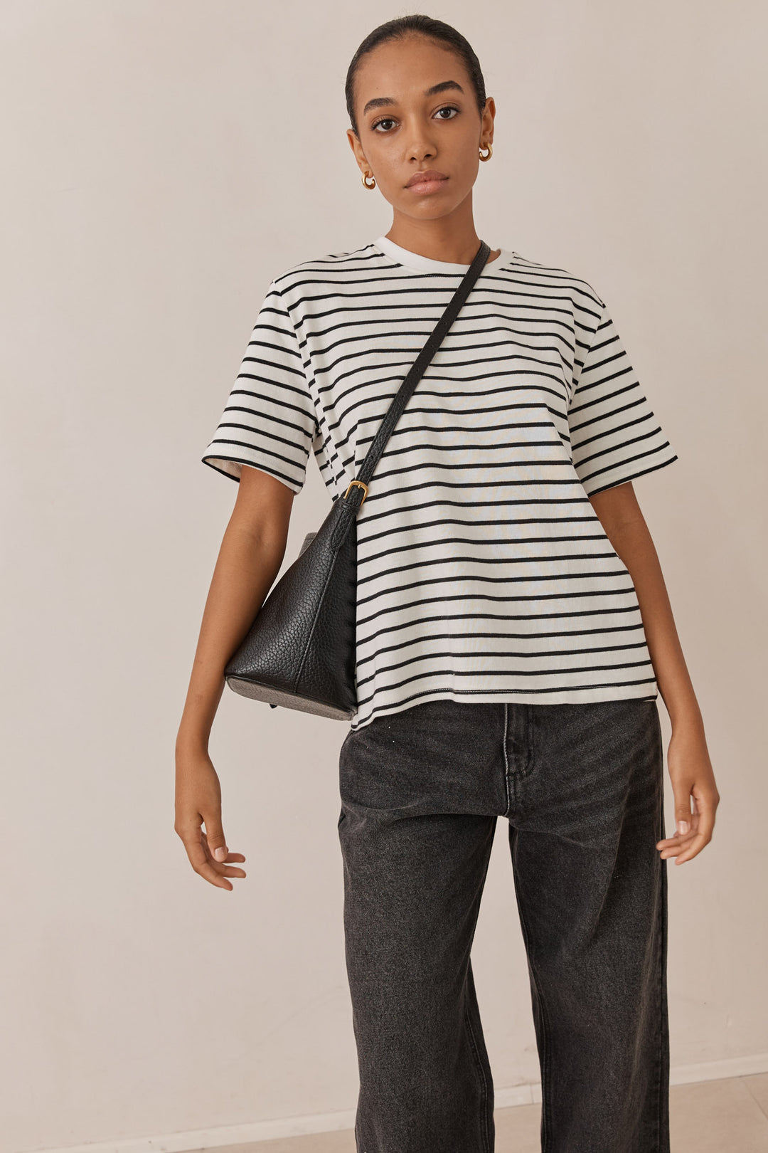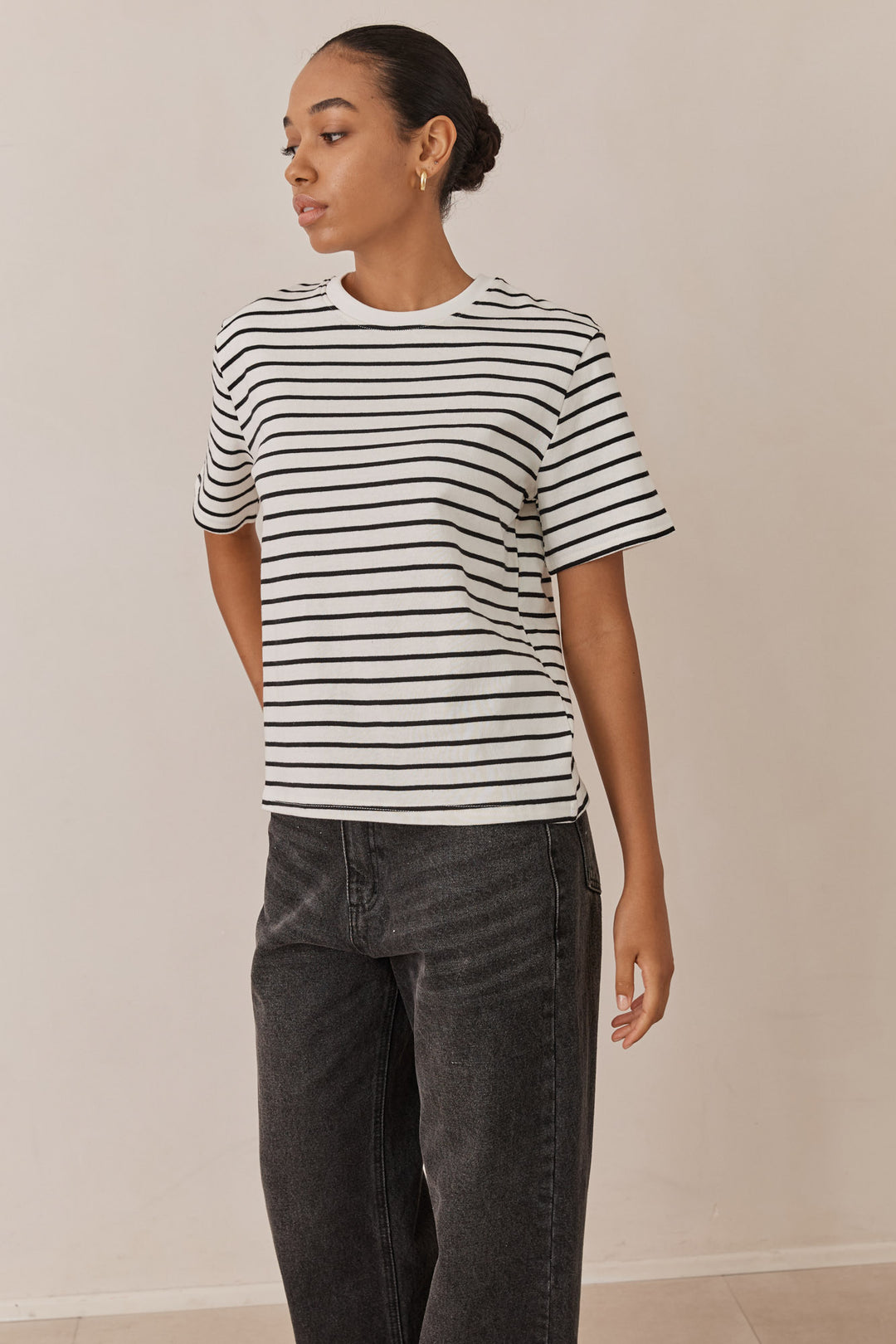 טי שירט סבסטיאן סטרייפס | לבן/שחור