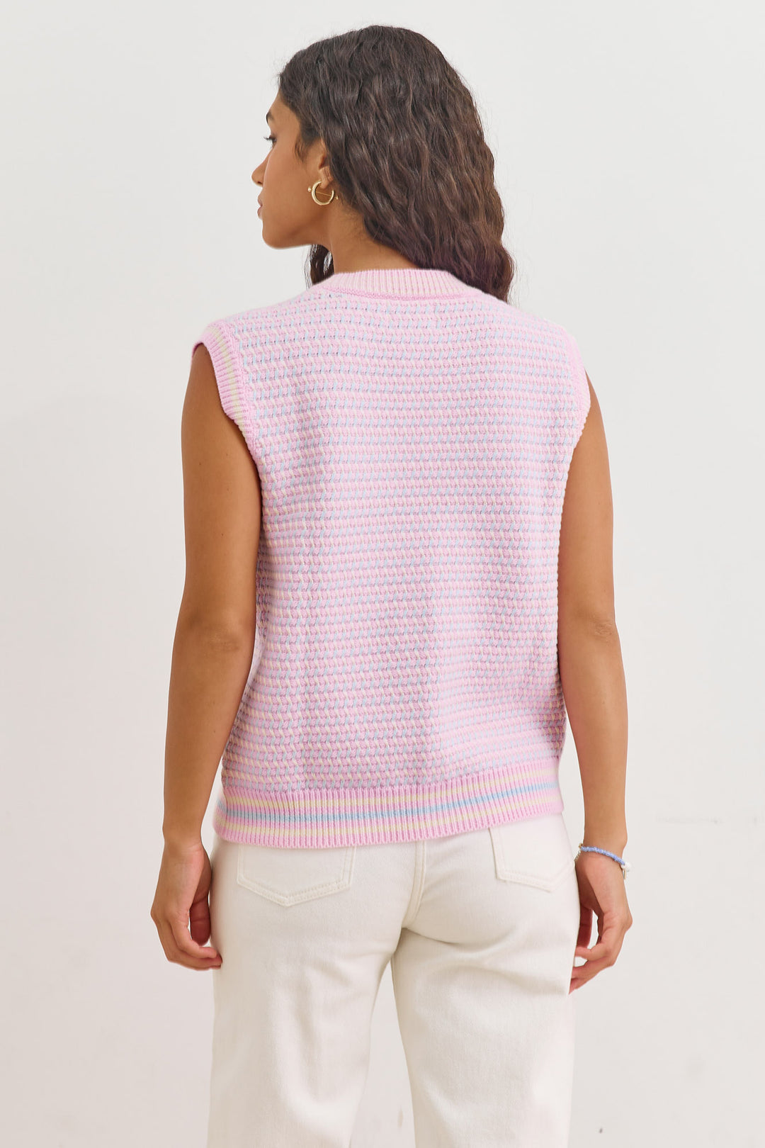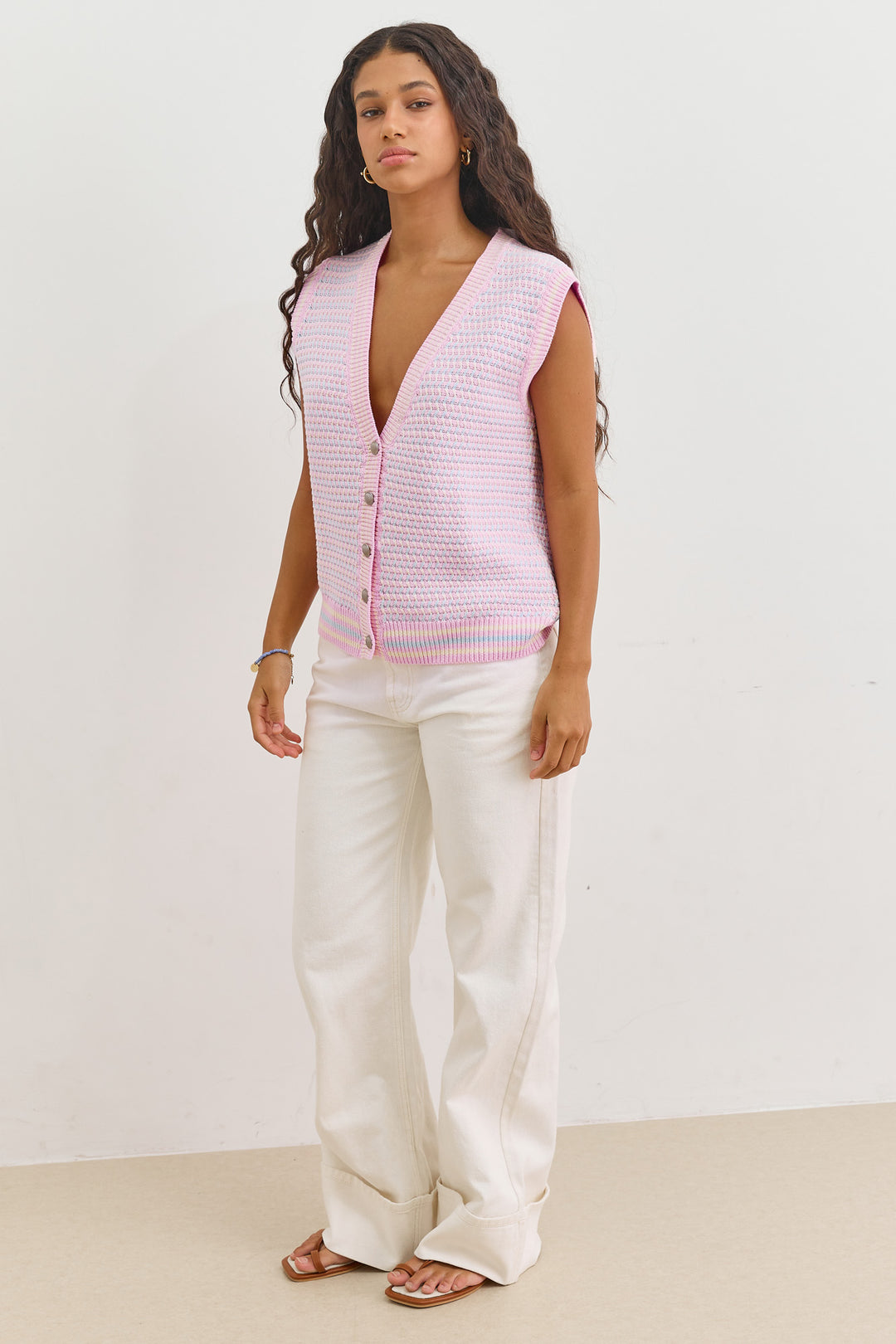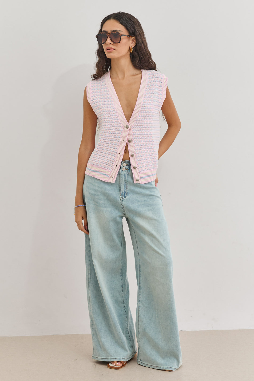 אפודה סרוגה קרולינה בשילוב כפתורים | כחול/ורוד