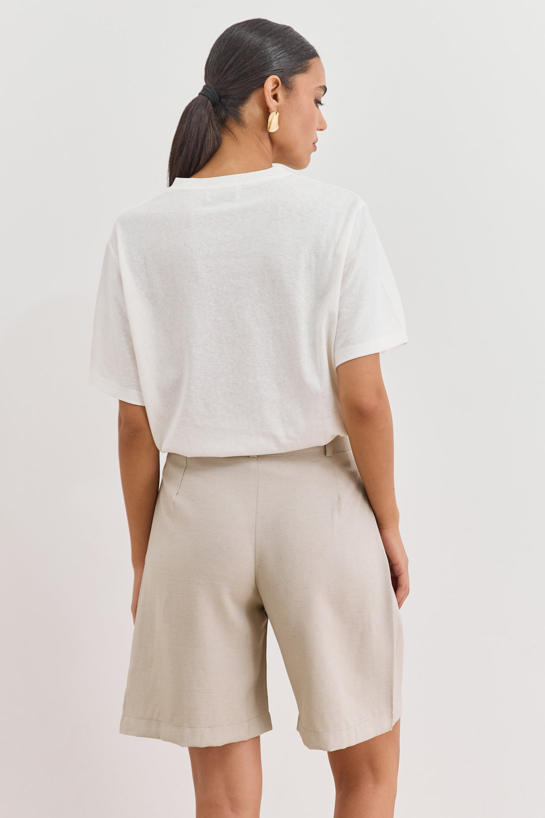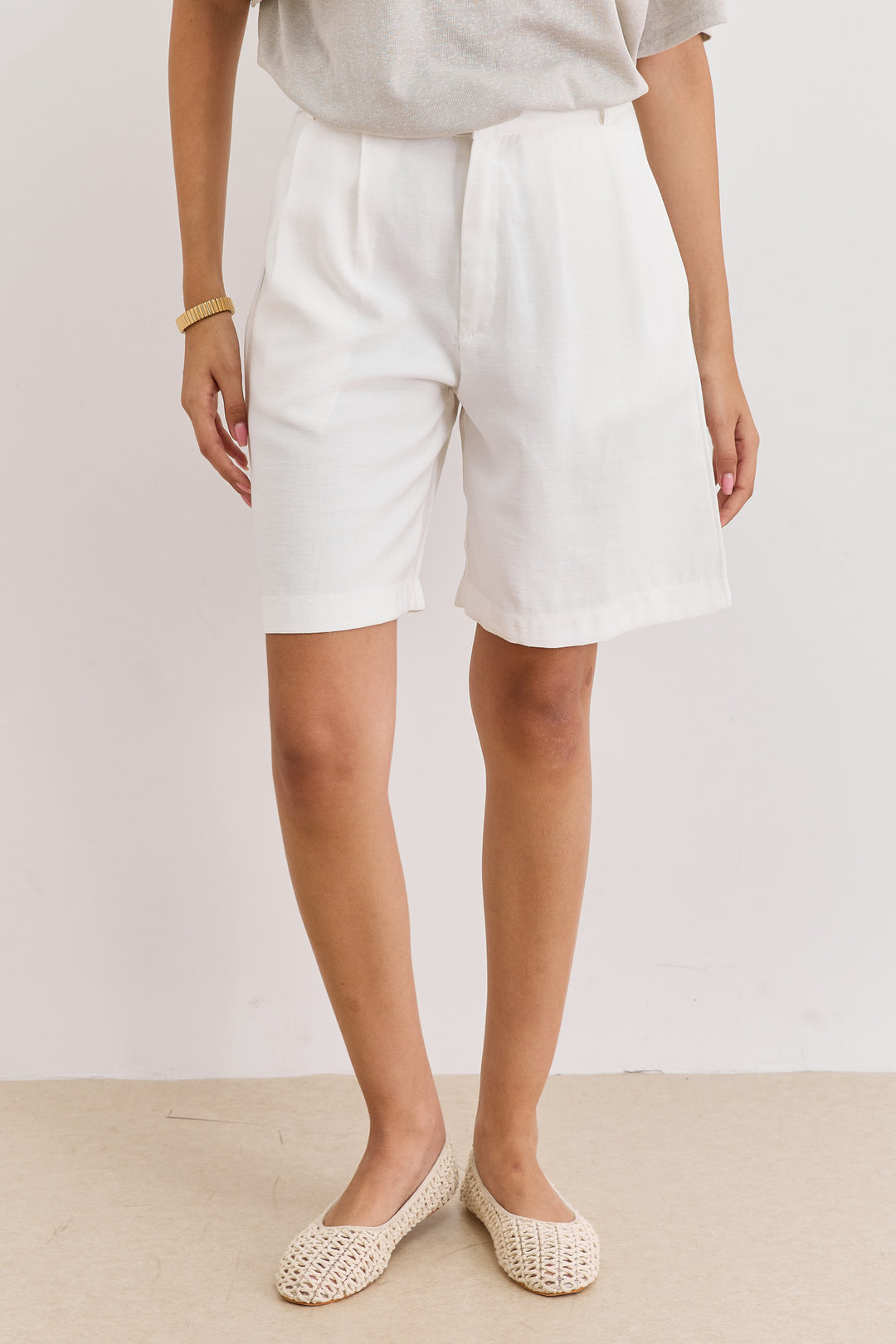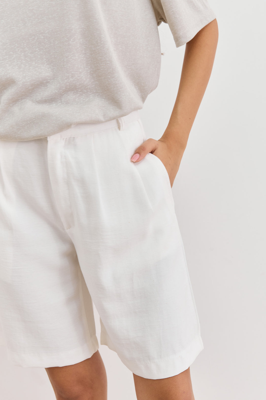 מכנסי ברמודה קווין דמוי פשתן | לבן