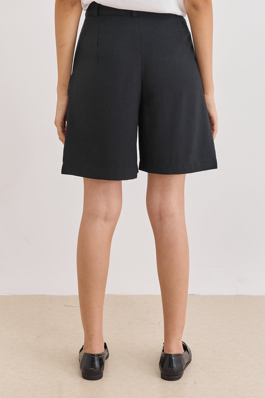 מכנסי ברמודה קווין דמוי פשתן | שחור