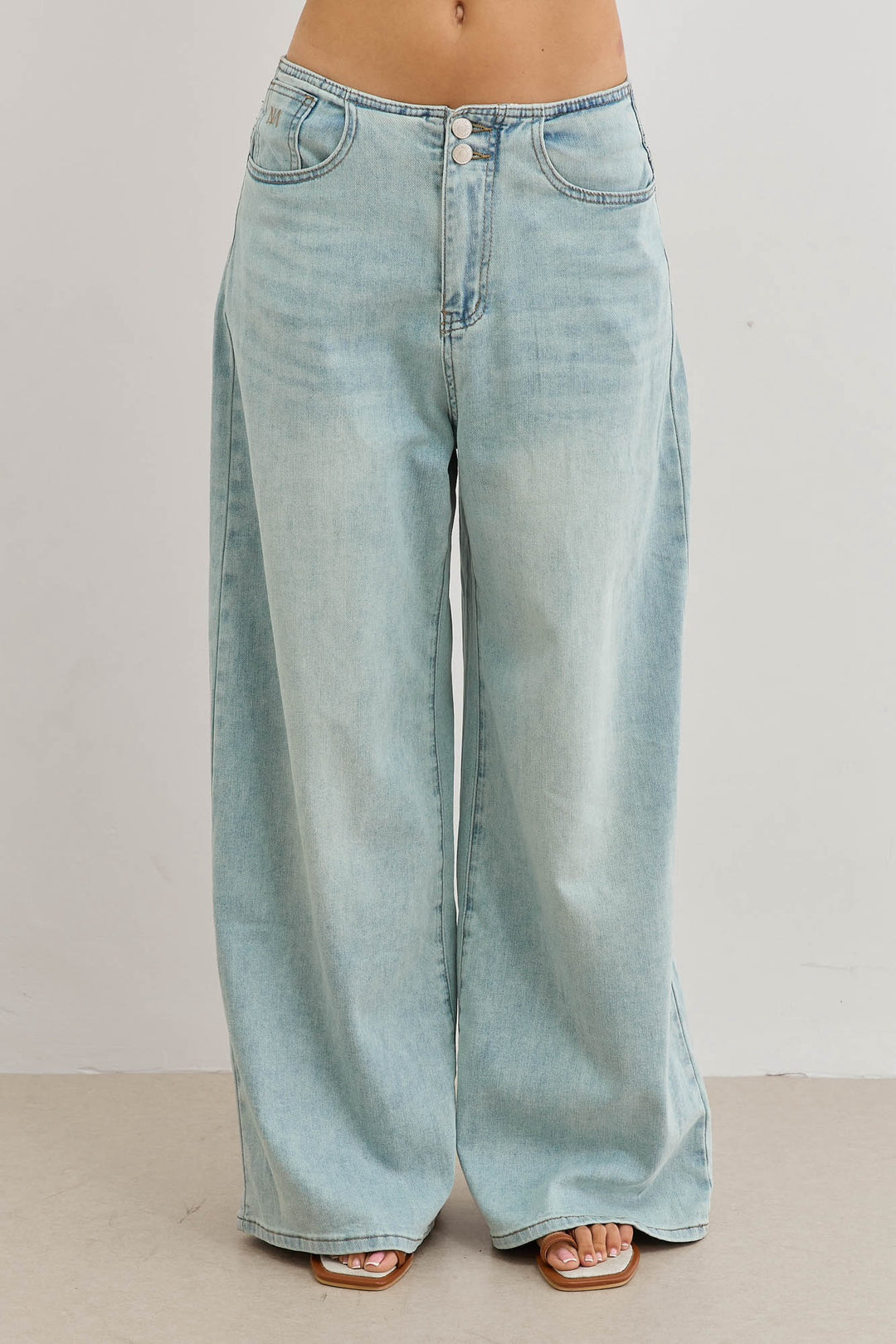 מכנסי ג'ינס אייריס גזרה רחבה | ג'ינס בהיר