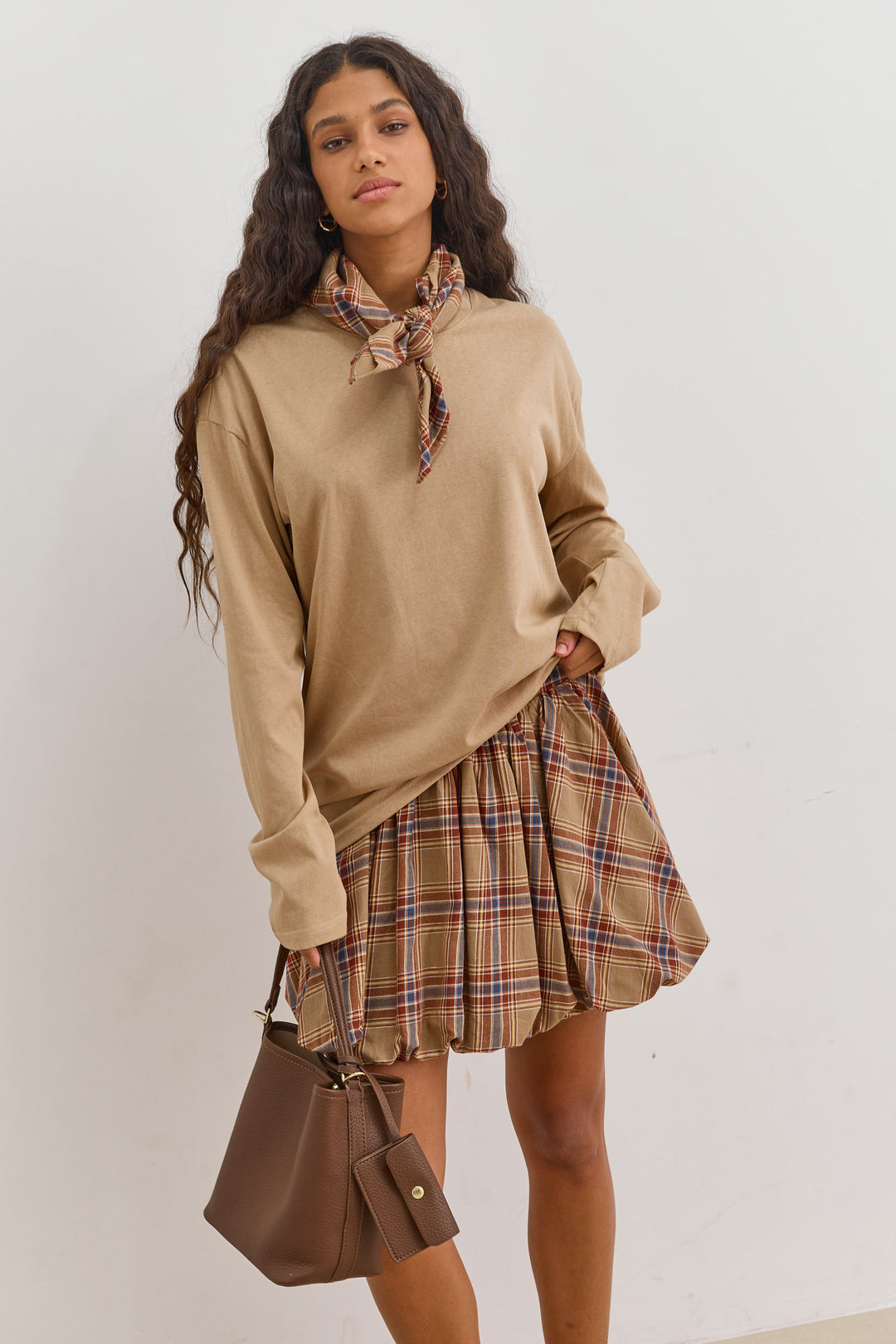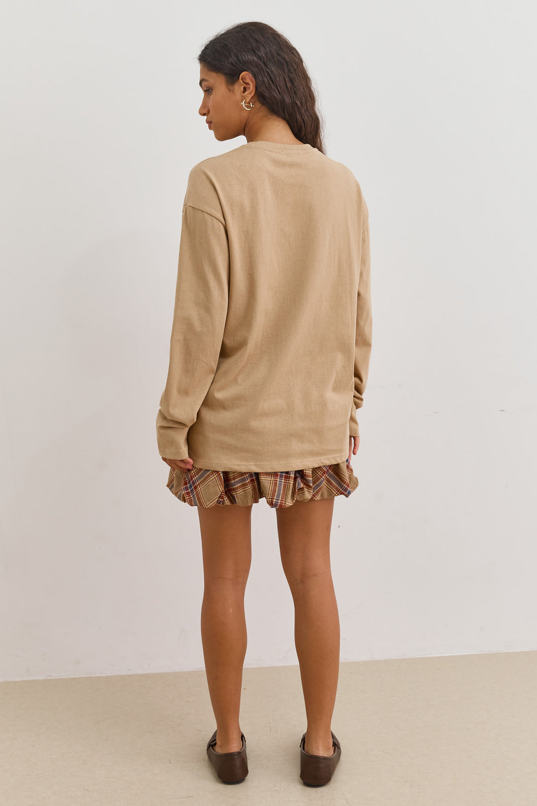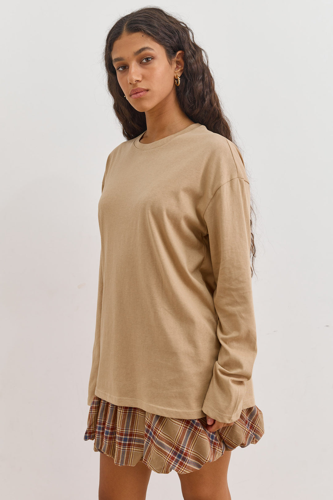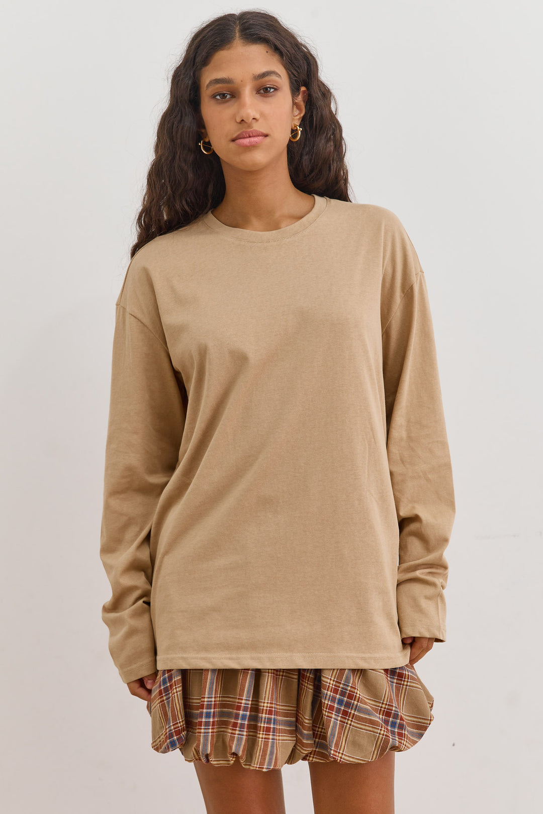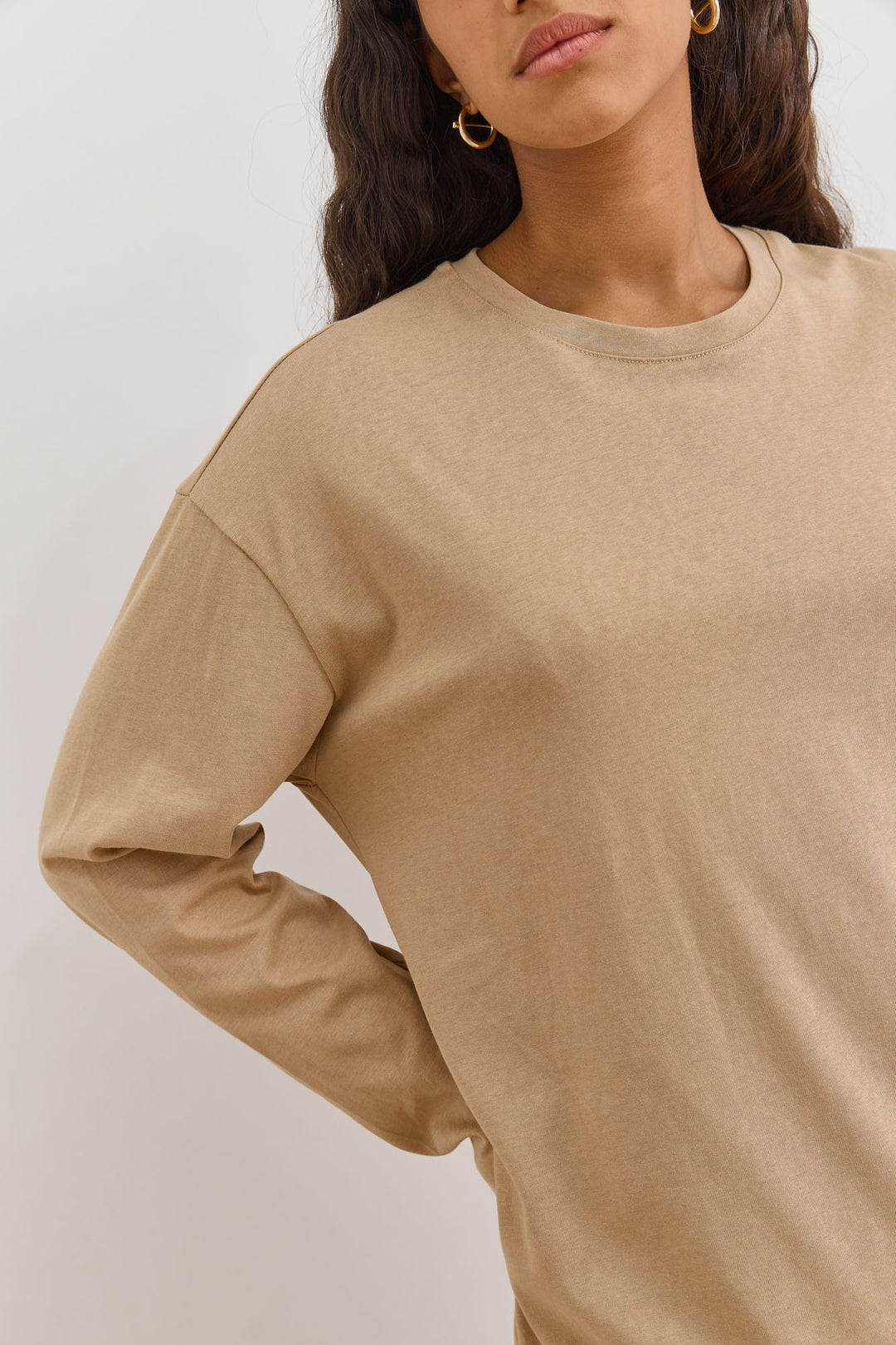 טי שירט בייסיק מדיסון שרוול ארוך | מוקה