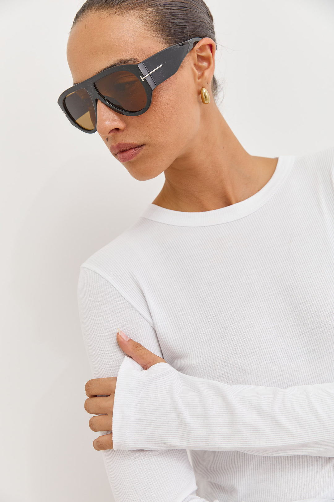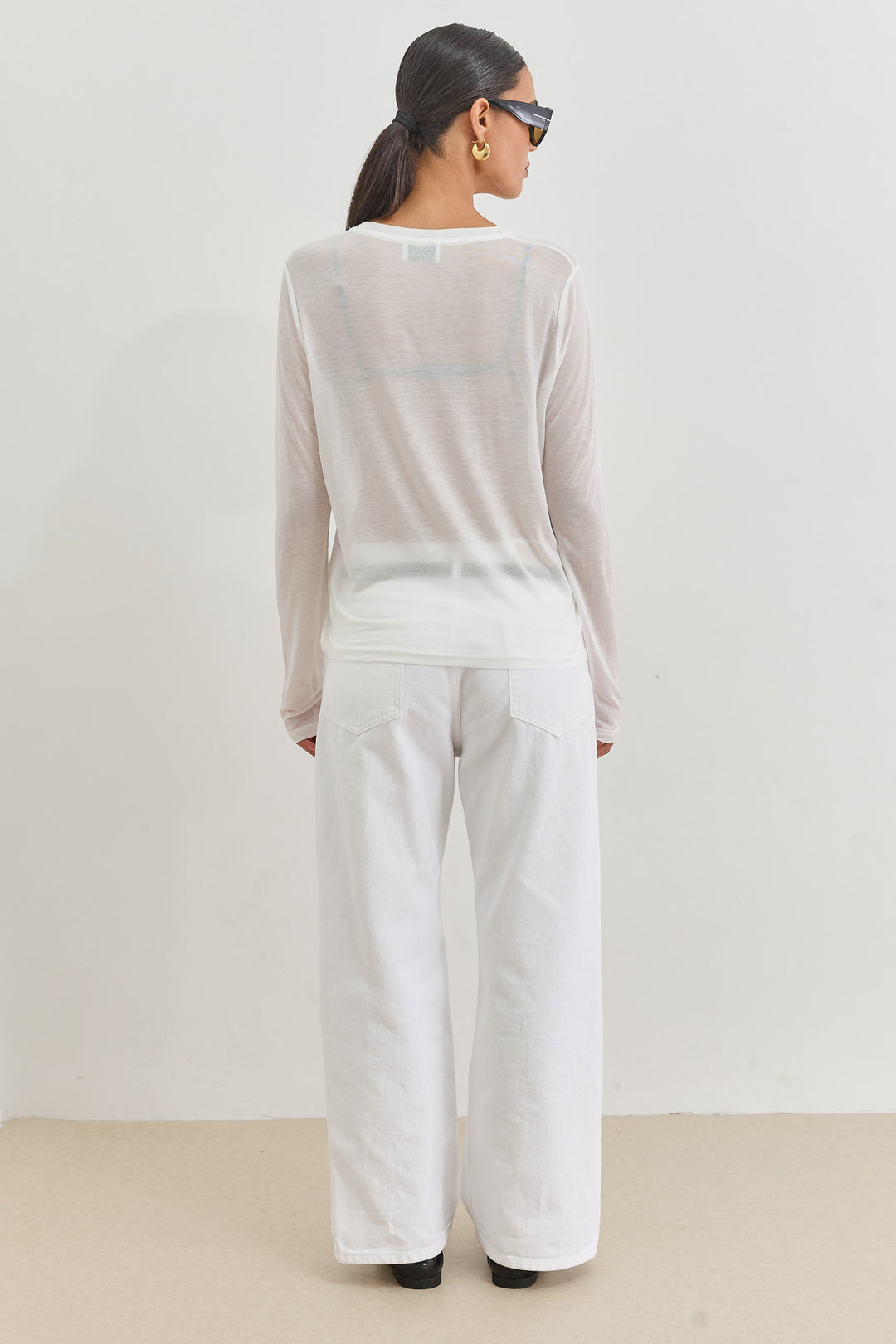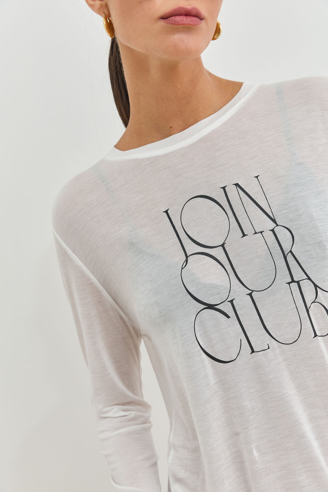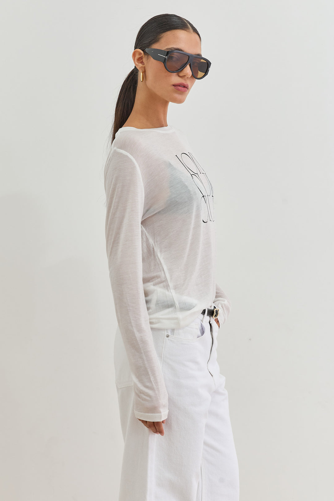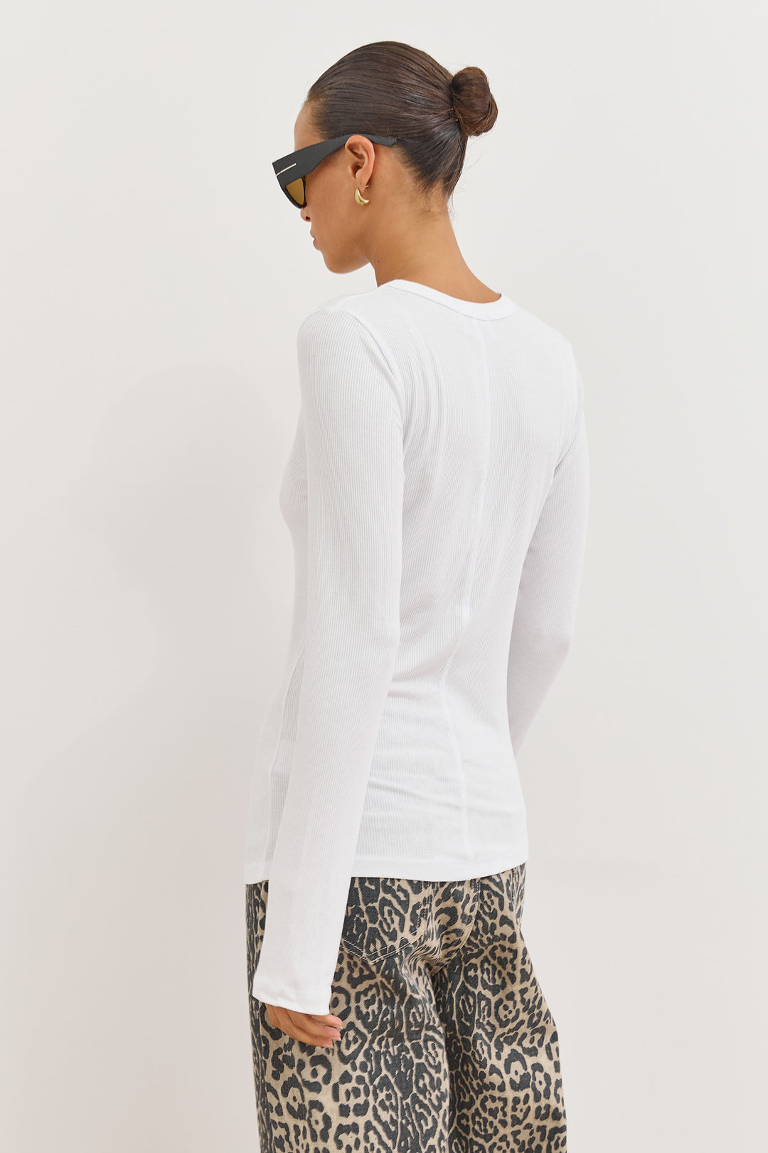 חולצת ריב אנג'י שרוולי כפפה | לבן