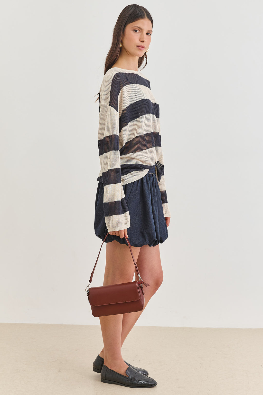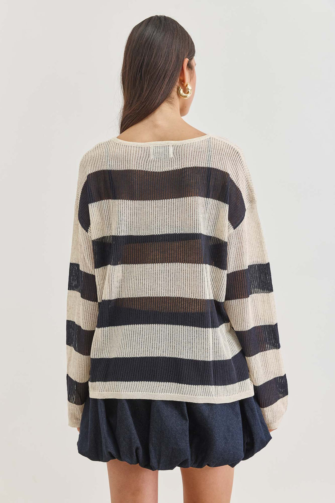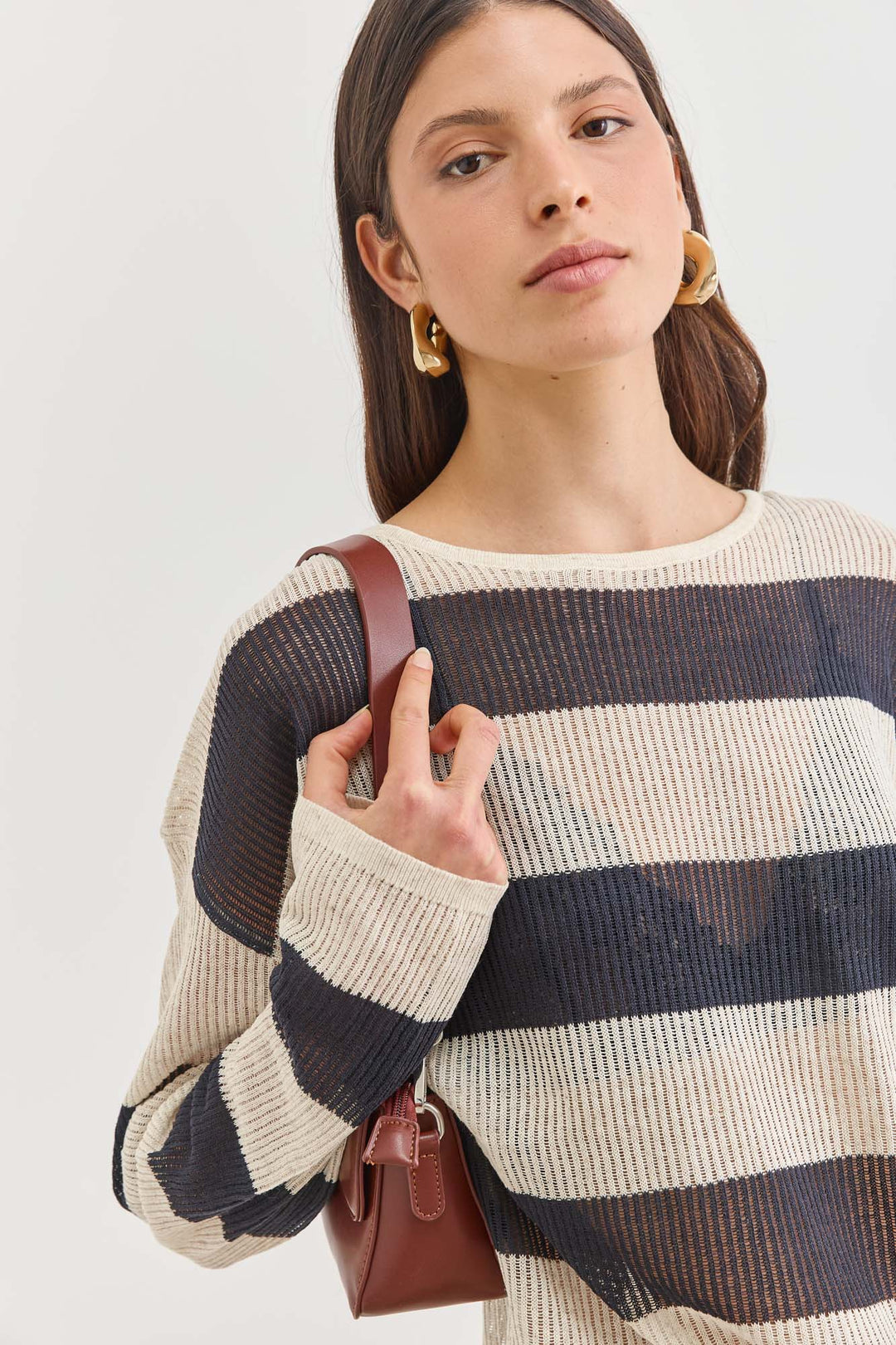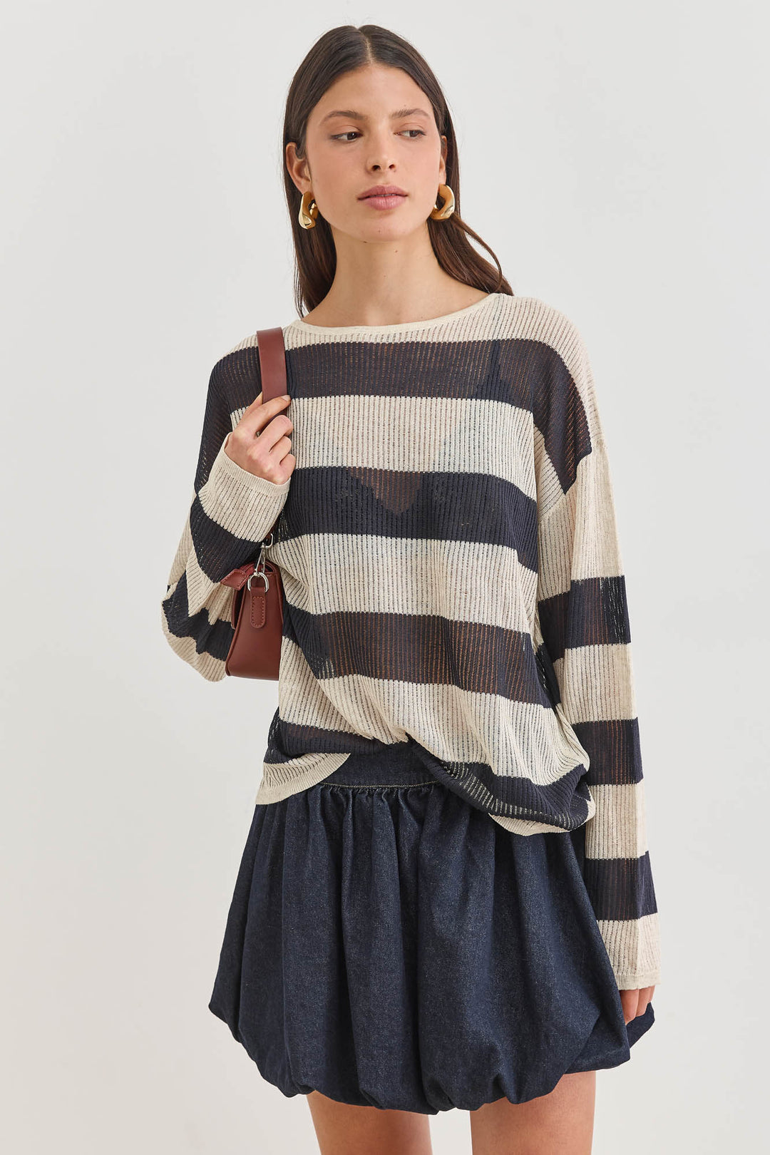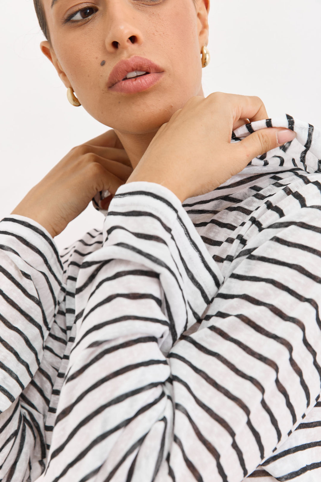 חולצת בובי סטרייפס סריג מחורר | לבן/שחור