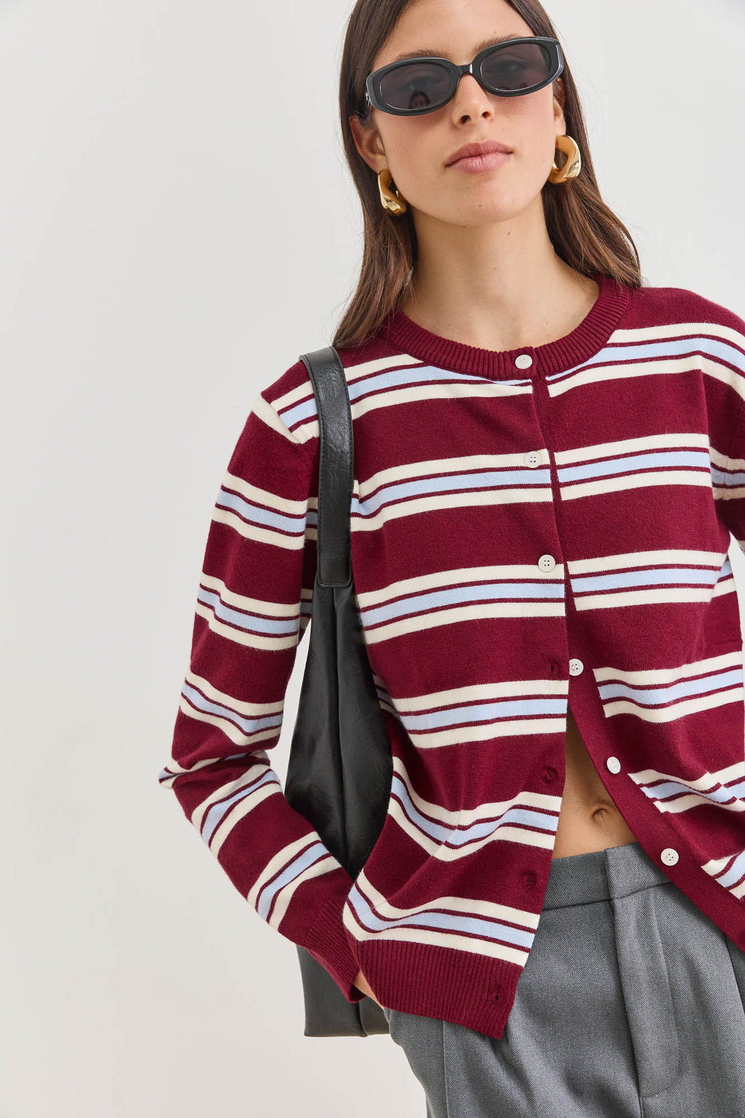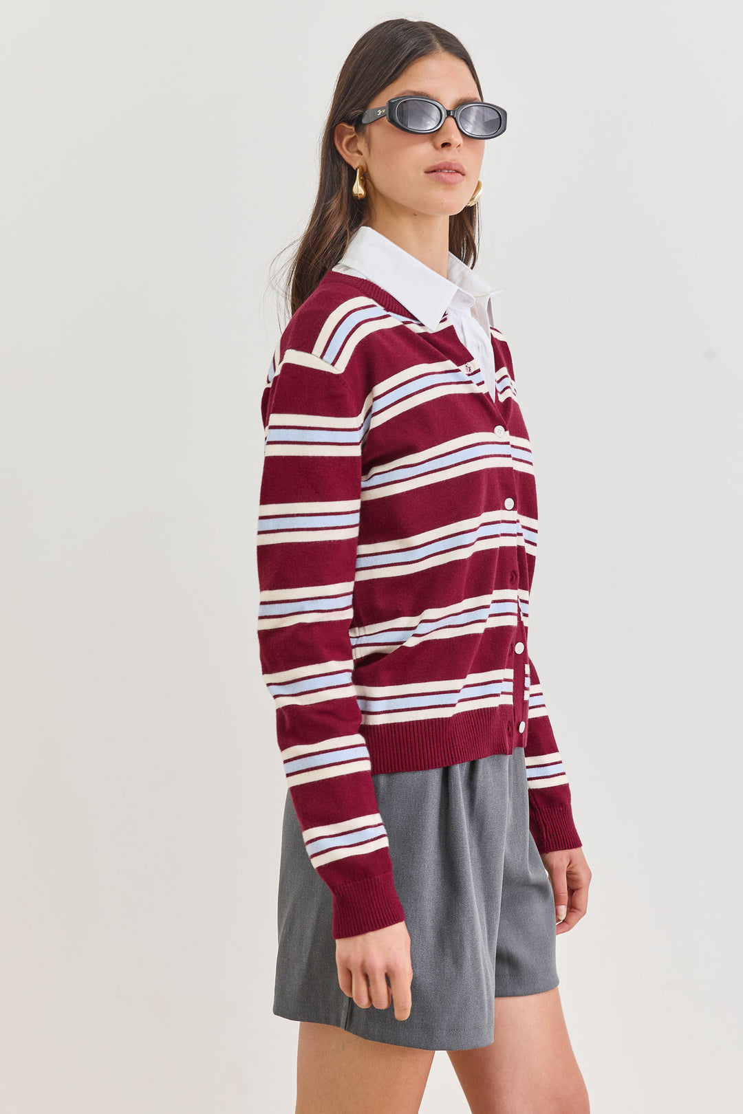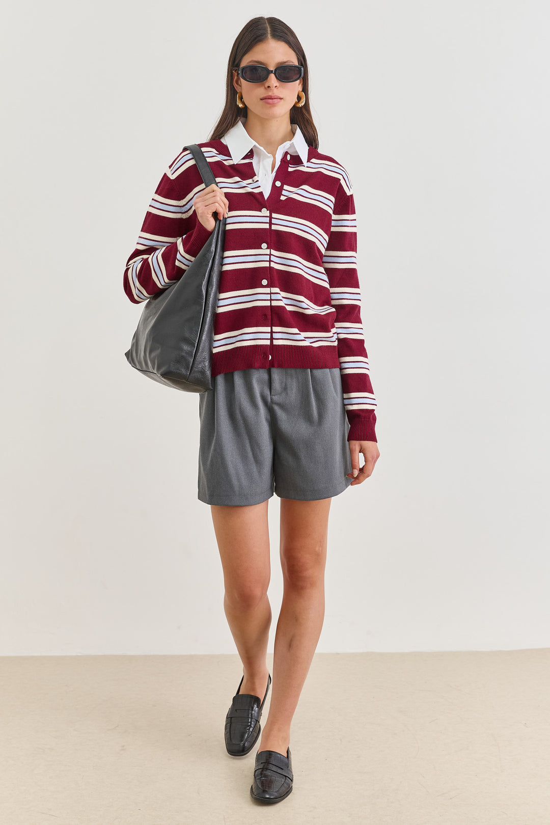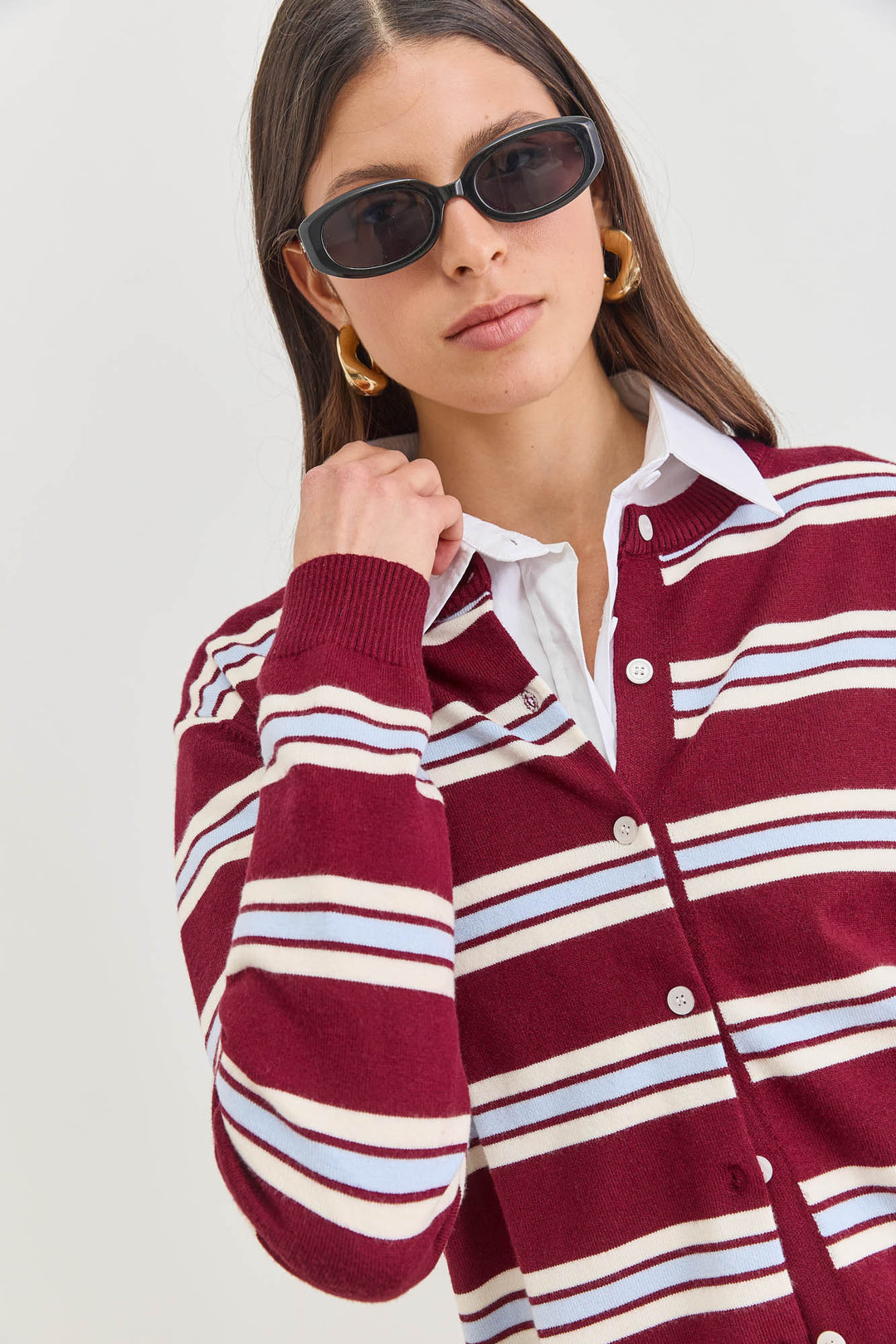 סריג כפתורים סטיורט סטרייפס | בורדו