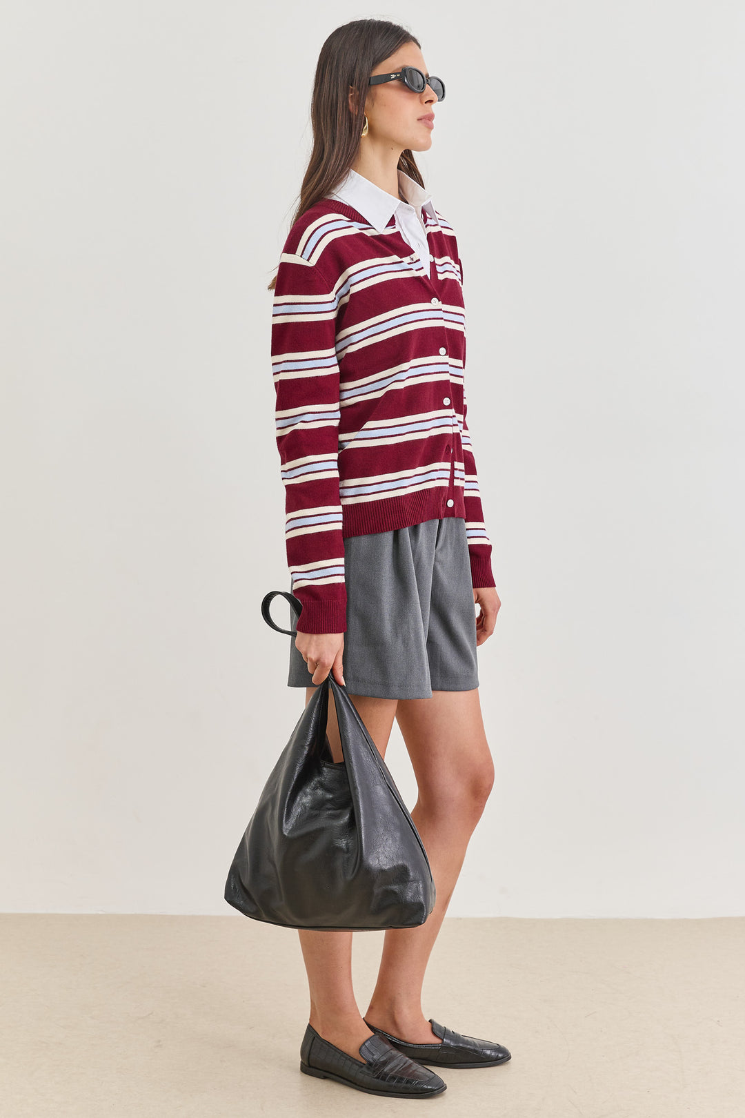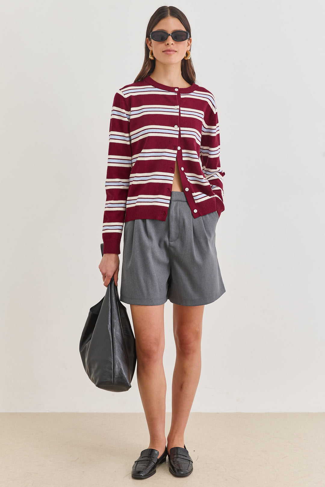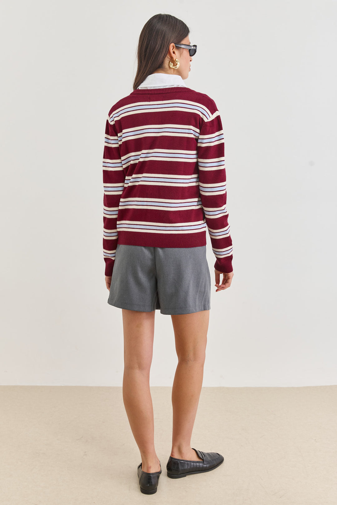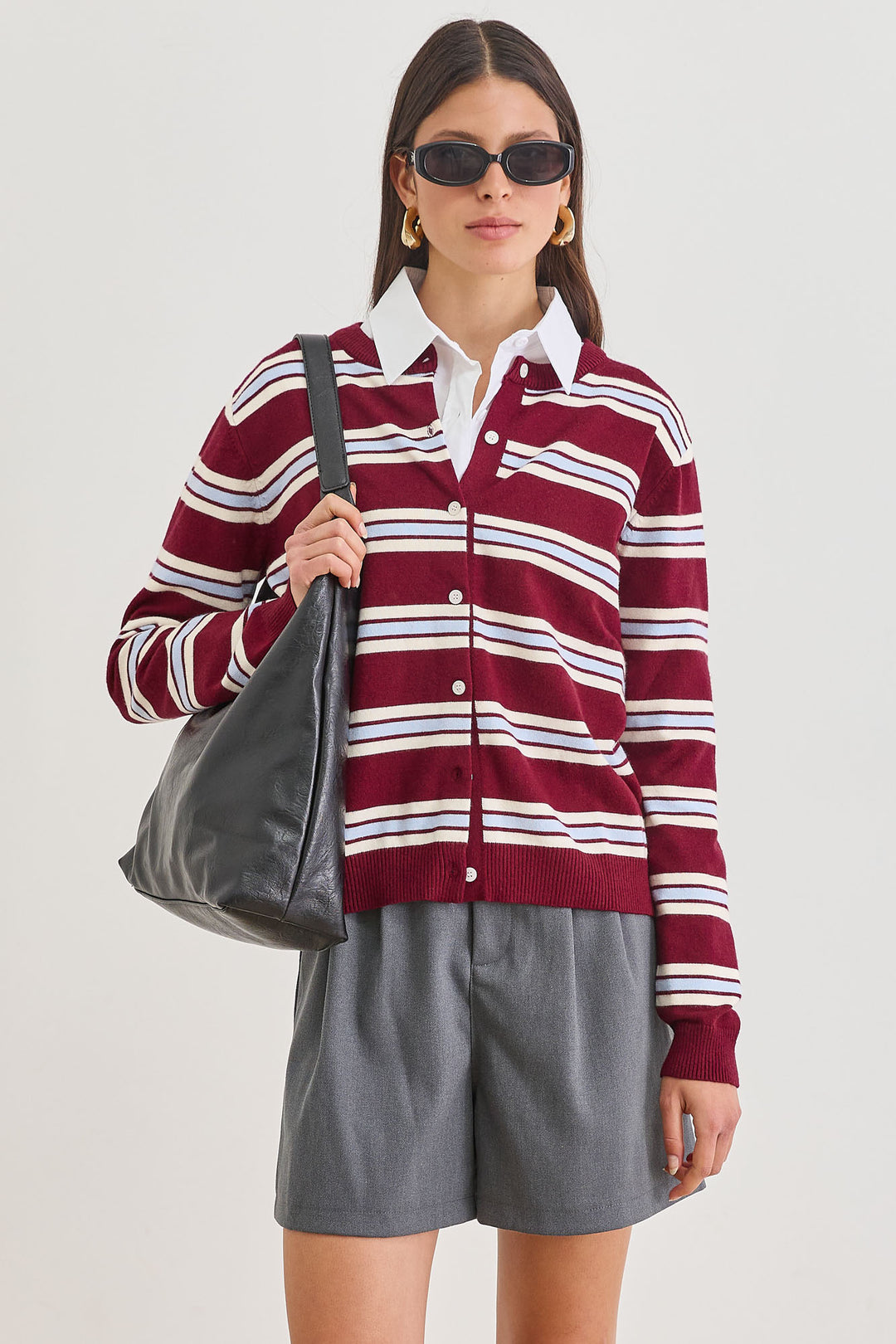 סריג כפתורים סטיורט סטרייפס | בורדו