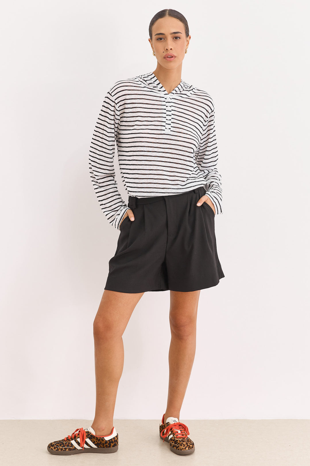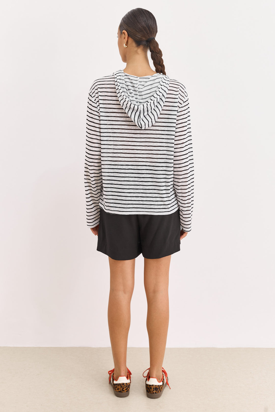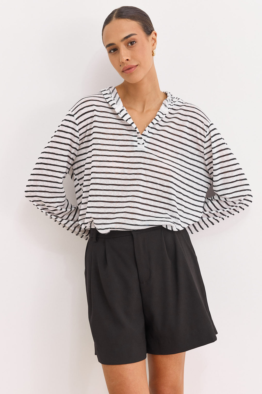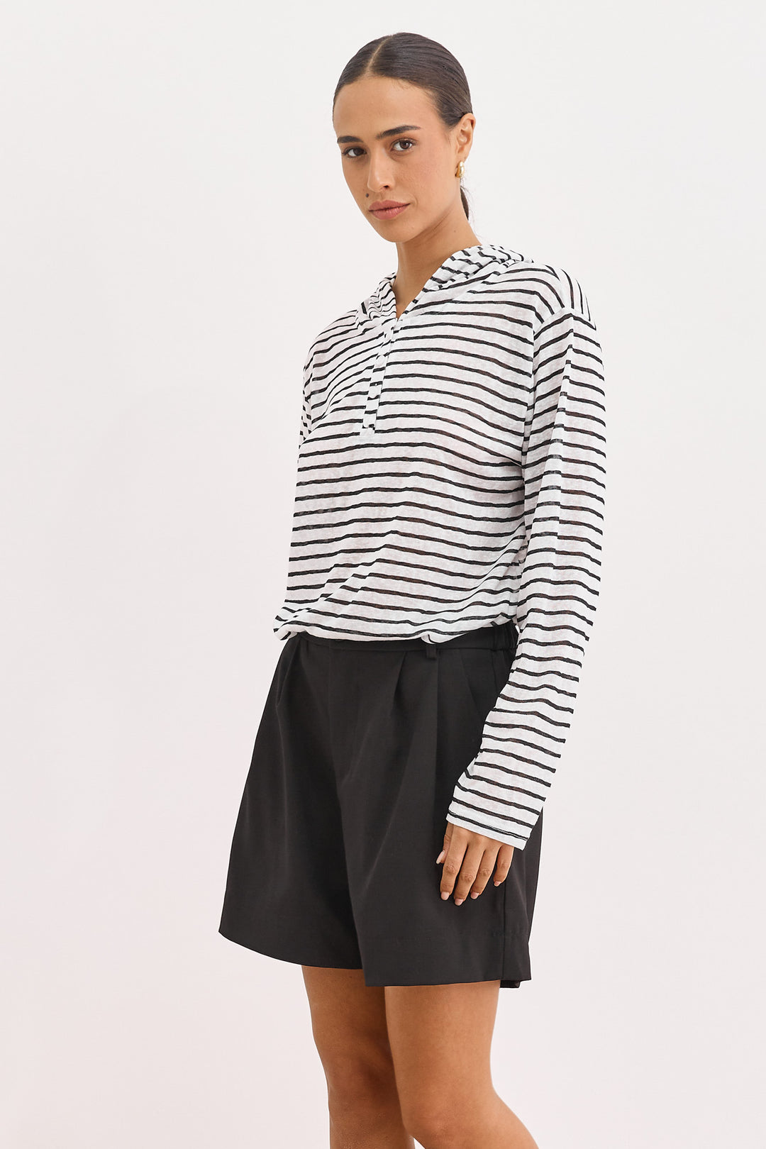 חולצת קפוצ'ון אריאל סטרייפס בד שקפקף | לבן/שחור