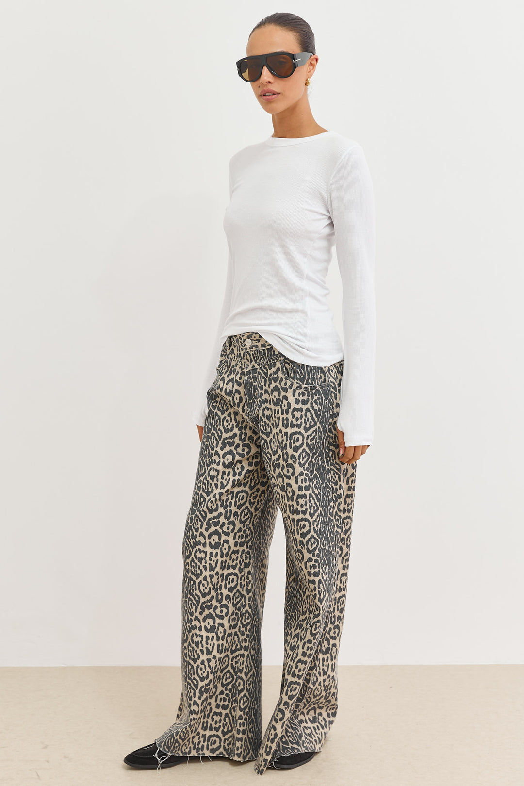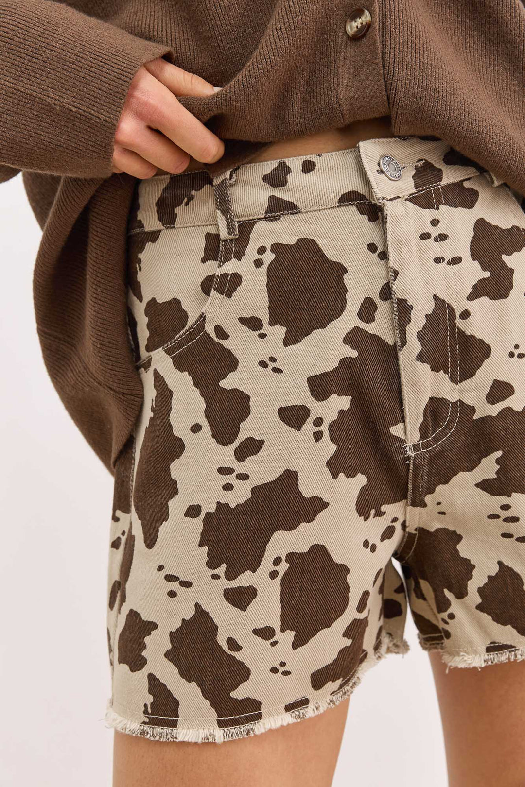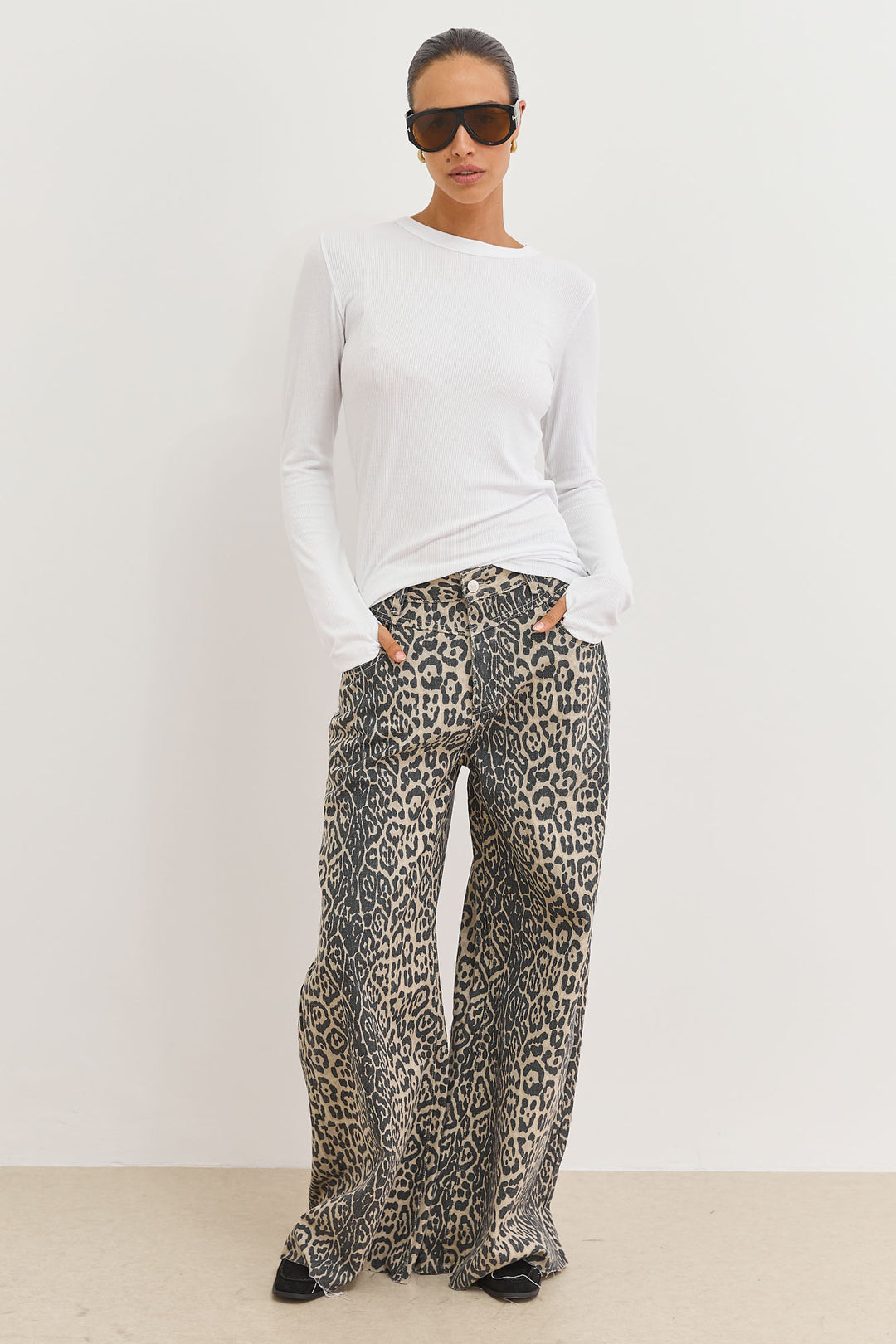 מכנסי דנים סנדרה פרינט | בז'/חום
