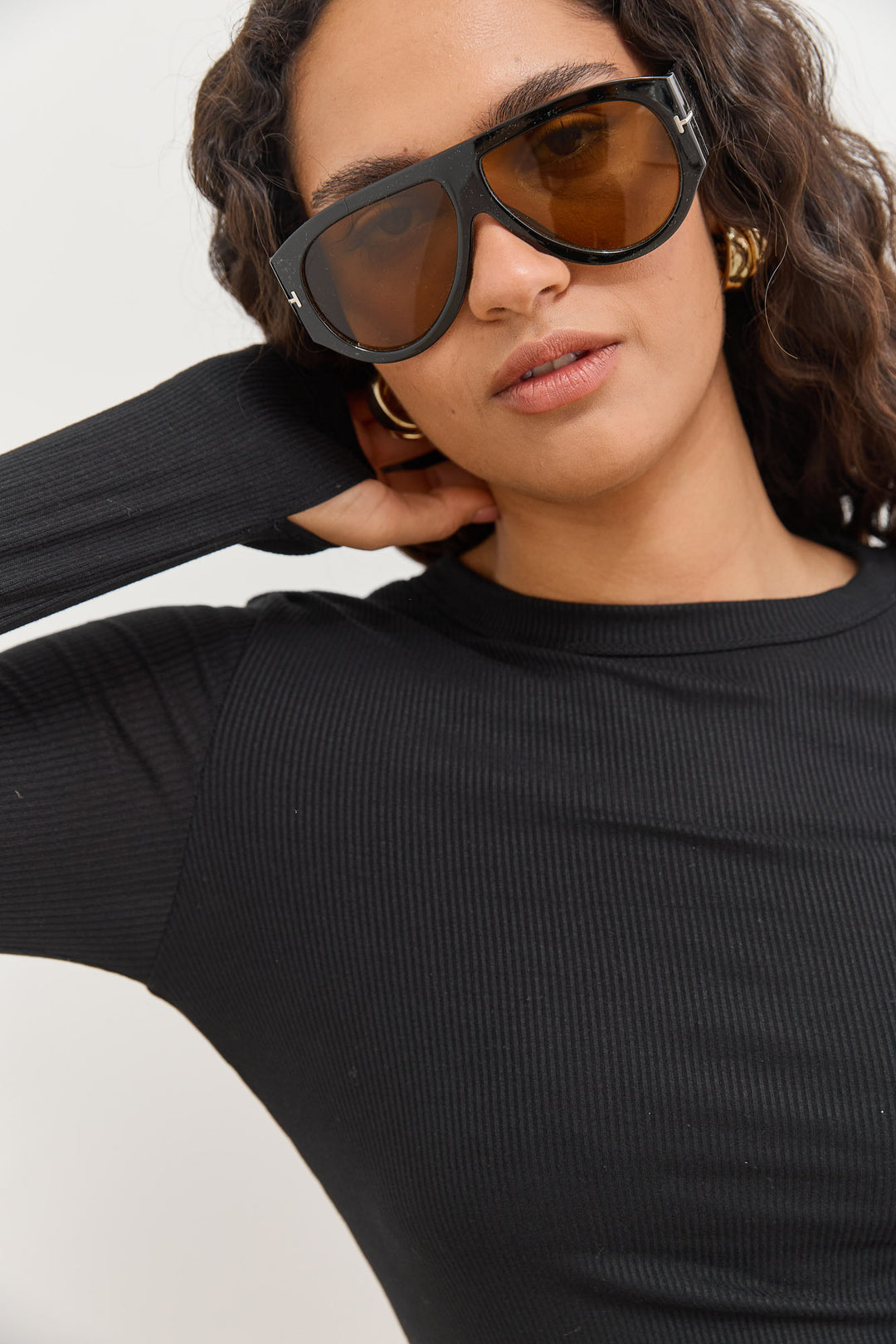 חולצת ריב אנג'י שרוולי כפפה | שחור