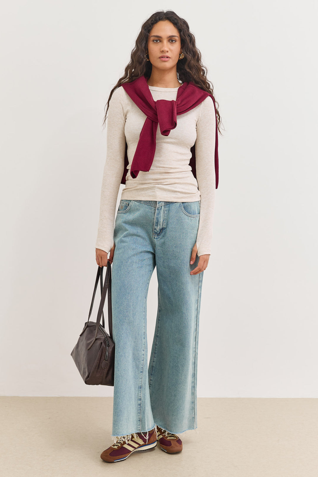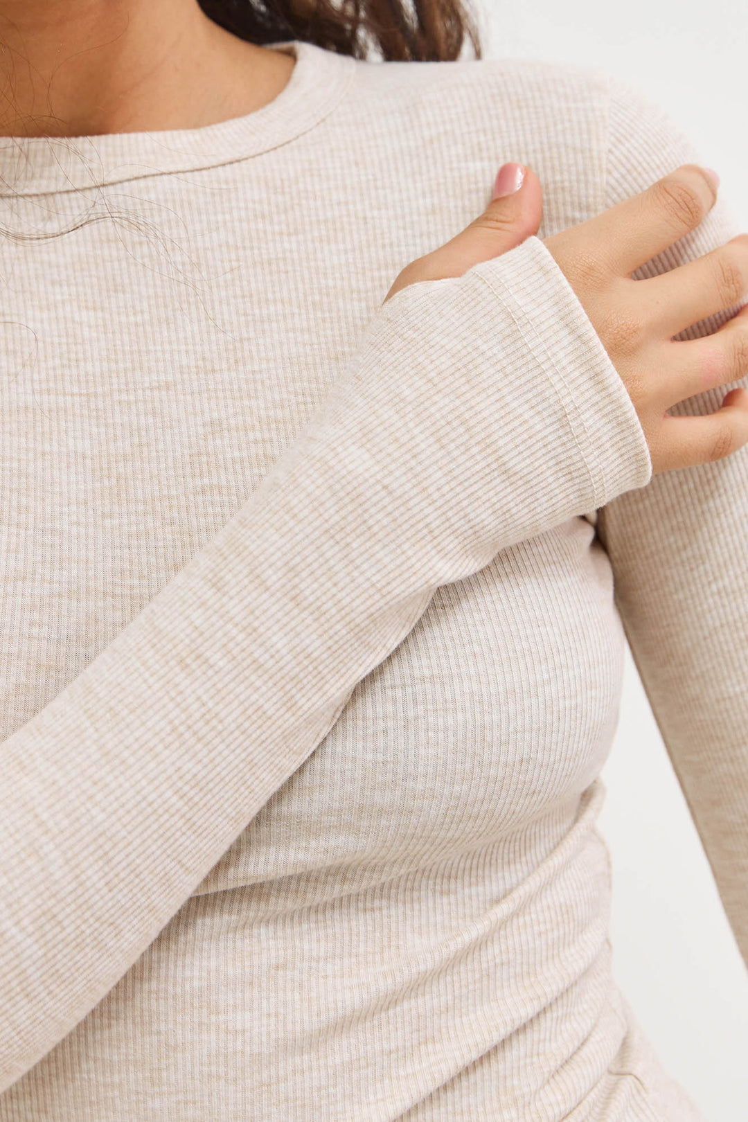 חולצת ריב אנג'י שרוולי כפפה | בז' מלאנז