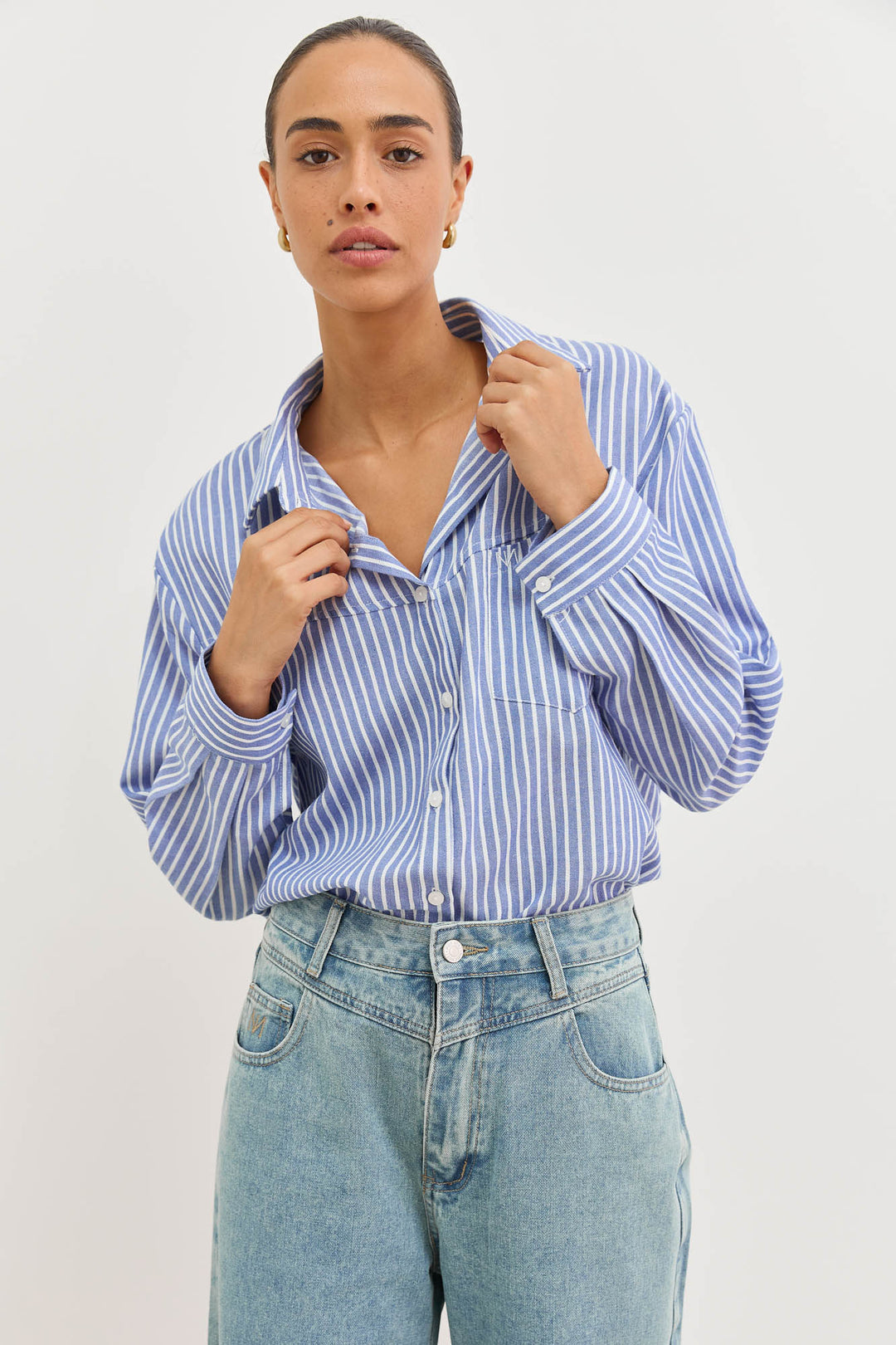 מכופתרת קלייר סטרייפס | כחול/לבן