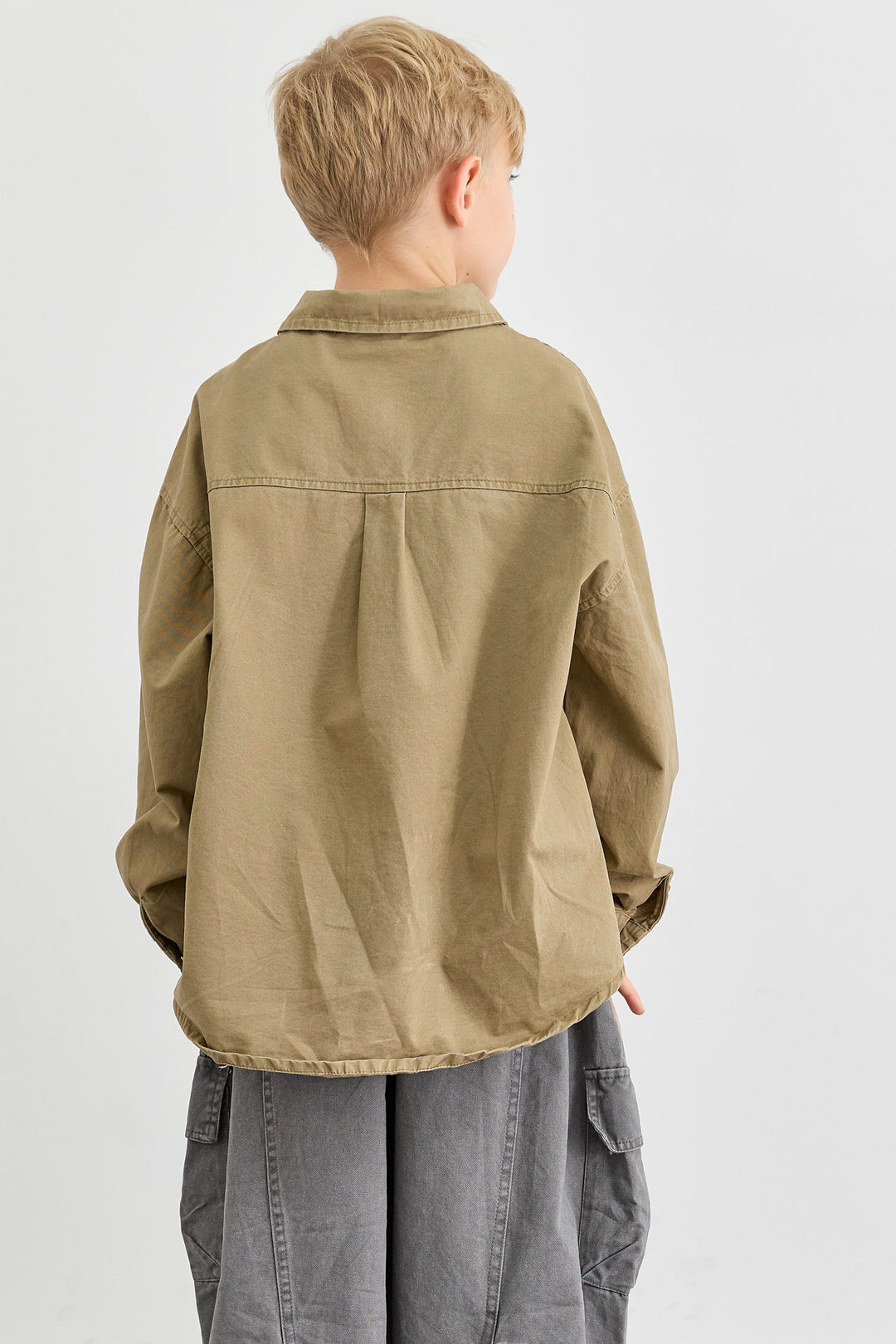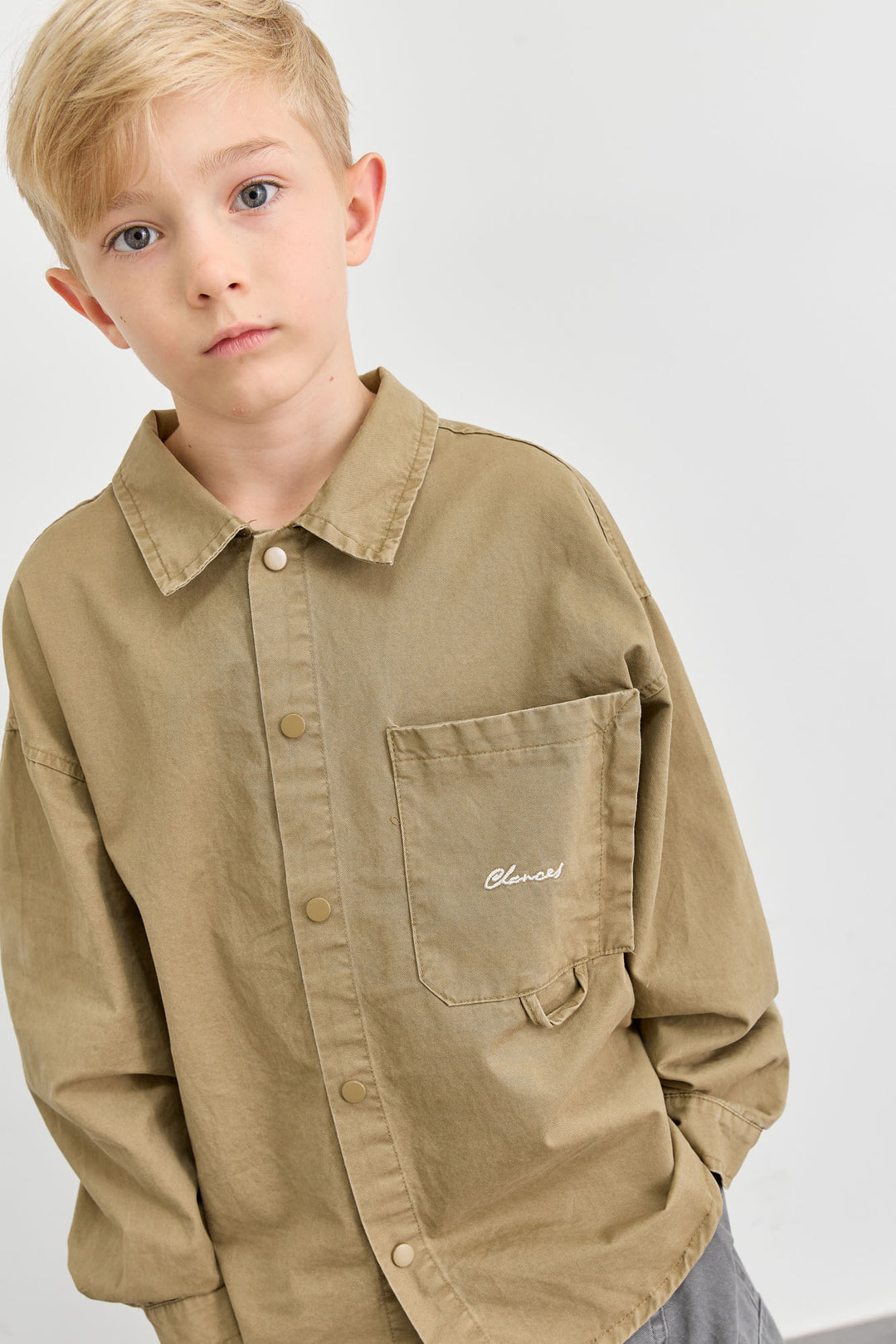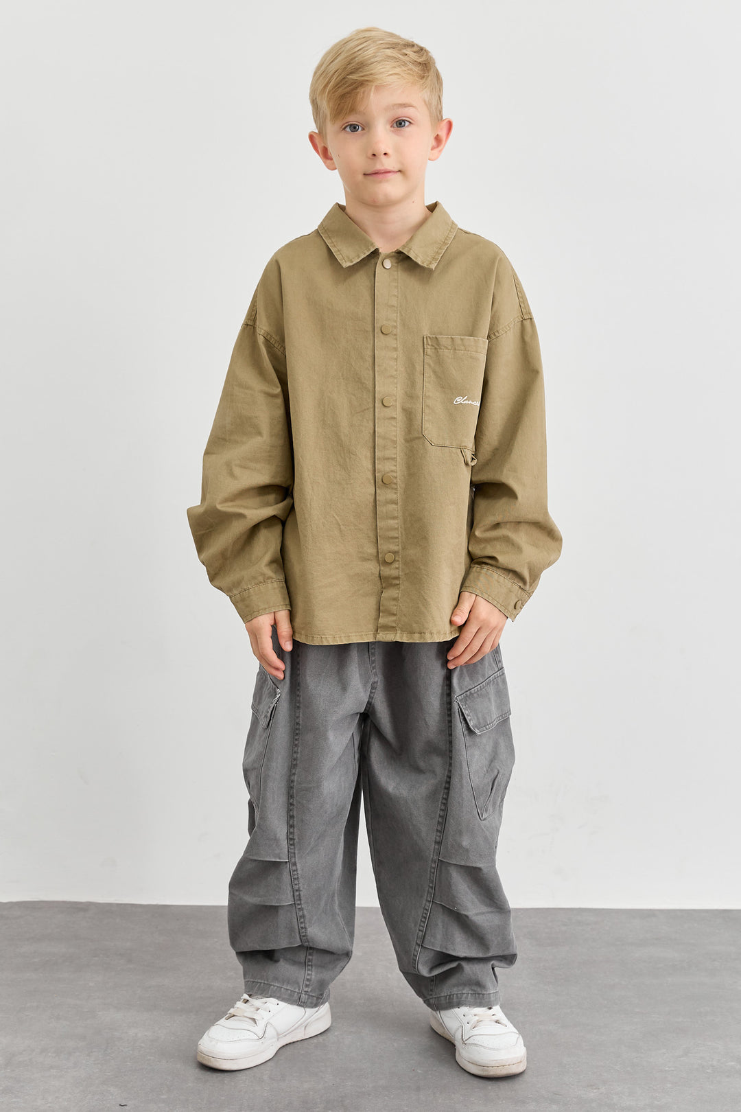 מכופתרת אוברסייז בשילוב רקמה | אפור