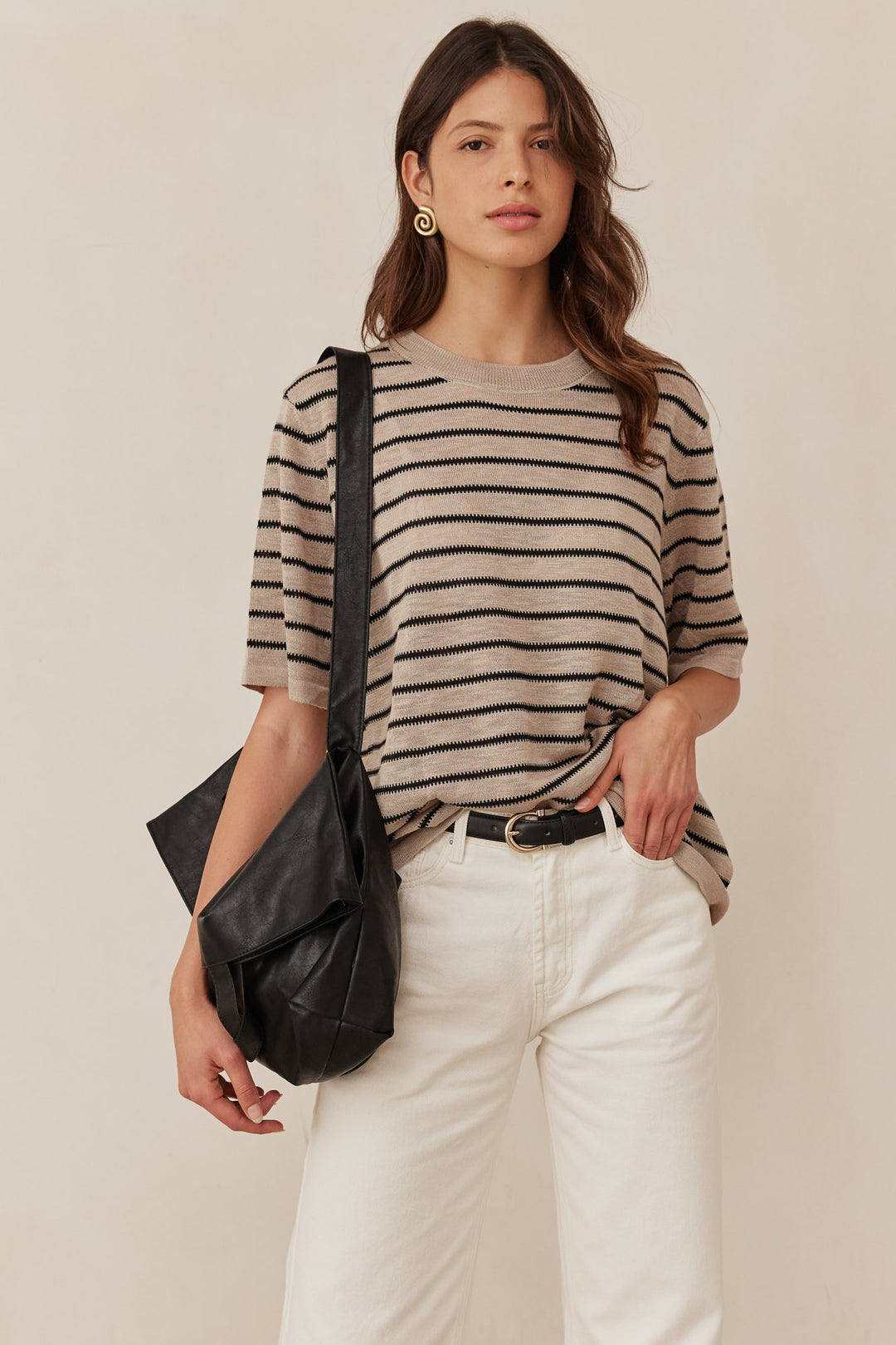 תיק קלוע סנדי סטרייפס | בז'/חום