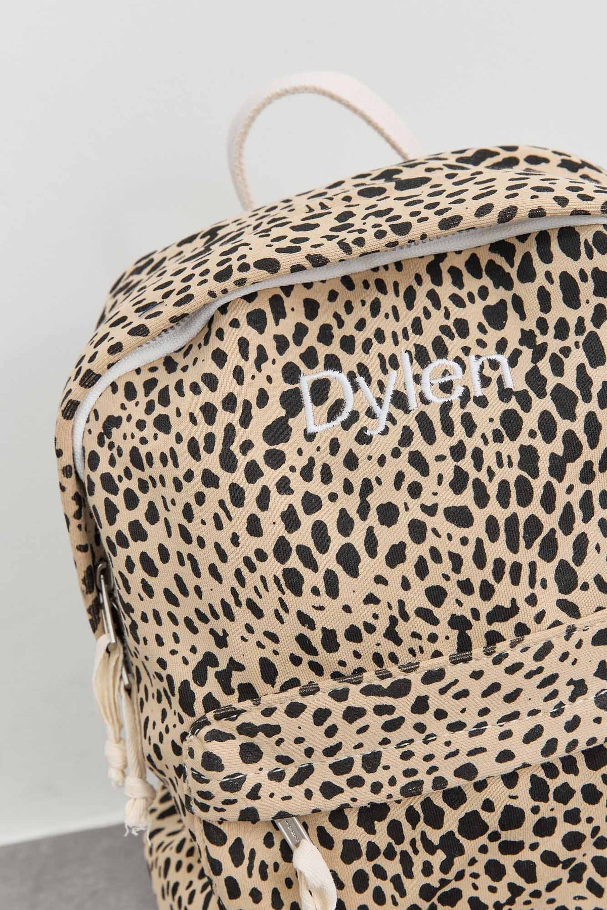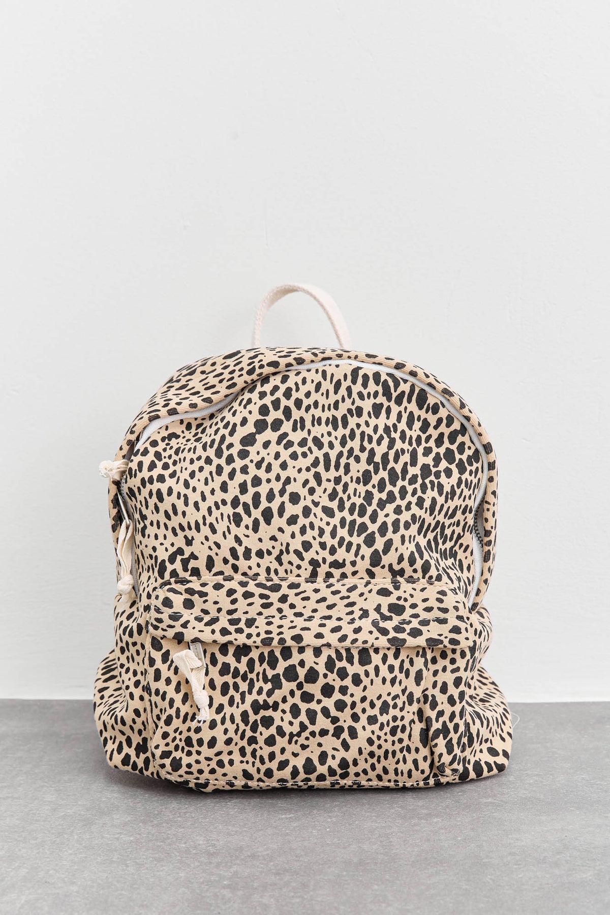 תיק גב עם הדפס מנומר בשילוב רצועות מתכווננות בצבע קרם מבד קנבס