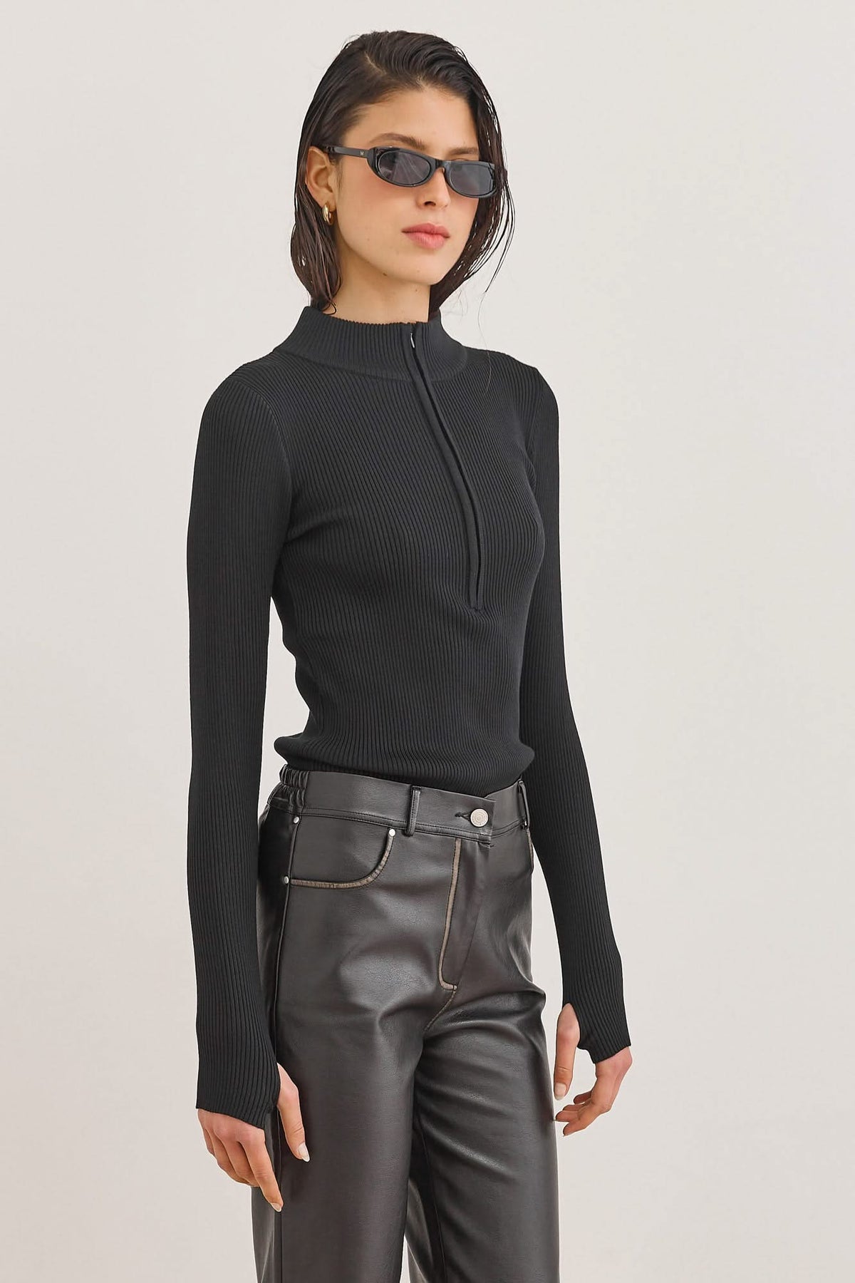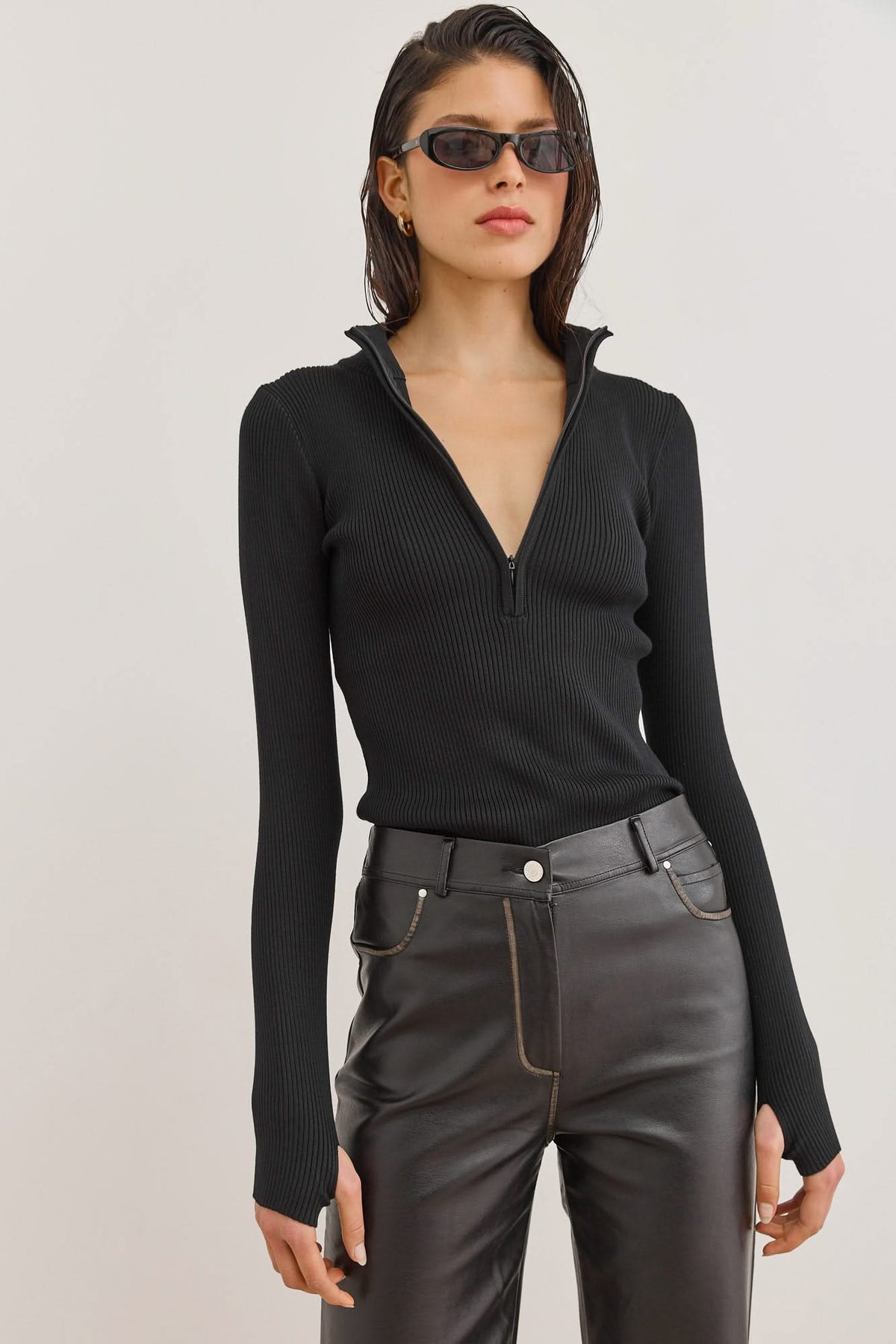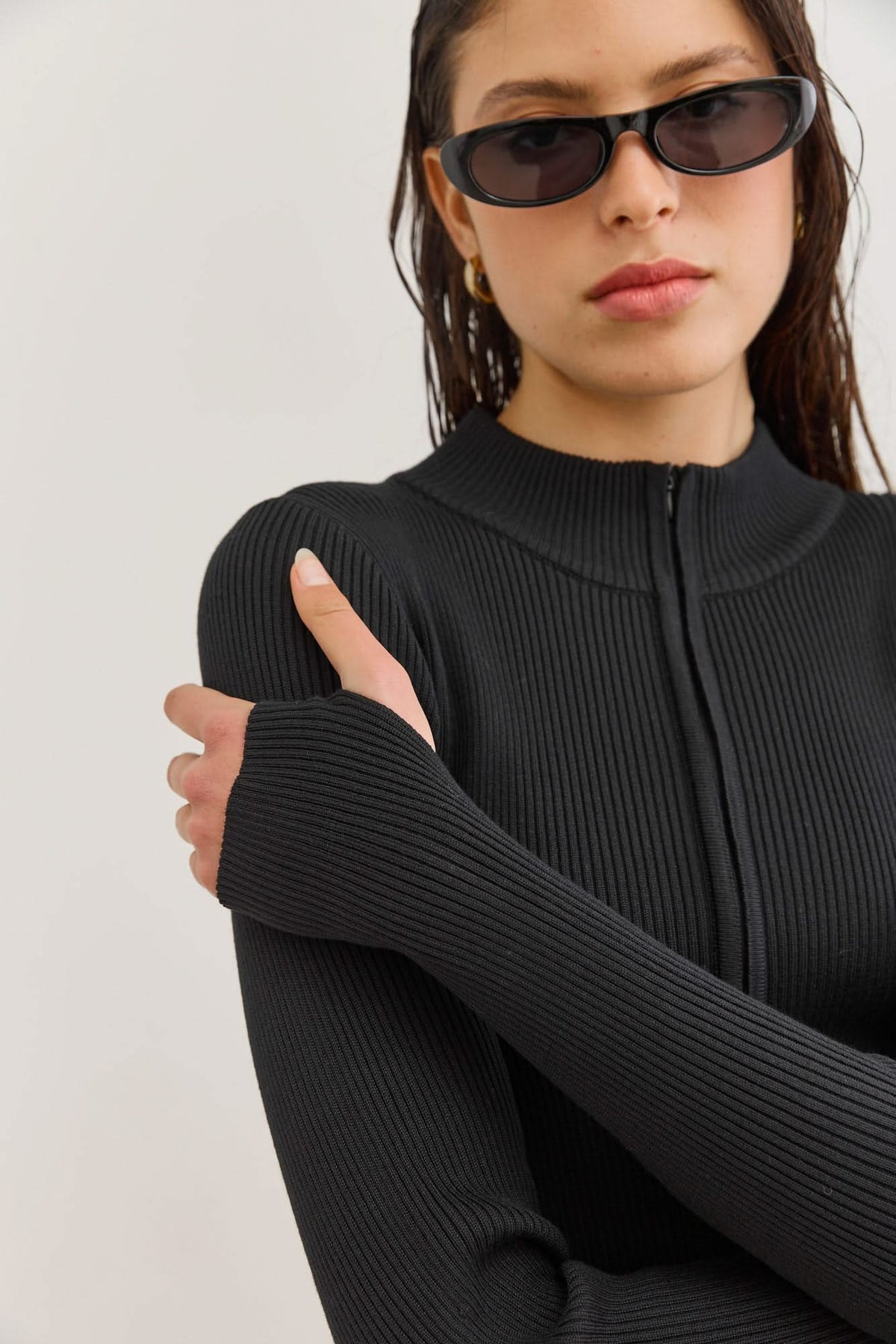 חולצת סריג דמיאן שרוולי כפפה | שחור