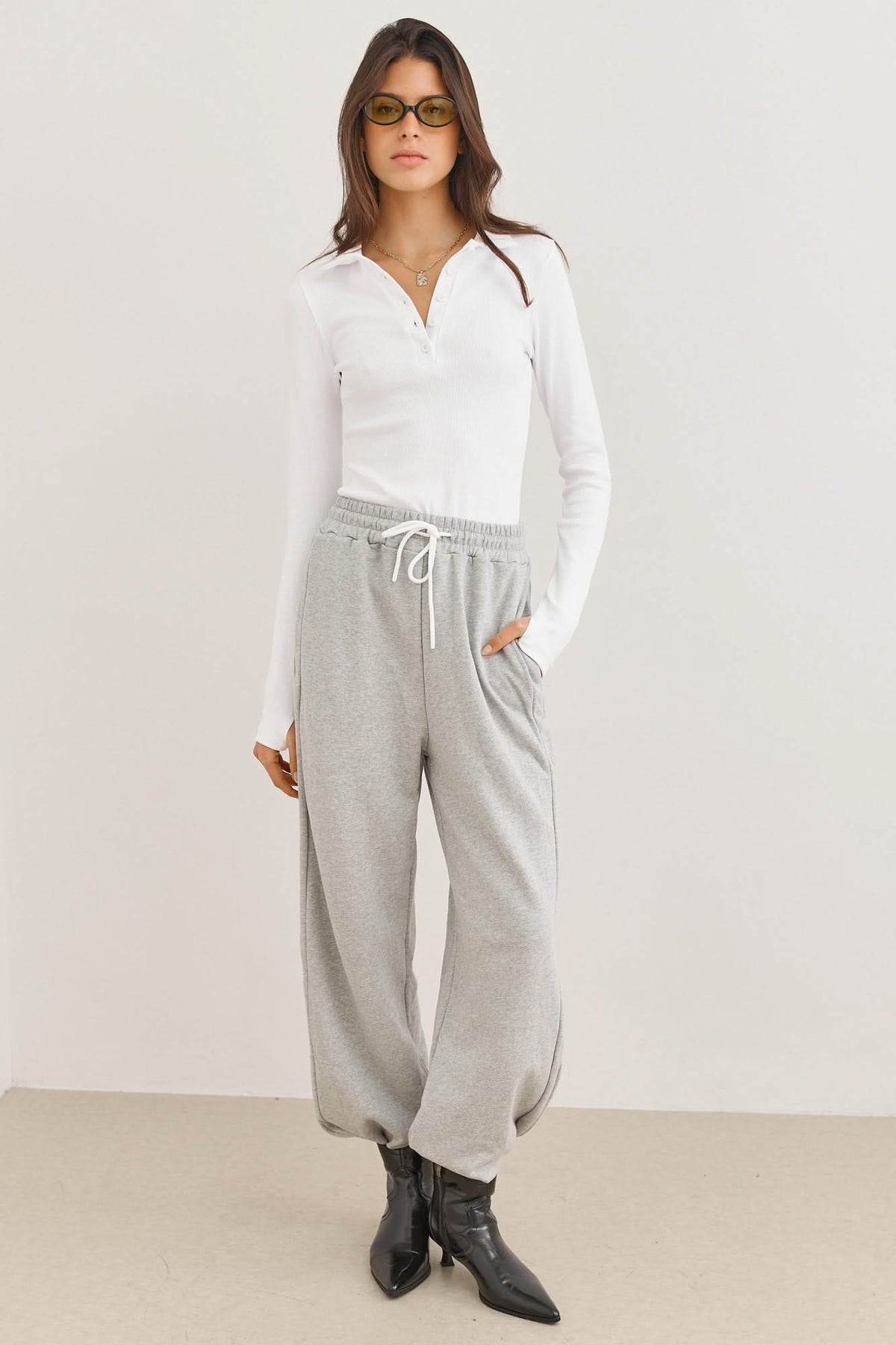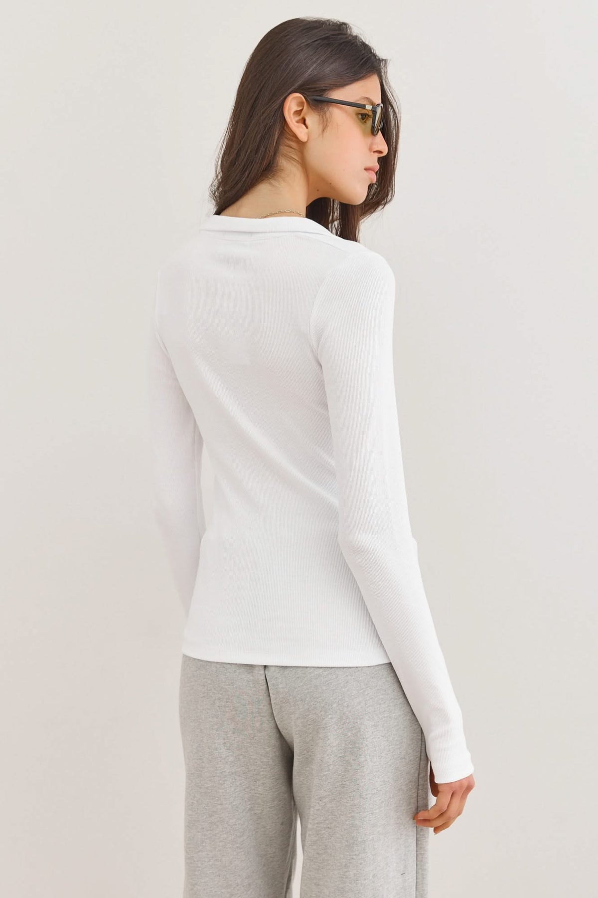 חולצת בייסיק מבד ריב מעולה, בשילוב צווארון פולו, כפתורים ושרוולי כפפה