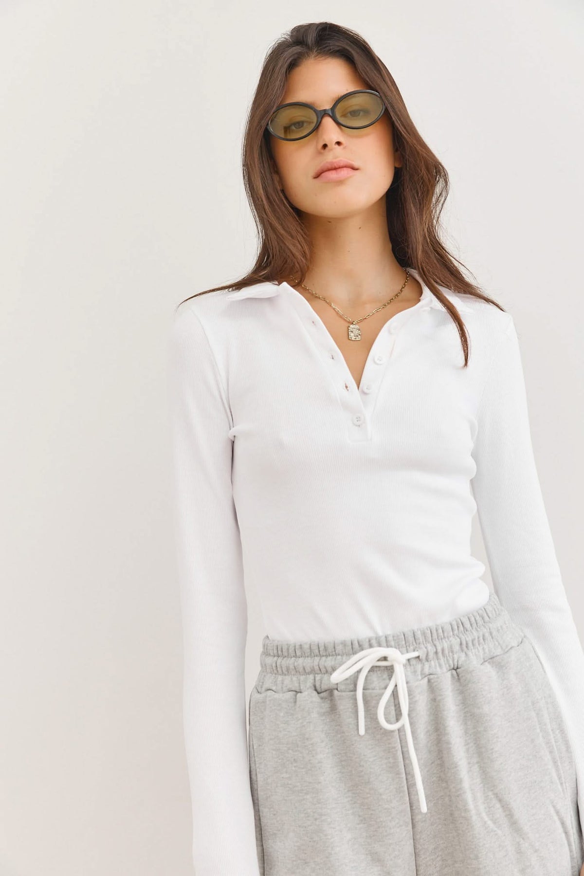 חולצת פולו שיינה שרוול ארוך | לבן