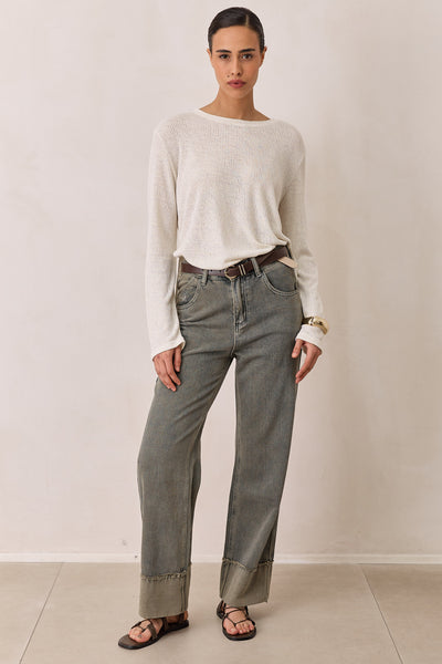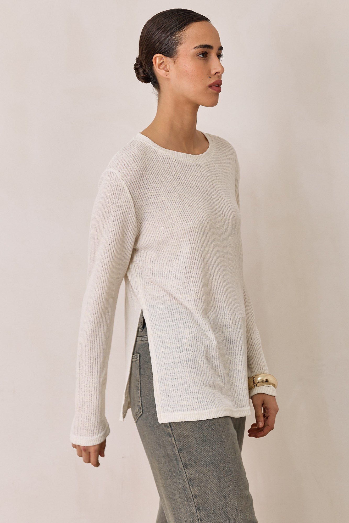 חולצת אמבר שקפקפה בשילוב שסע צידי | שמנת